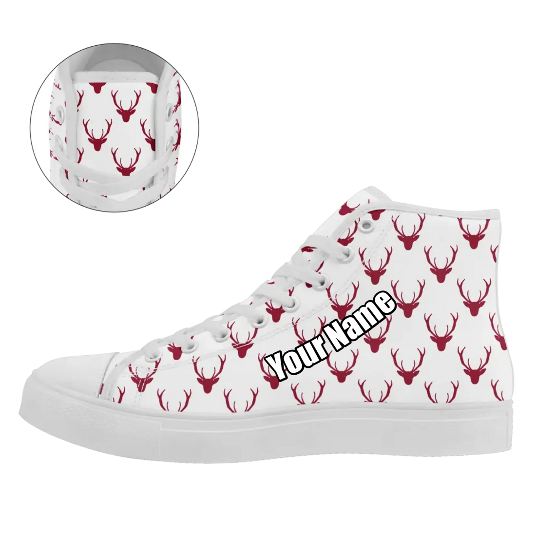Minimalist Reindeer Pattern High-Top Sneakers, Modern Christmas Holiday Canvas Shoes FN024-25025152