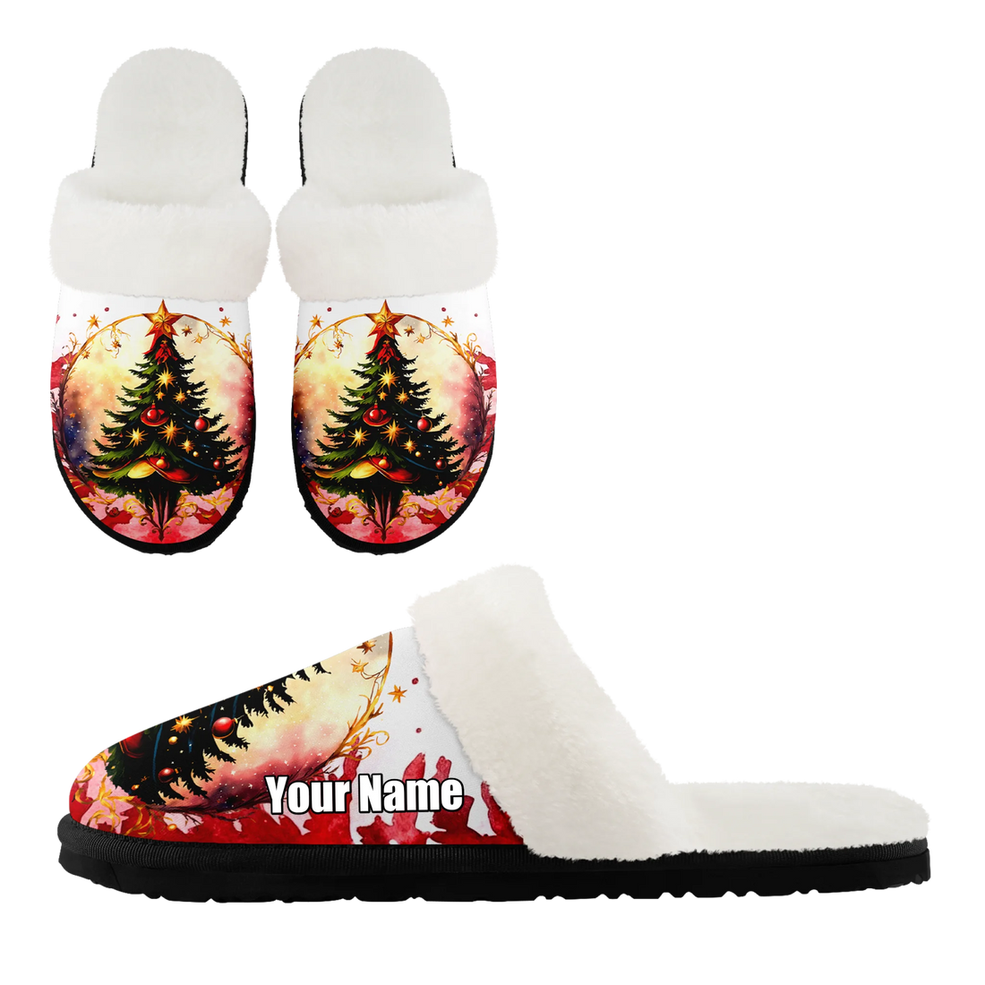 Hand-Drawn Christmas Icons Plush Lined Slippers, Cozy Nutcracker & Tree Print Shoes FN089-25028129