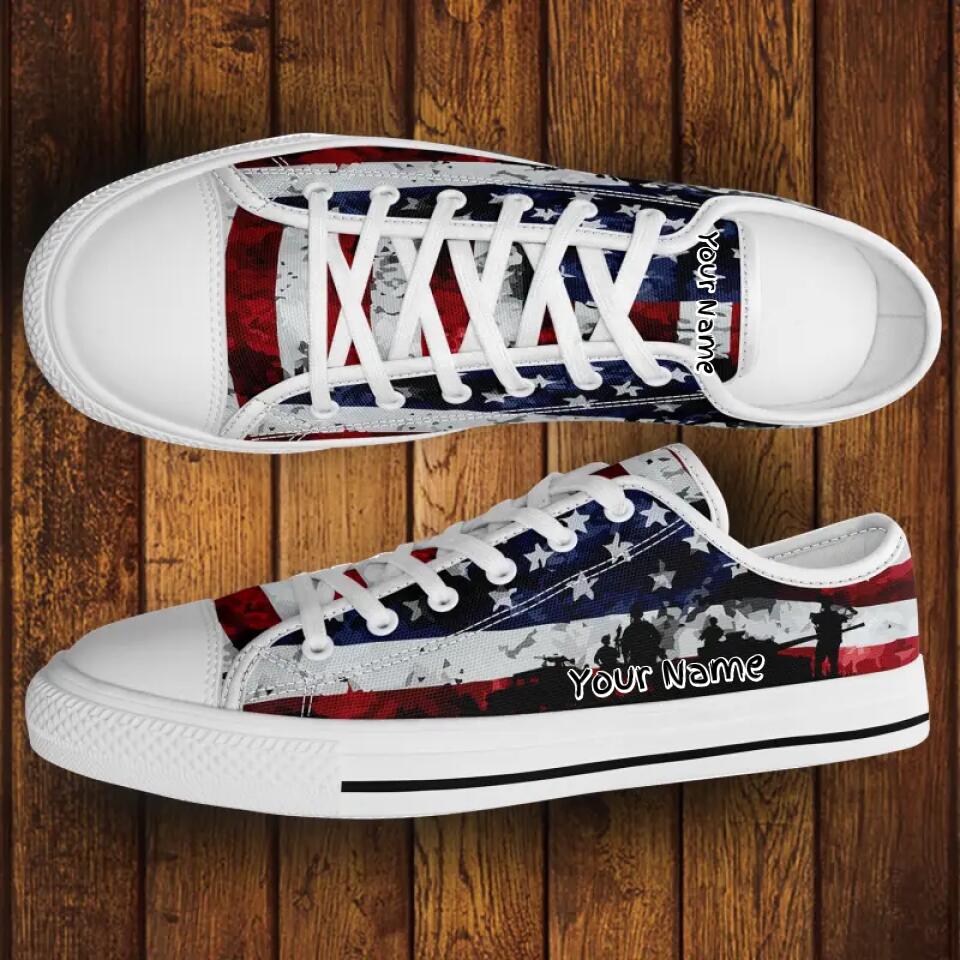 Custom USA American Flag Sneakers | Personalized Name, Logo Comfortable Running Shoes | Corporate, Business, Thank you, Promotional gift | MaxSoul-B03