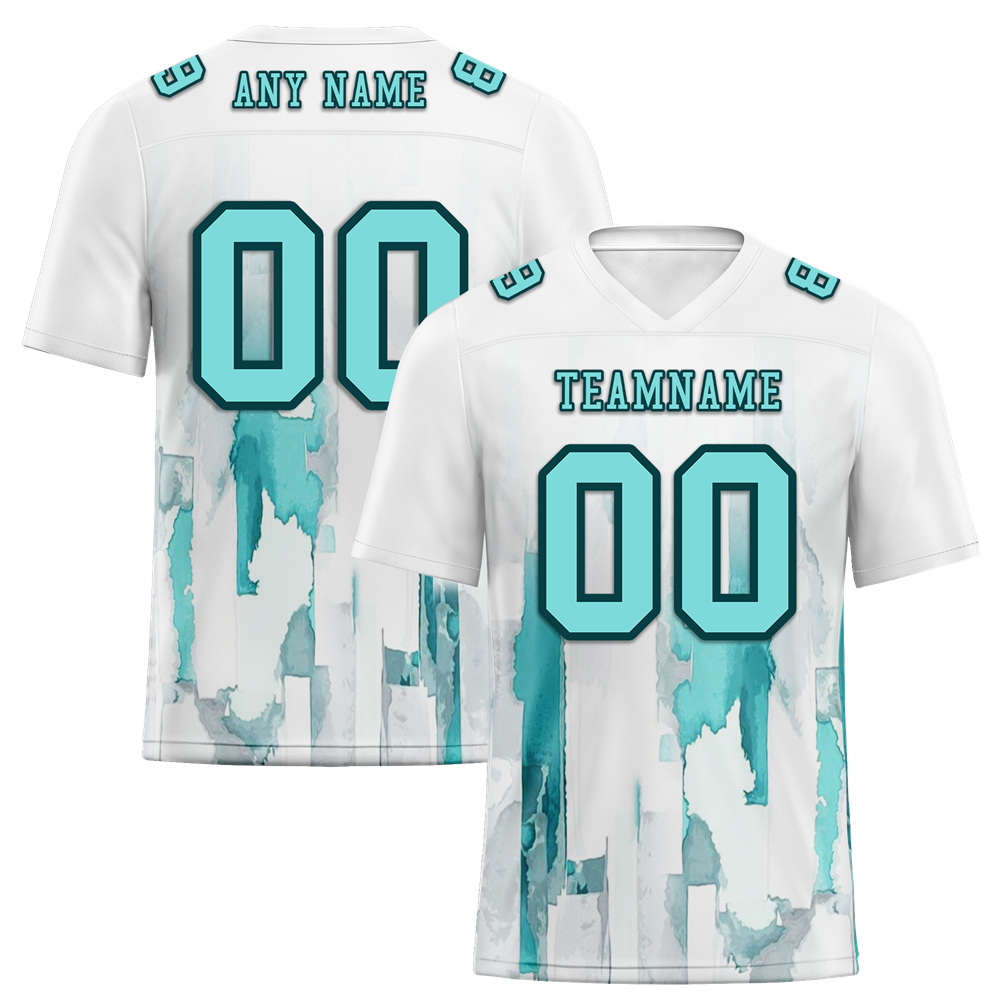 Corporate Gifts,Custom White Graffiti Pattern Aqua Personalized Authentic Football Jersey FBJ02-bc0facc