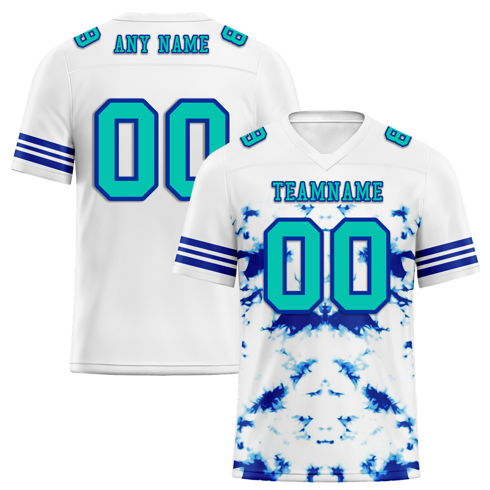 Corporate Gifts,Custom White Tie Dye Aqua Personalized Authentic Football Jersey FBJ02-bc0fa8f