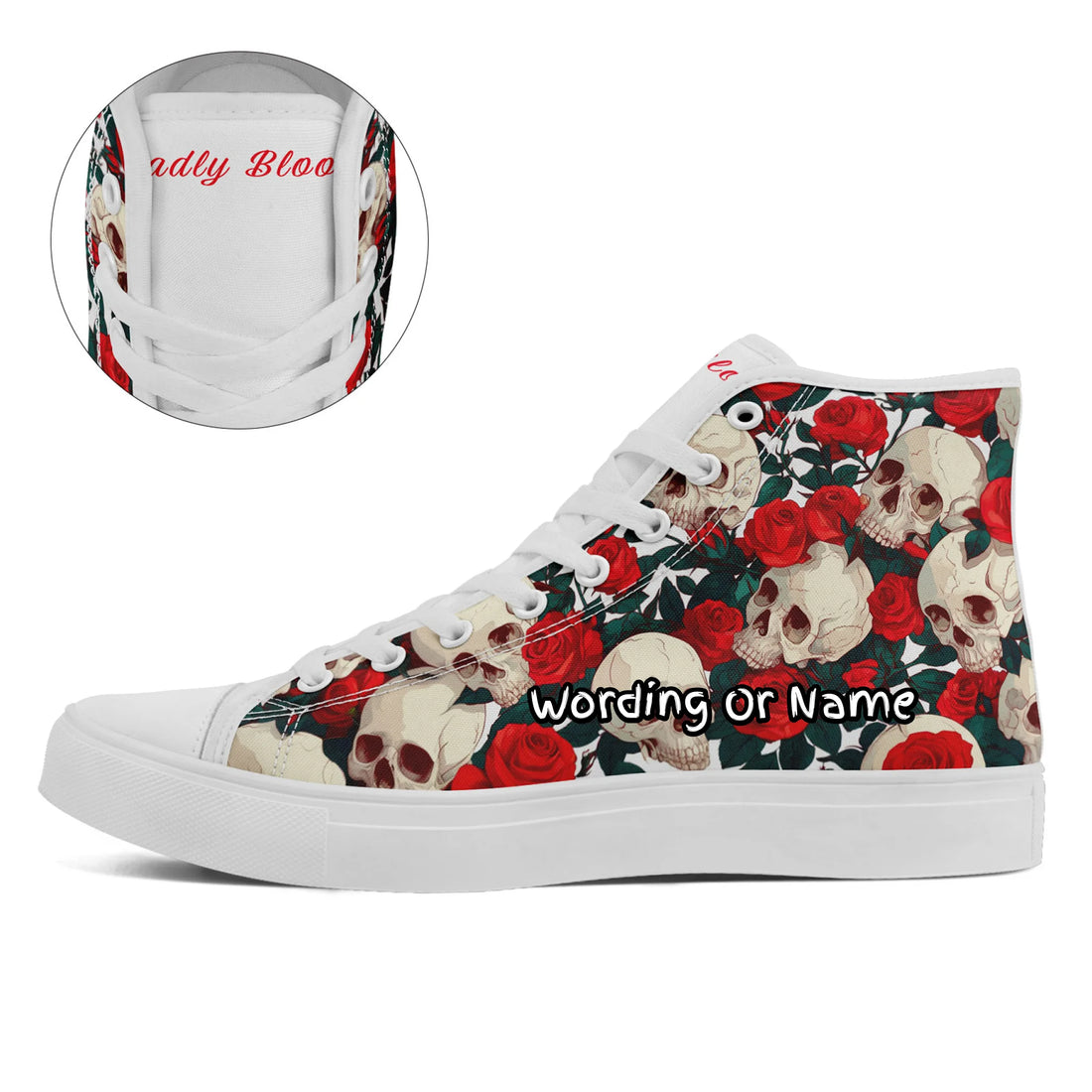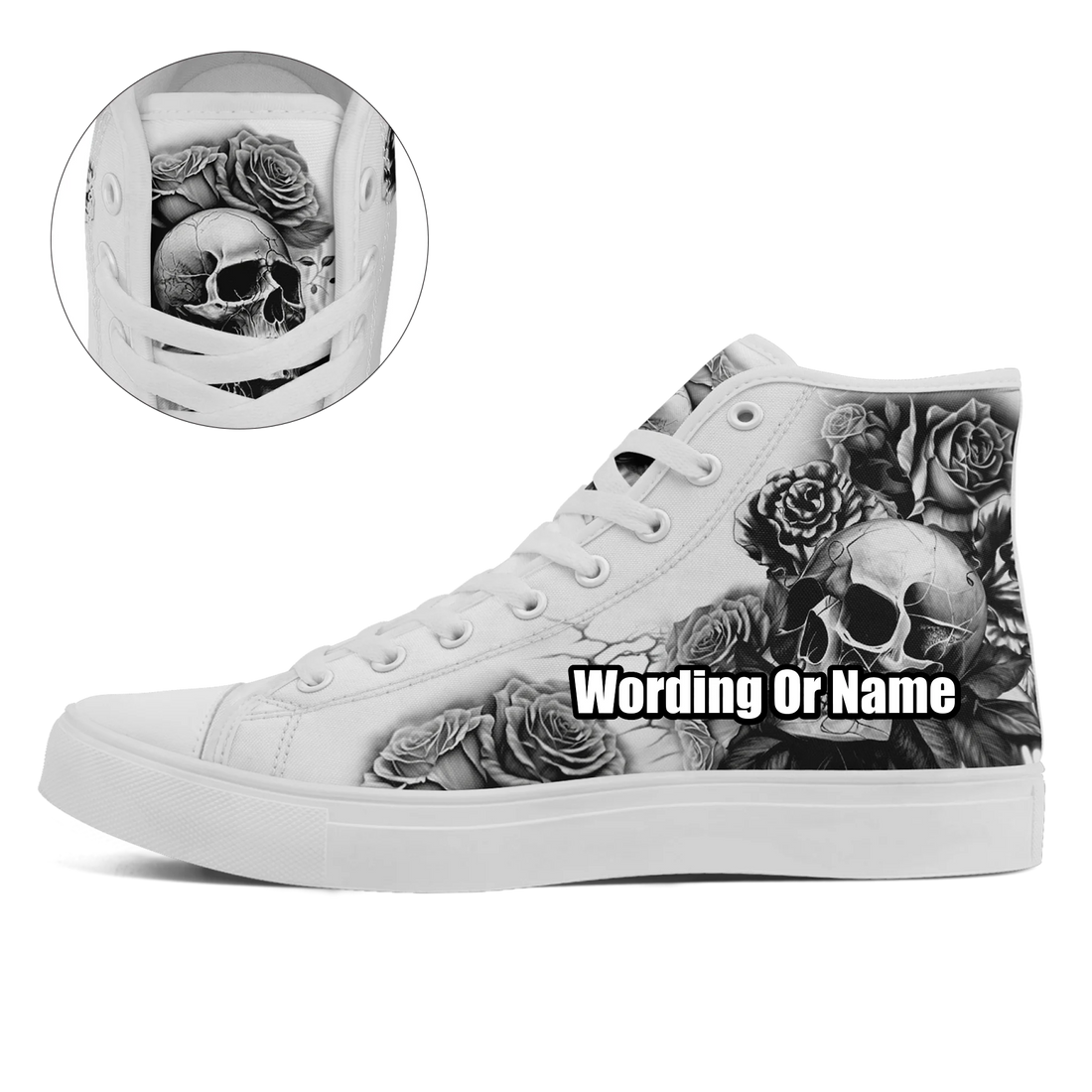 Personalized Gothic Print High Top Sneakers, Custom Skull Canvas Shoes, Stylish and Comfortable Streetwear