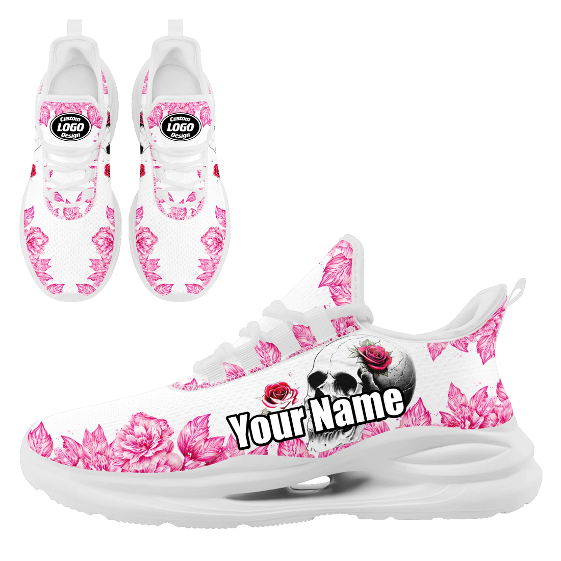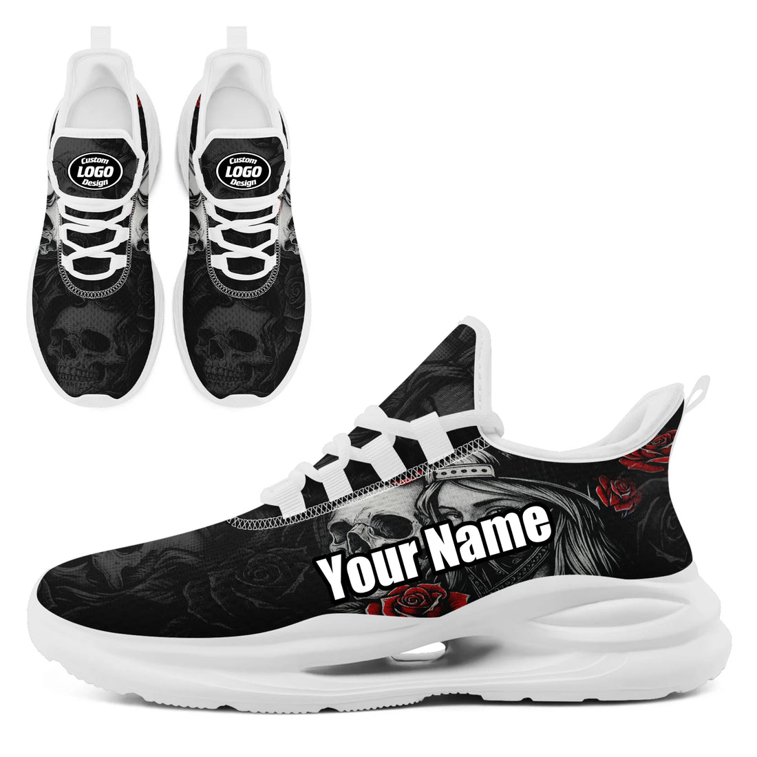 Personalized Gothic Fashion Sneakers, Custom Skull Print Breathable Shoes, Ghost with Rose Walking Shoes