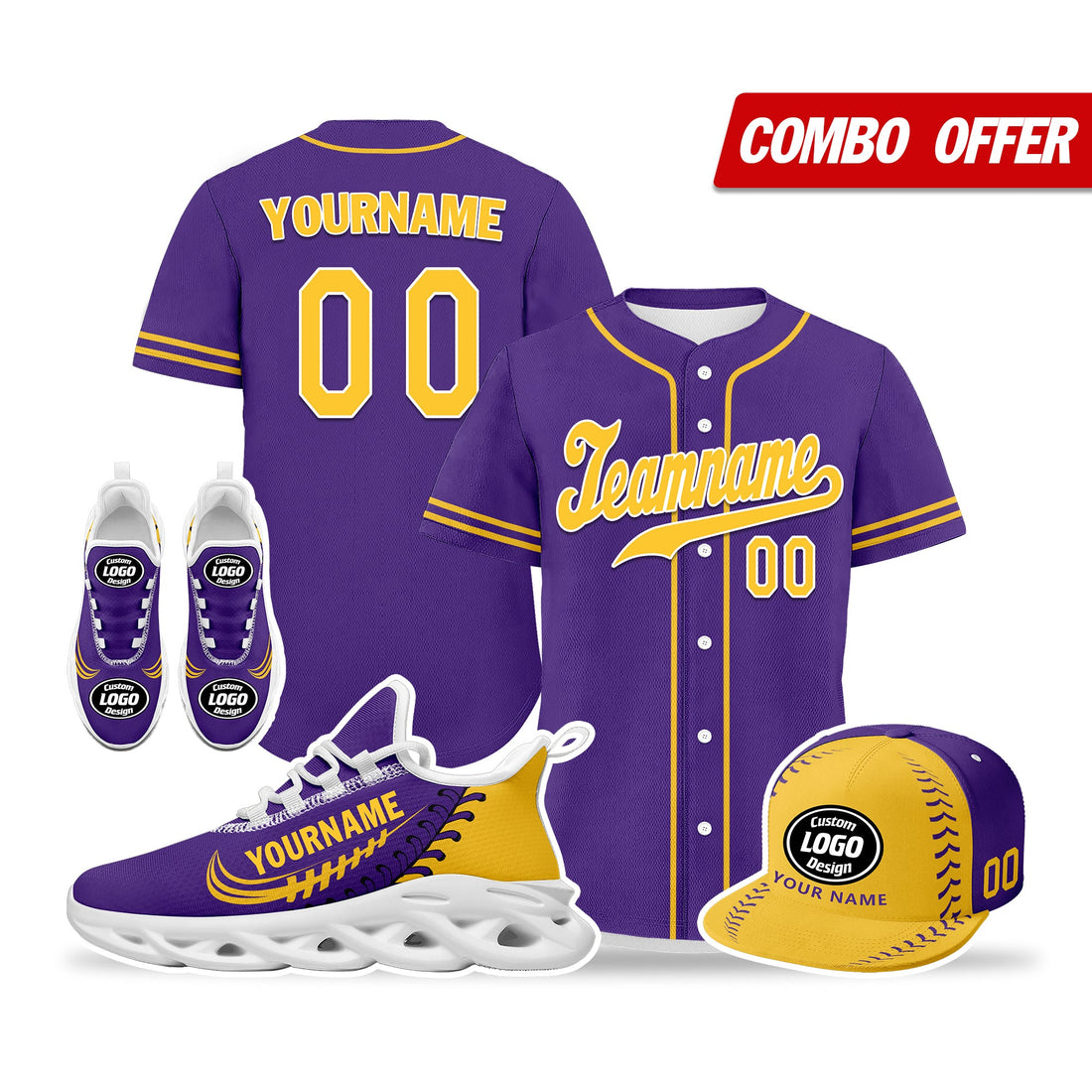 Luxury Gifts,Custom Purple Yellow Jersey MaxSoul Shoes and Hat Combo Offer Personalized ZH-bd0b007e-8