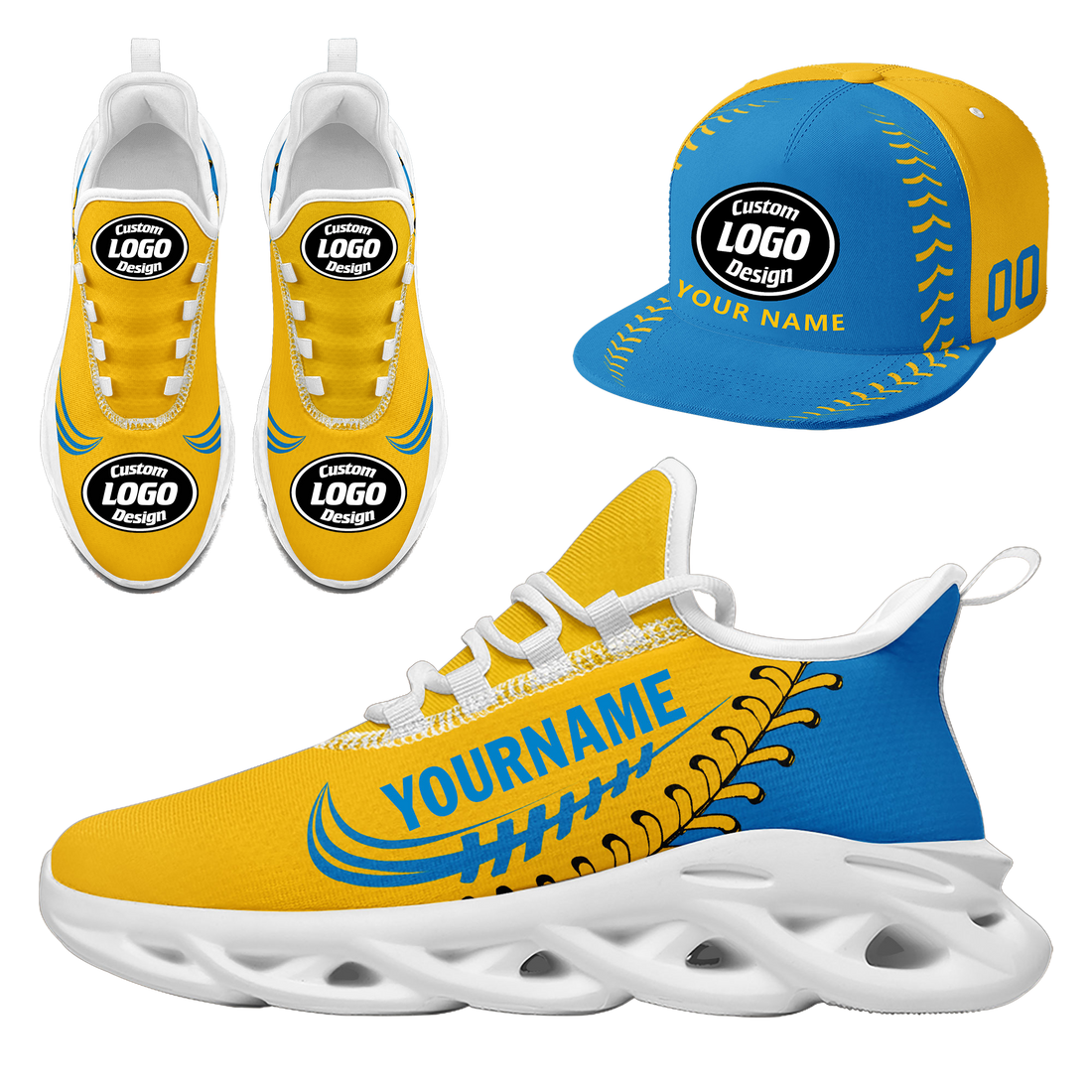 Corporate Gifts,Custom Yellow Blue Jersey MaxSoul Shoes and Hat Combo Offer Personalized ZH-D0b008e-c