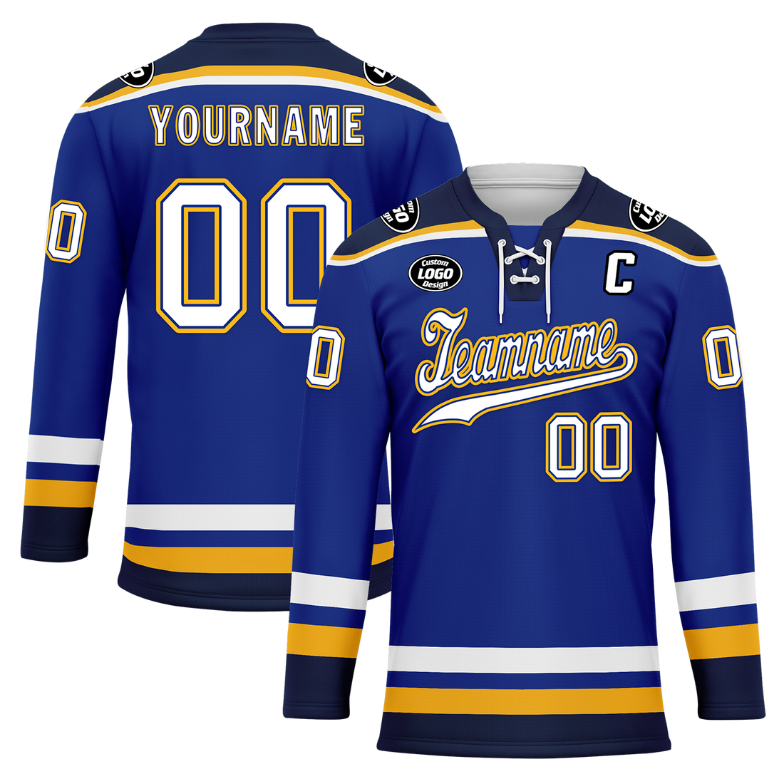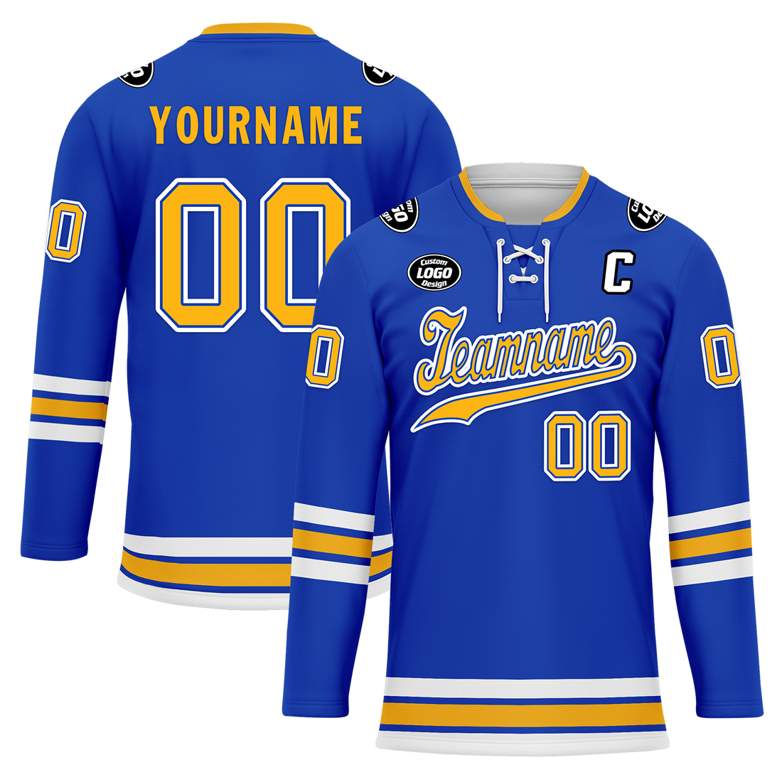 Luxury Gifts,Custom Blue Yellow Personalized Hockey Jersey HCKJ01-D0a70cc