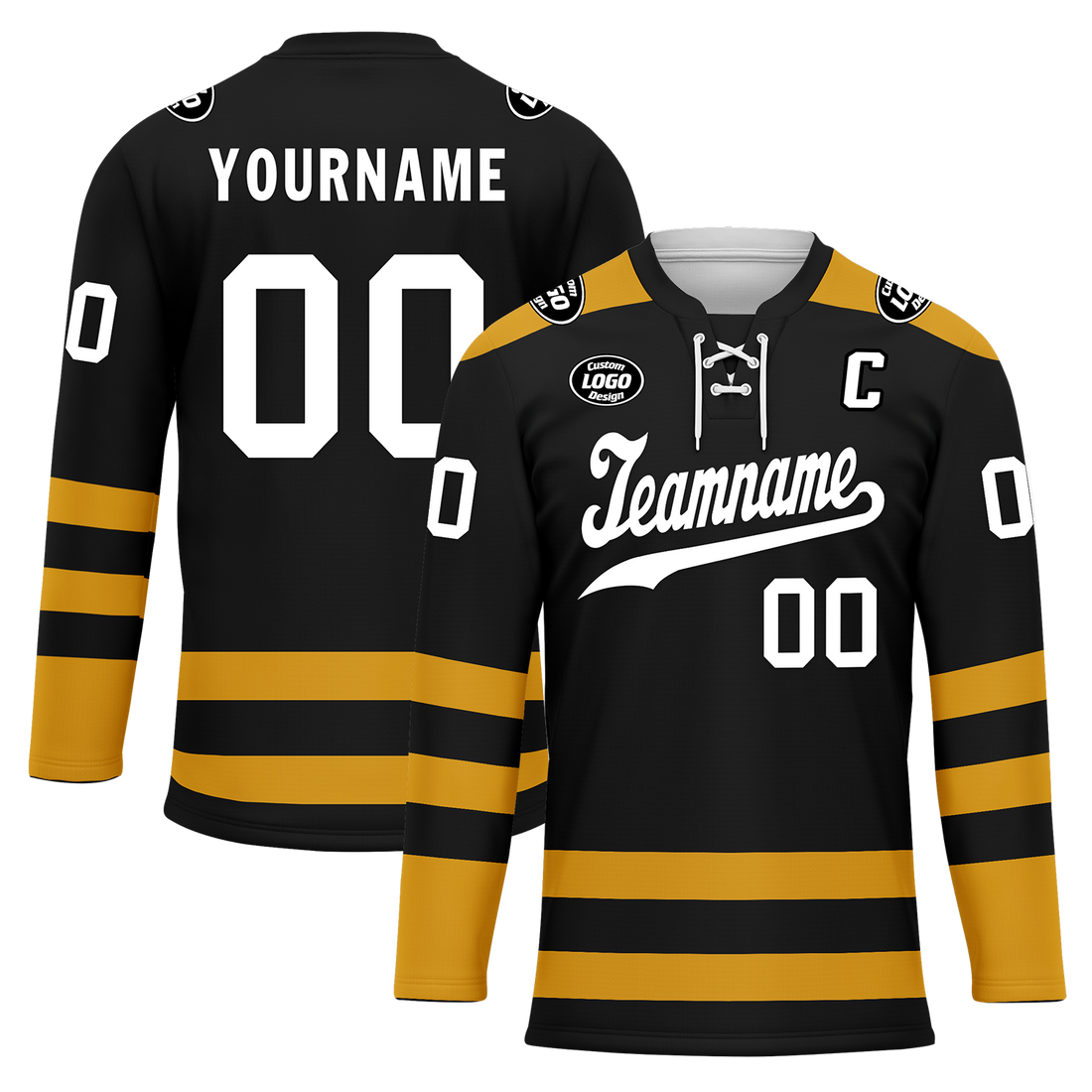 Luxury Gifts,Custom Black Yellow Personalized Hockey Jersey HCKJ01-D0a70ee