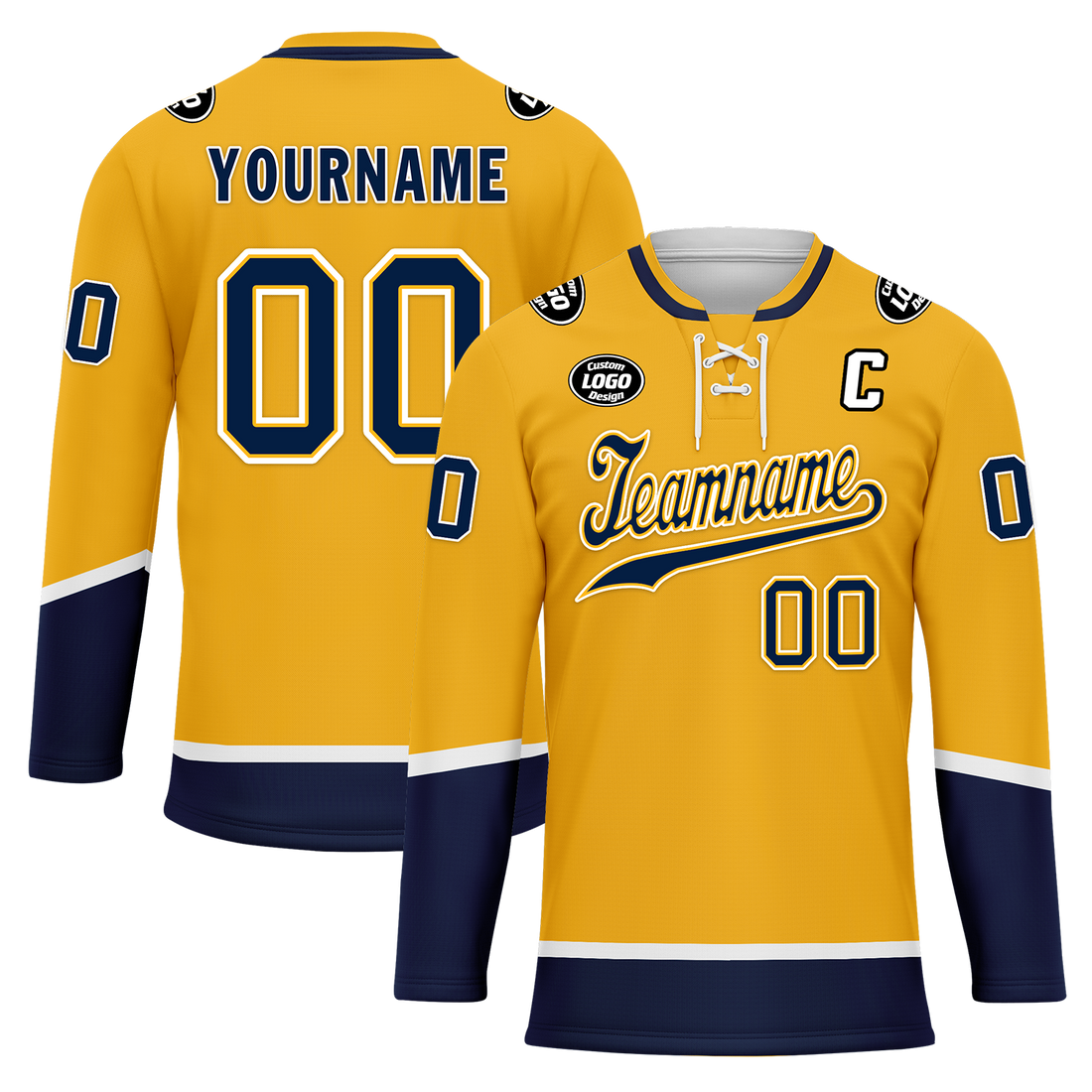 Luxury Gifts,Custom Blue Yellow Personalized Hockey Jersey HCKJ01-D0a70cc