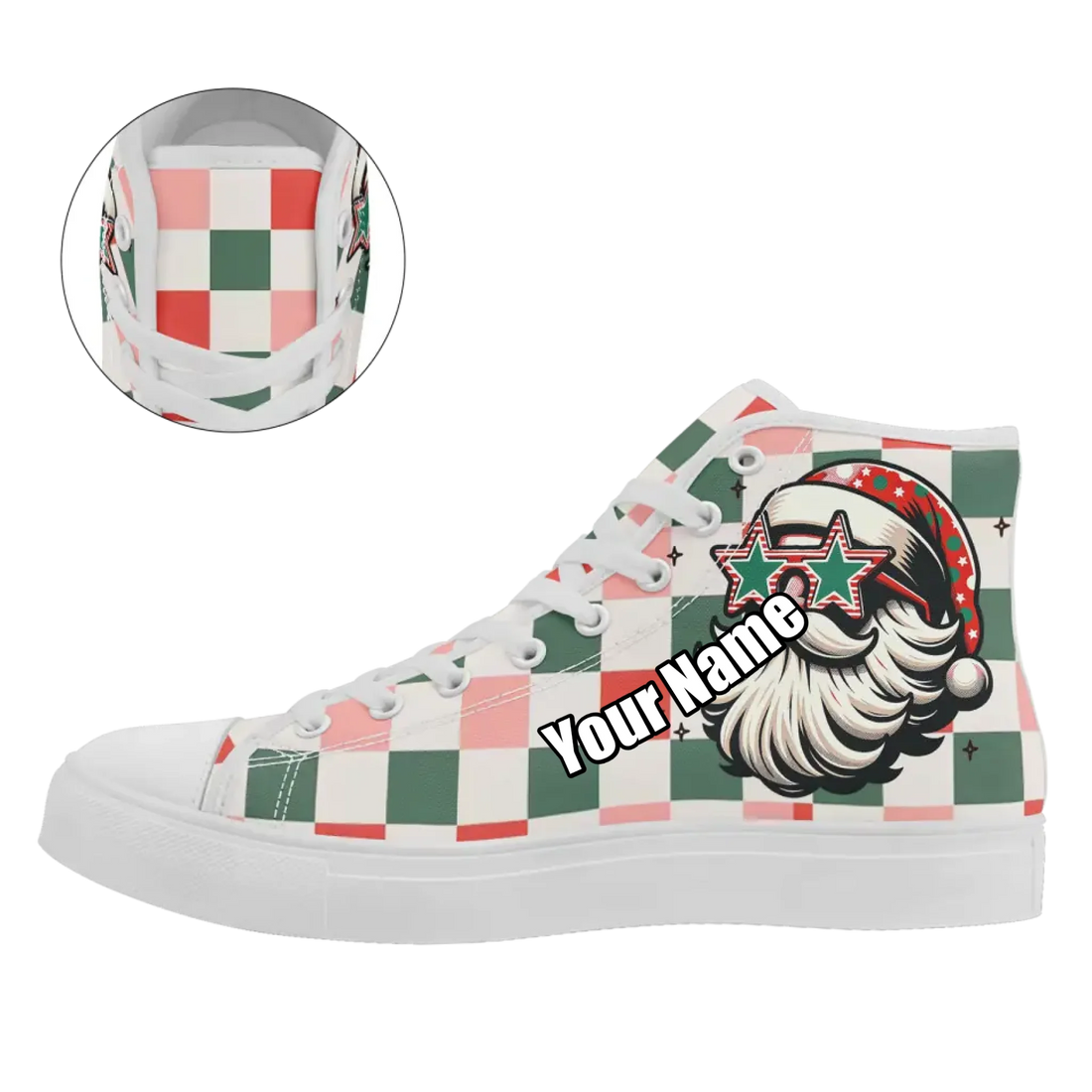 Cool Santa with Star Sunglasses High-Tops, Festive Green & Red Checkered FN024-25025144