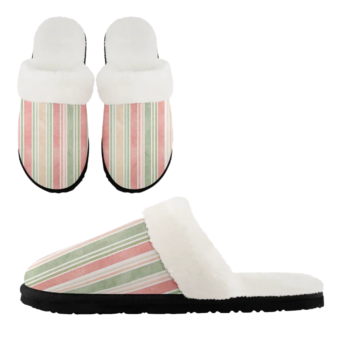 Cozy Pastel Stripe Faux Fur Slippers - Soft Winter Comfort Style FN089-25025164