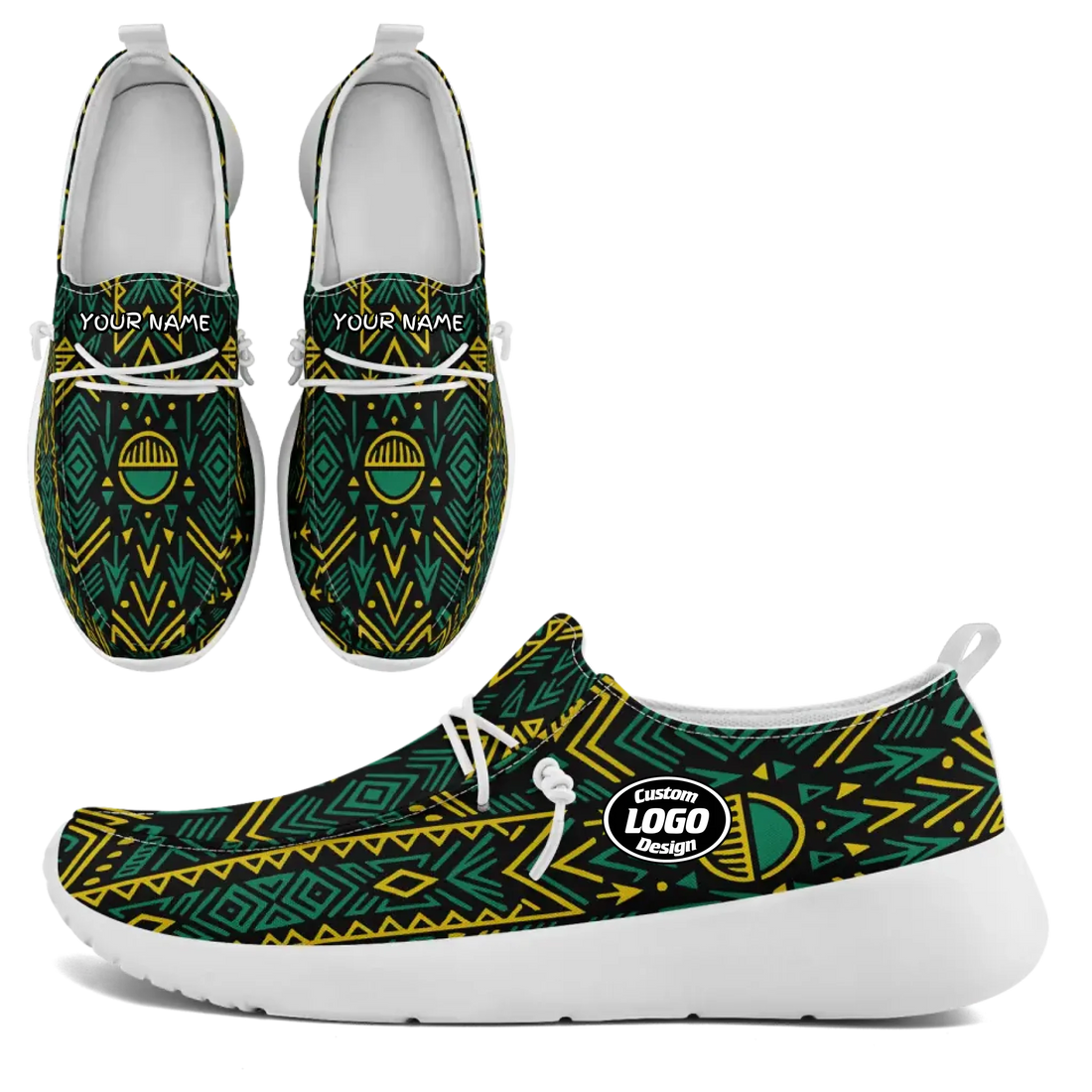 Ethnic Tribal Pattern Slip-On Loafers, Green & Yellow Geometric Print Casual Shoes FN018-25027154