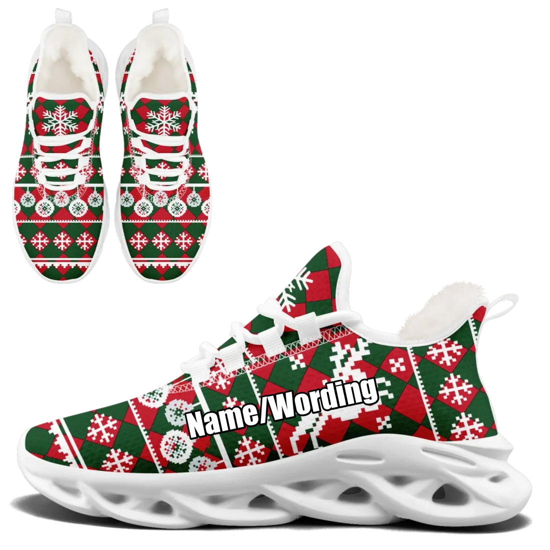Festive Ugly Sweater Style Athletic Sneakers, Holiday Knit Pattern Christmas Trainers FN003A-25018042