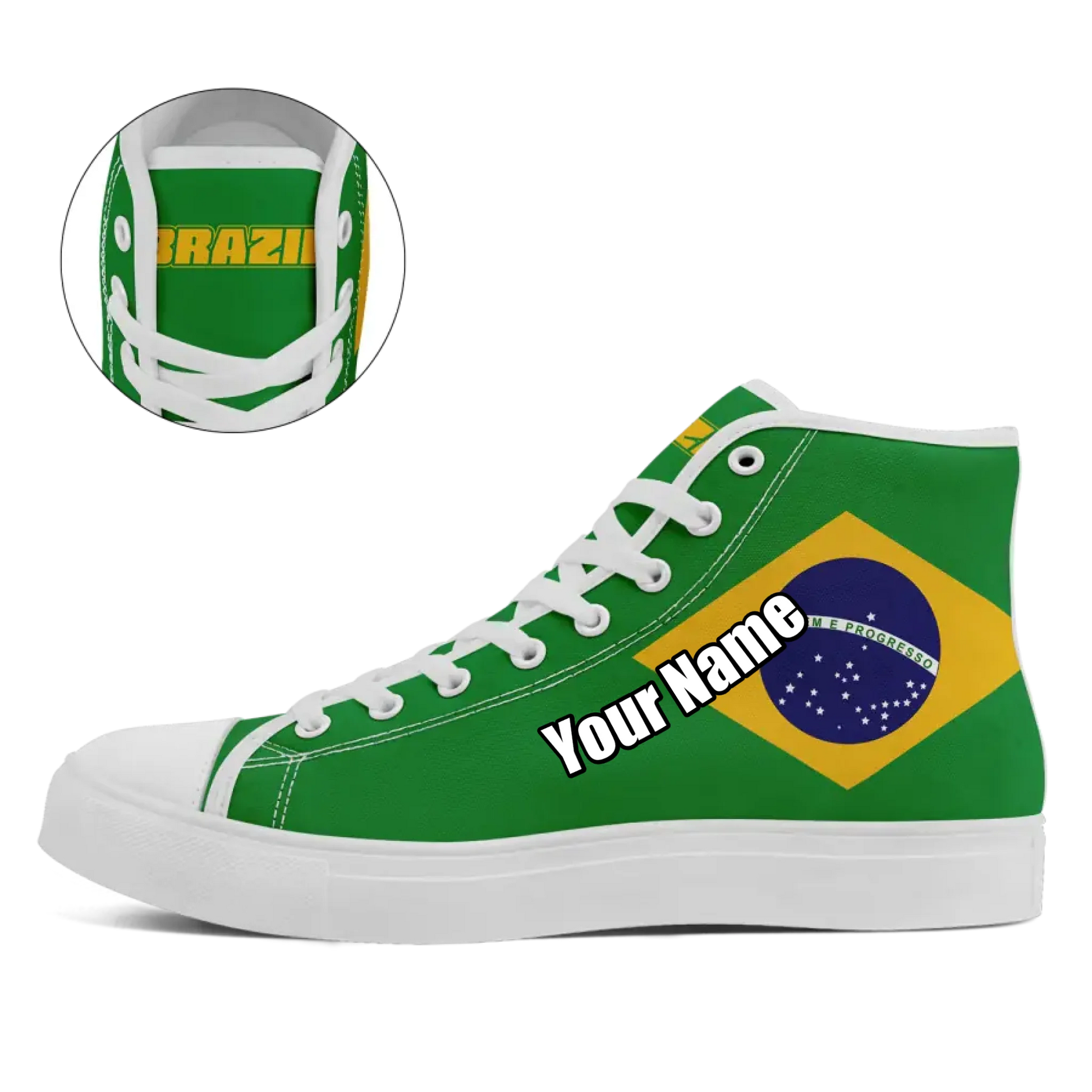 Brazilian Flag High-Top Canvas Sneakers, National Pride Patriotic Shoes FN024-25027158