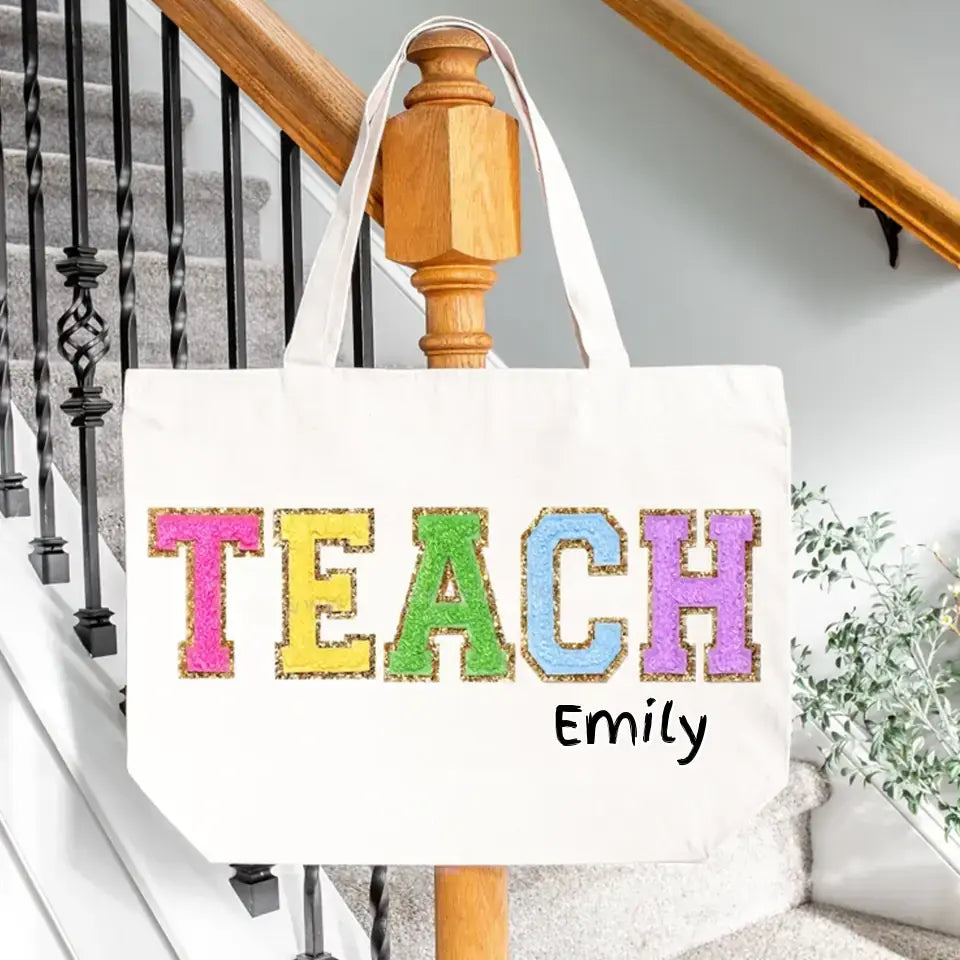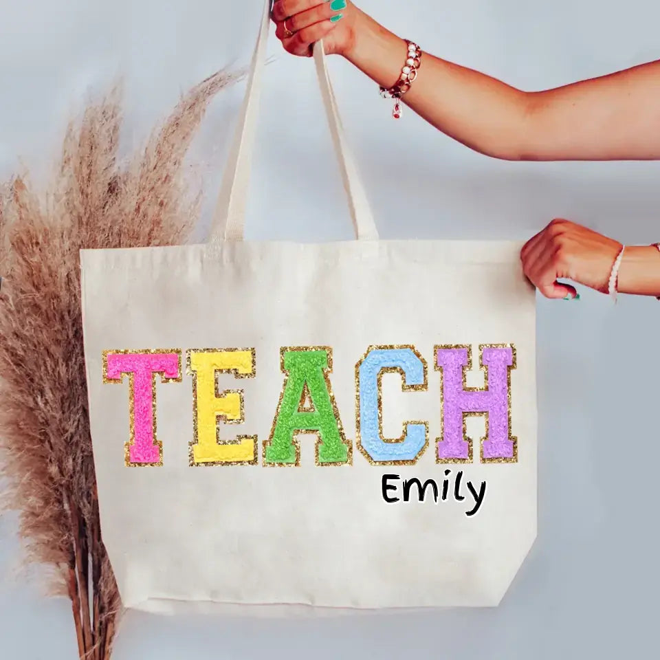 Christmas gift ideas employees, Custom Corporate Gifts Chenille Patch Teacher Tote Bag, Teacher Appreciation Gift Ideas for Teacher End of Year, Personalized Embroidered Custom Teacher Bag, Bags-C05100