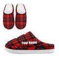 Classic Red & Black Plaid Padded Slippers, Cozy Quilted Tartan Winter House Shoes FN057-25025141