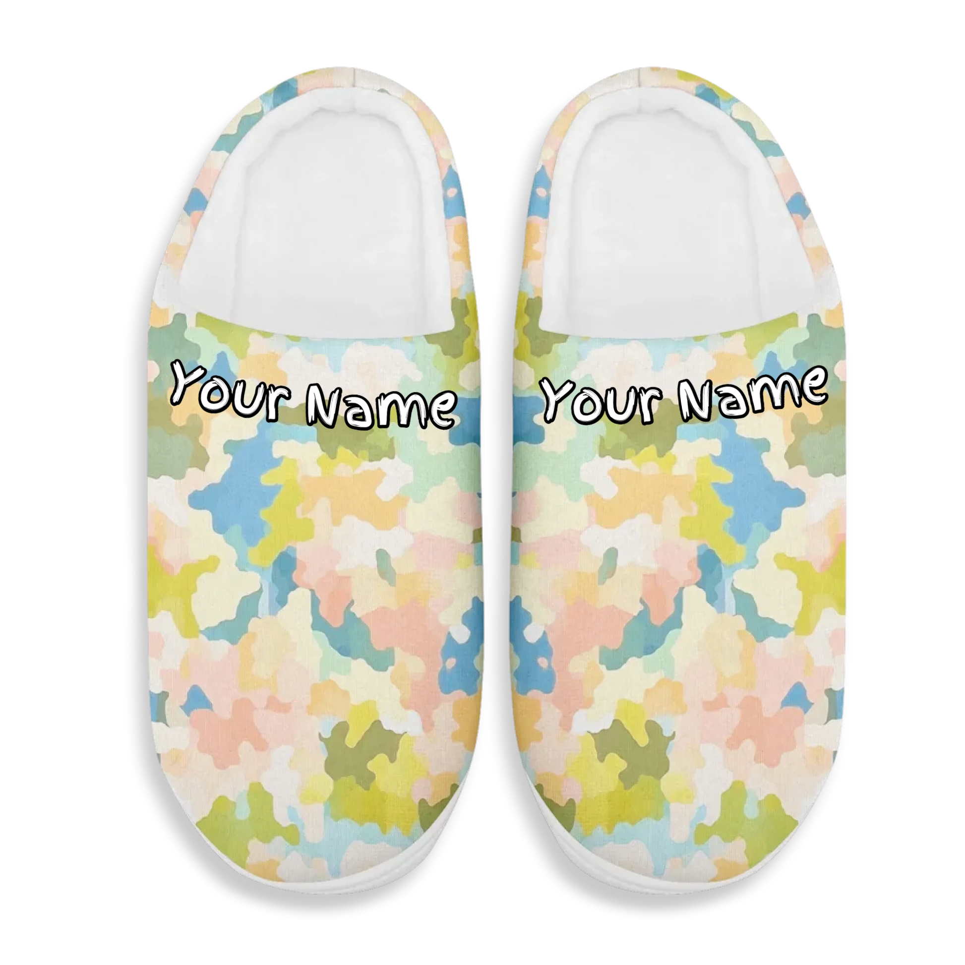 Redefine camouflage with these Artistic Pastel Camo Slippers.