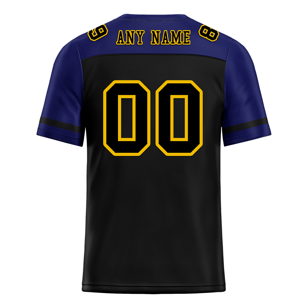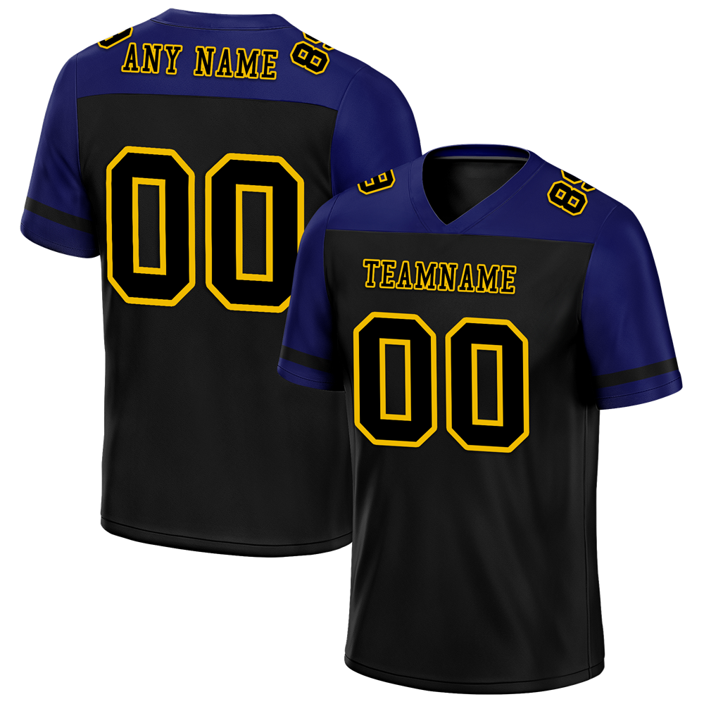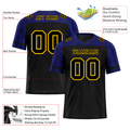 Corporate Gifts,Custom Black Blue Raglan Sleeves Black Personalized Authentic Football Jersey FBJ02-bc0f0bd