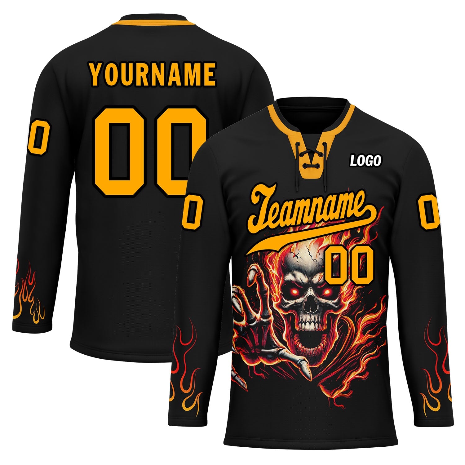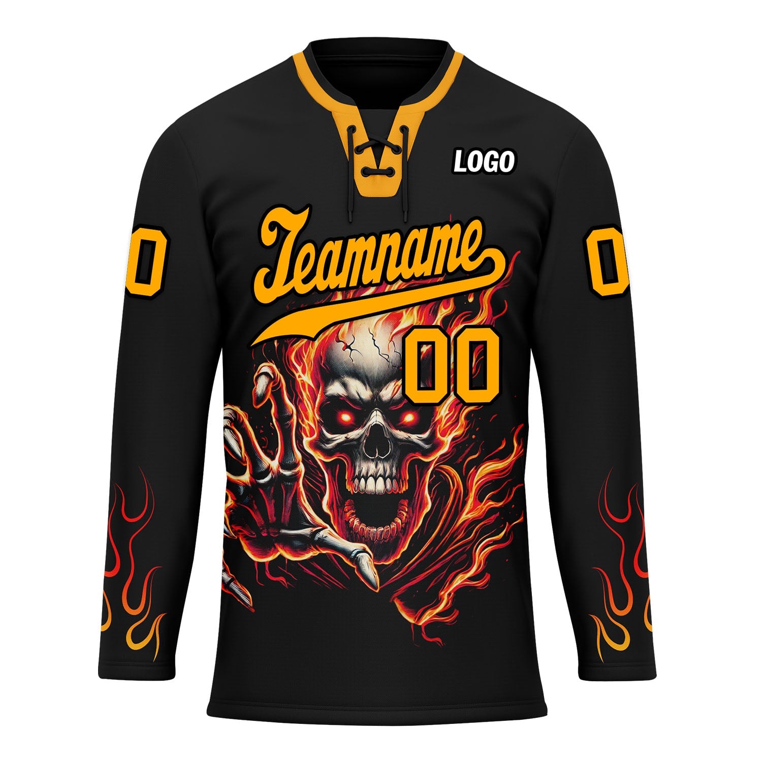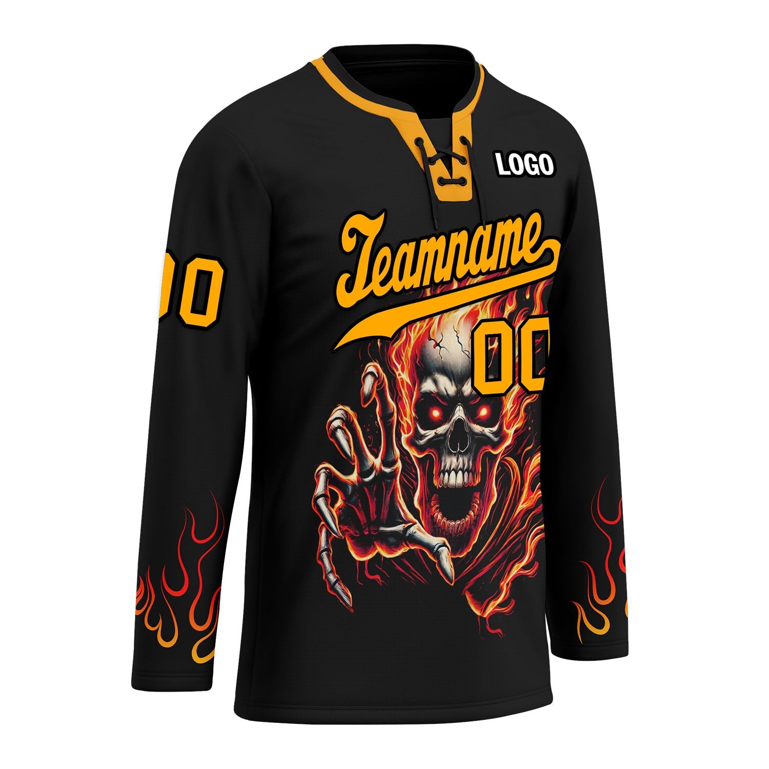 Custom Black Orange Gothic Personalized Hockey Jersey HCKJ01-E0601-02