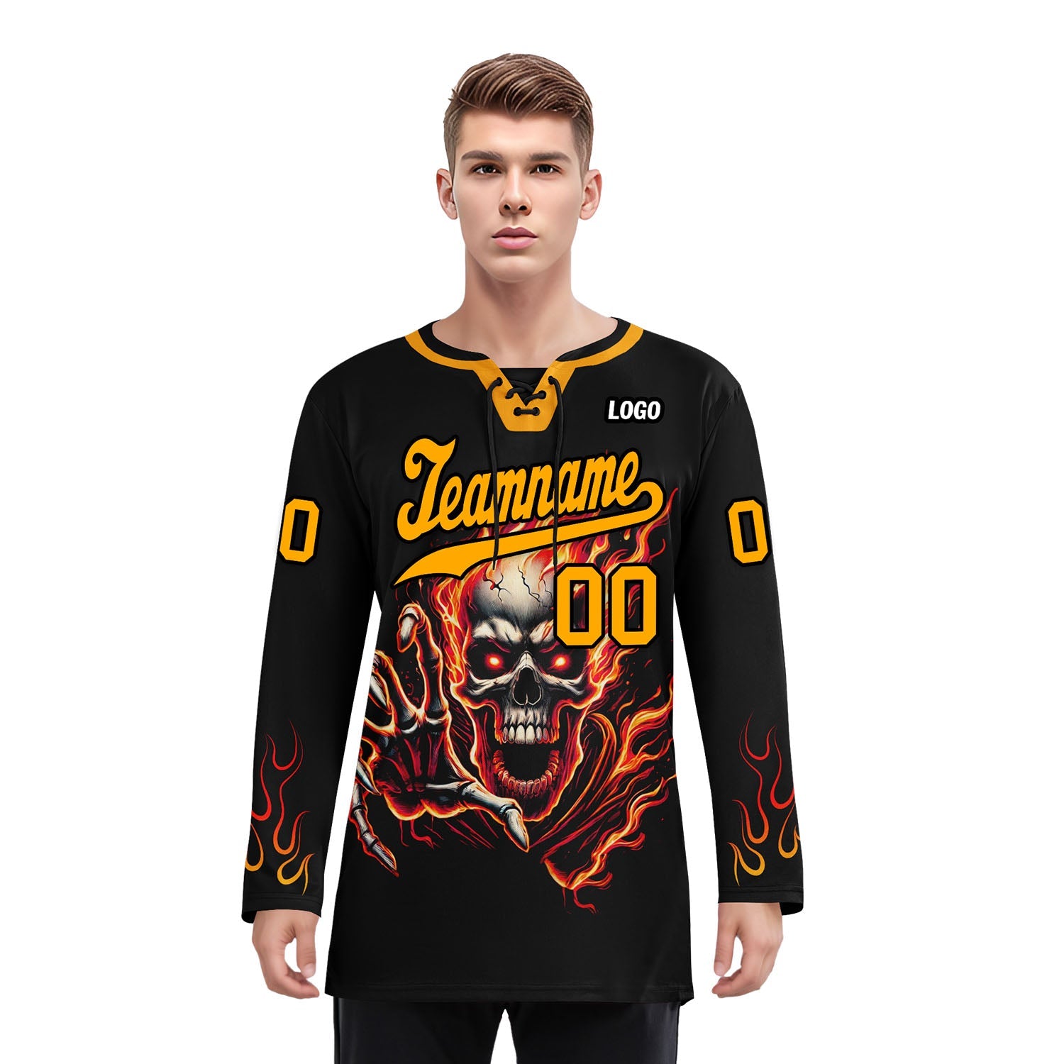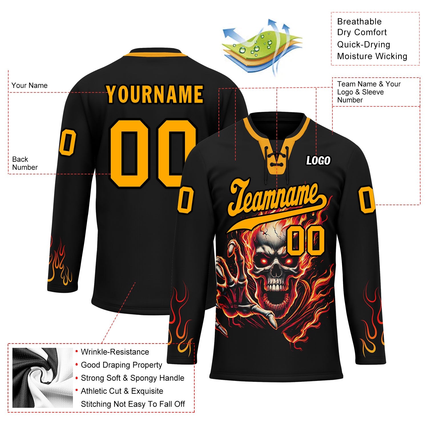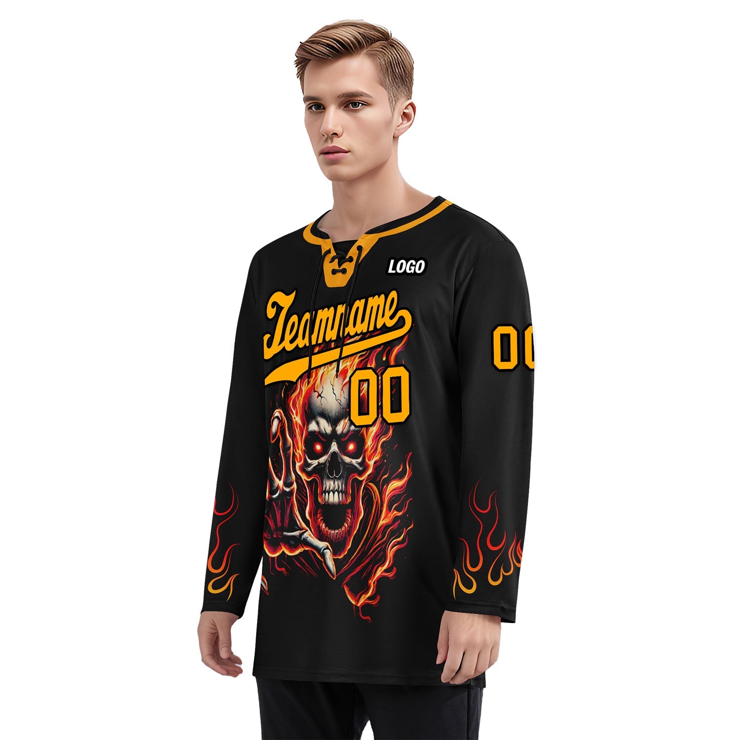 Custom Black Orange Gothic Personalized Hockey Jersey HCKJ01-E0601-02