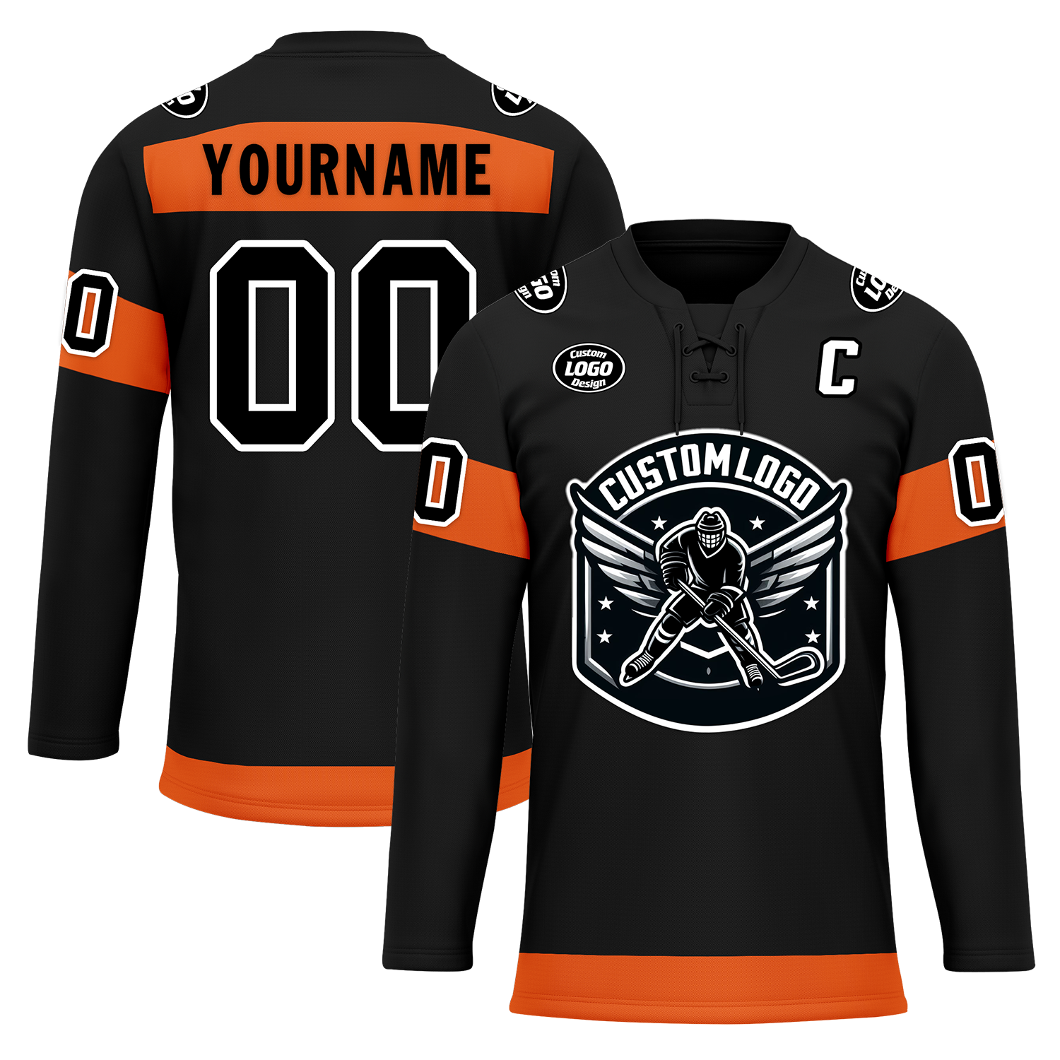 Luxury Gifts,Custom Black Orange Personalized Hockey Jersey HCKJ01-D0a70ec