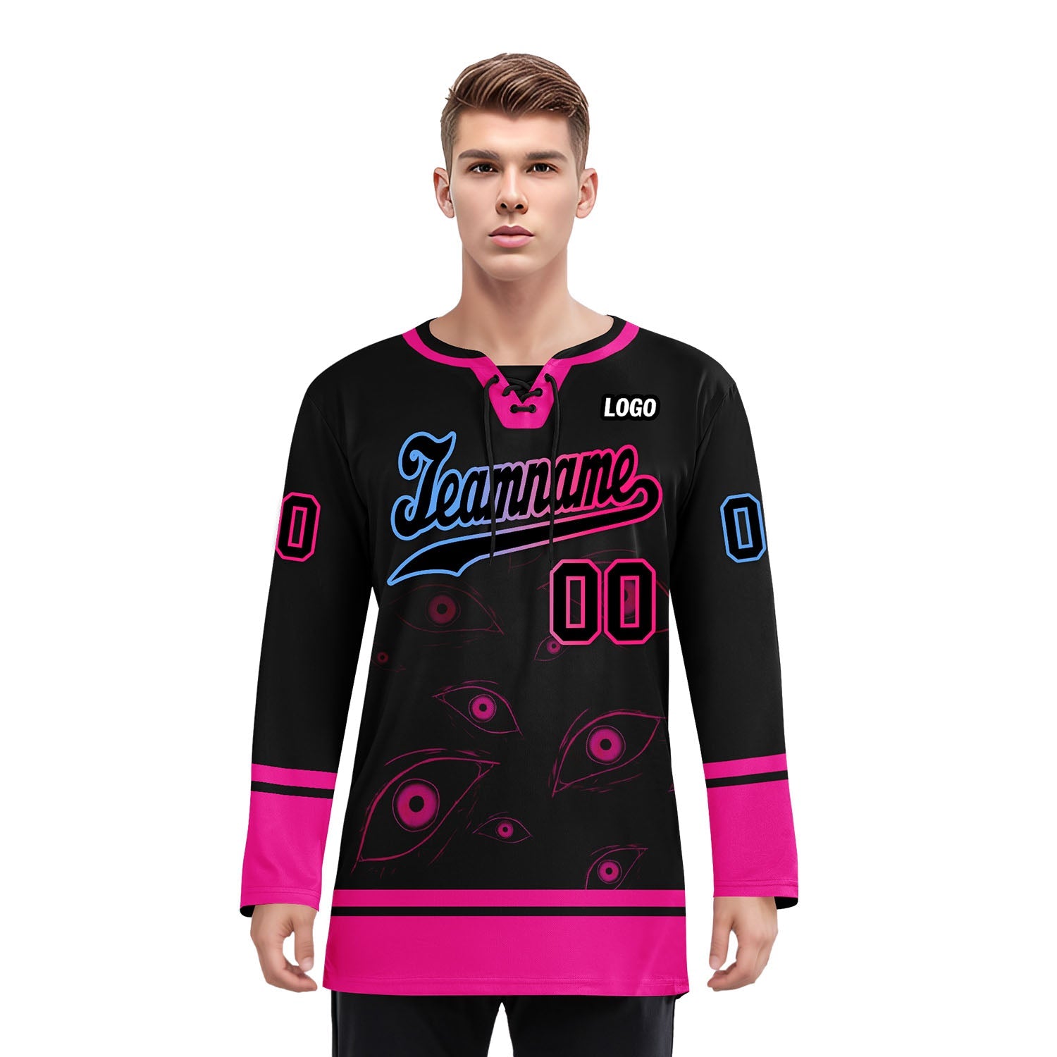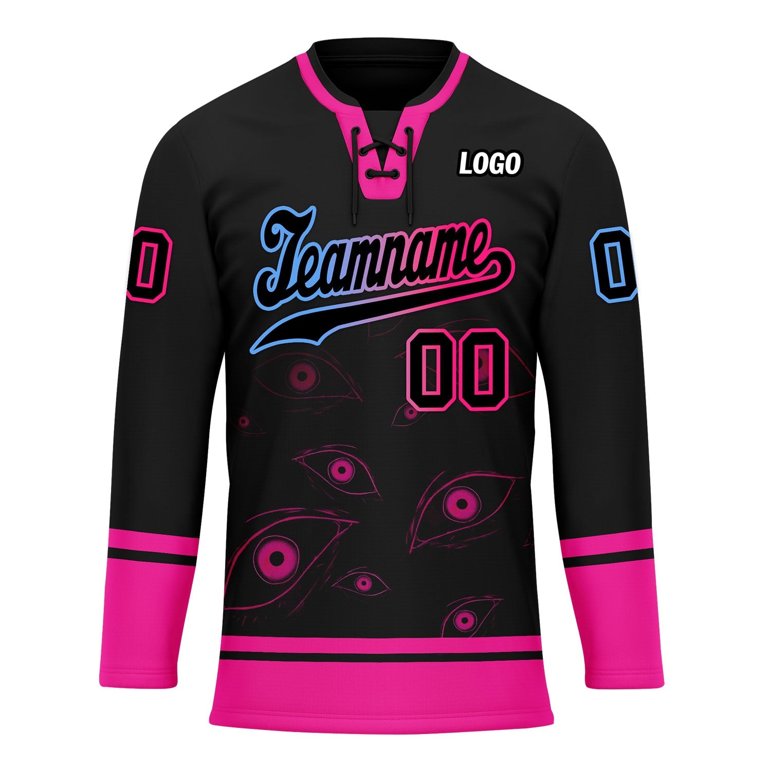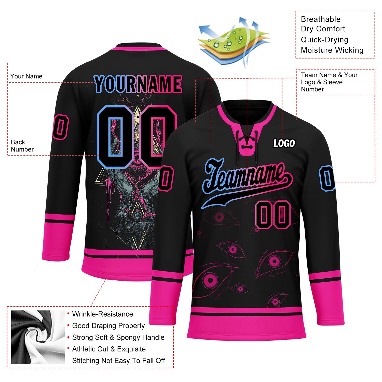 Custom Black Pink Light blue Gothic Personalized Hockey Jersey HCKJ01-E0601-05