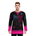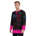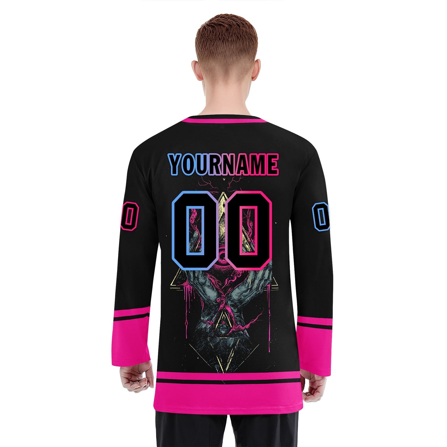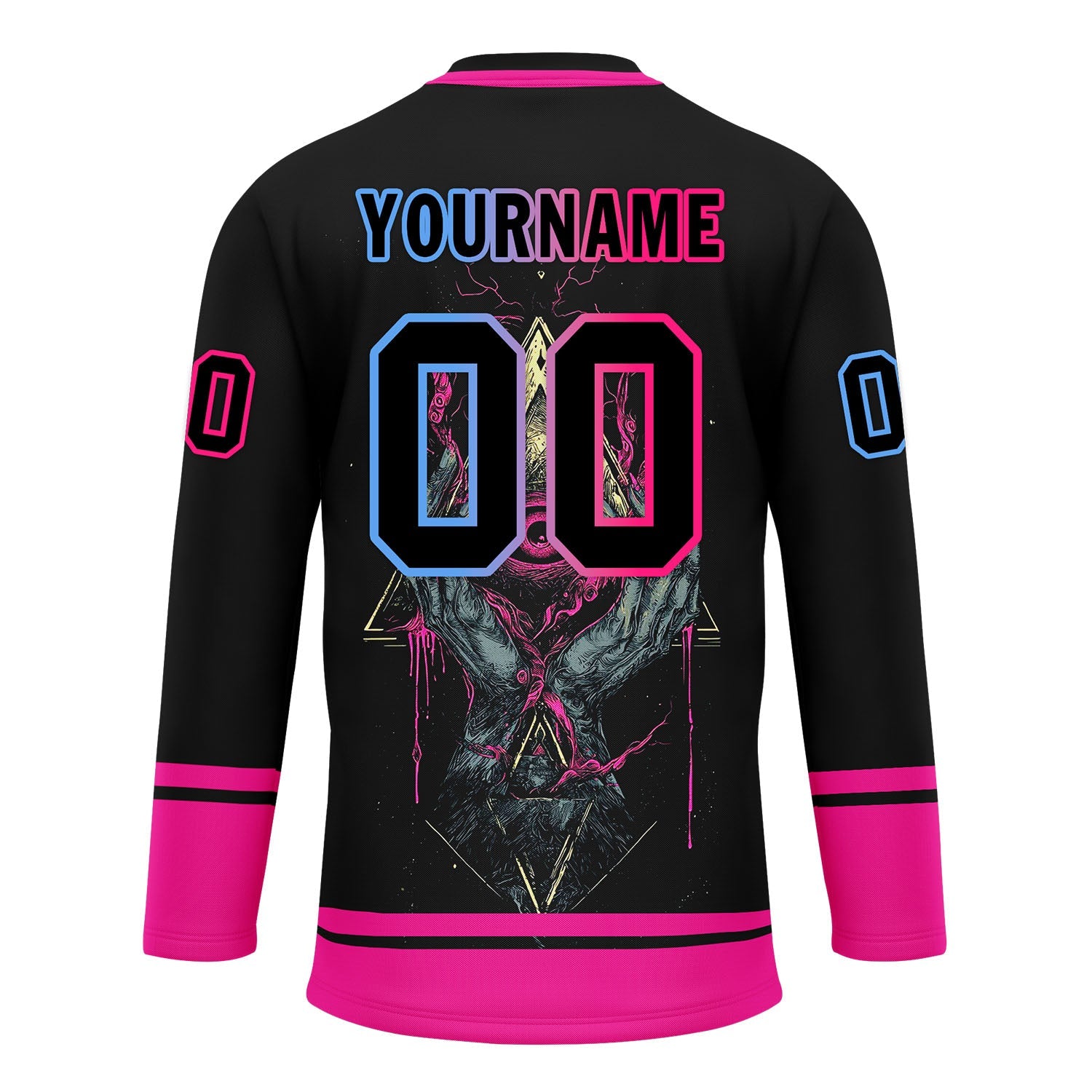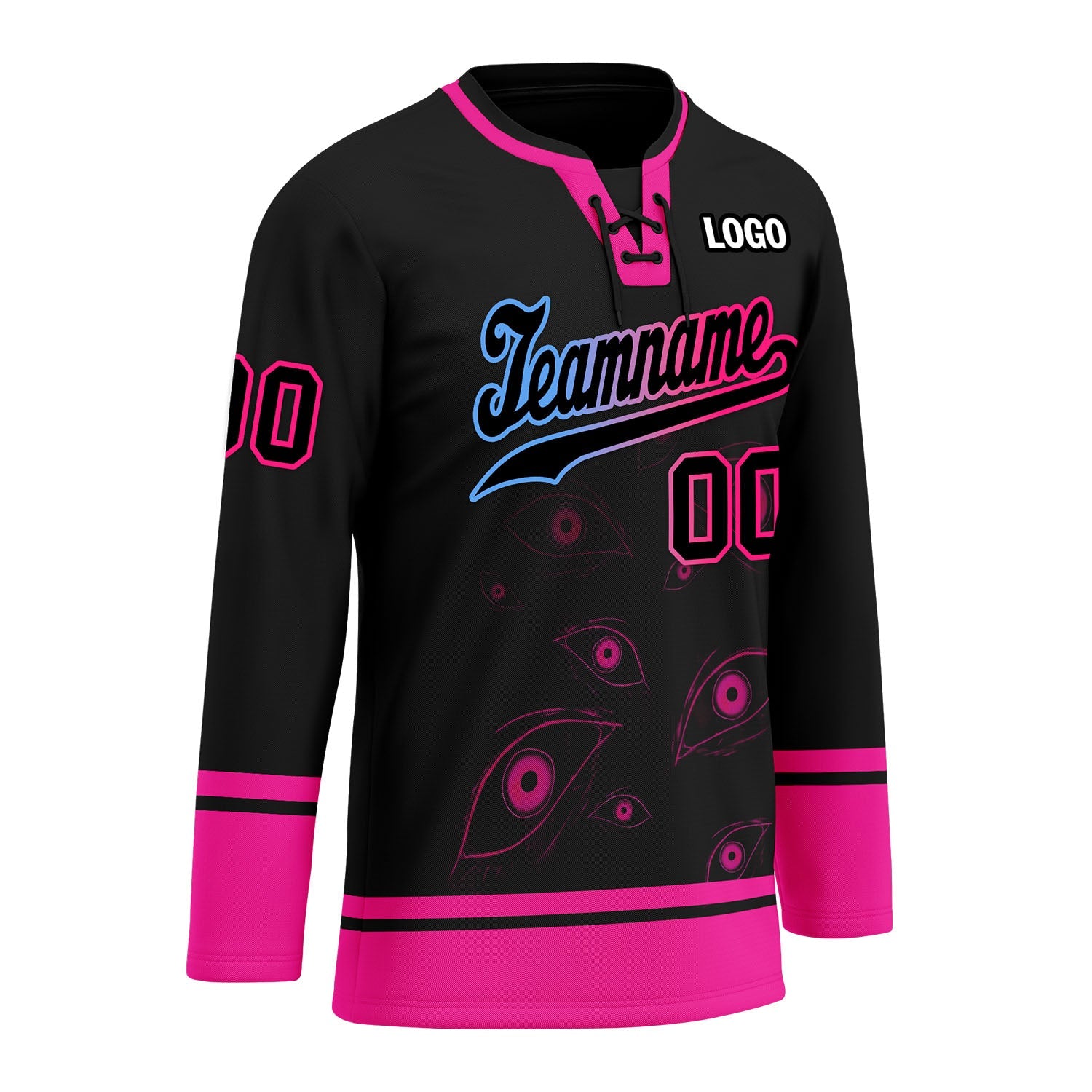 Custom Black Pink Light blue Gothic Personalized Hockey Jersey HCKJ01-E0601-05