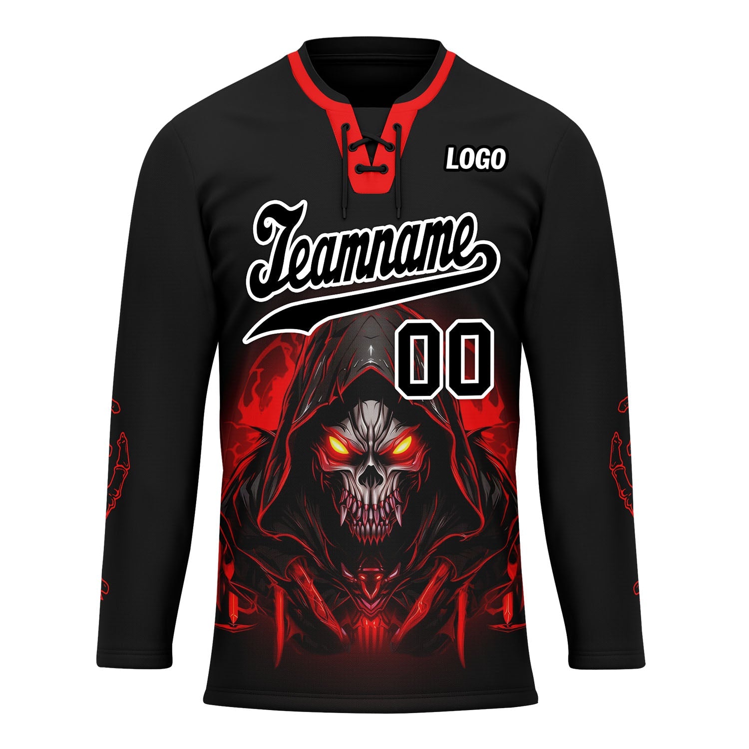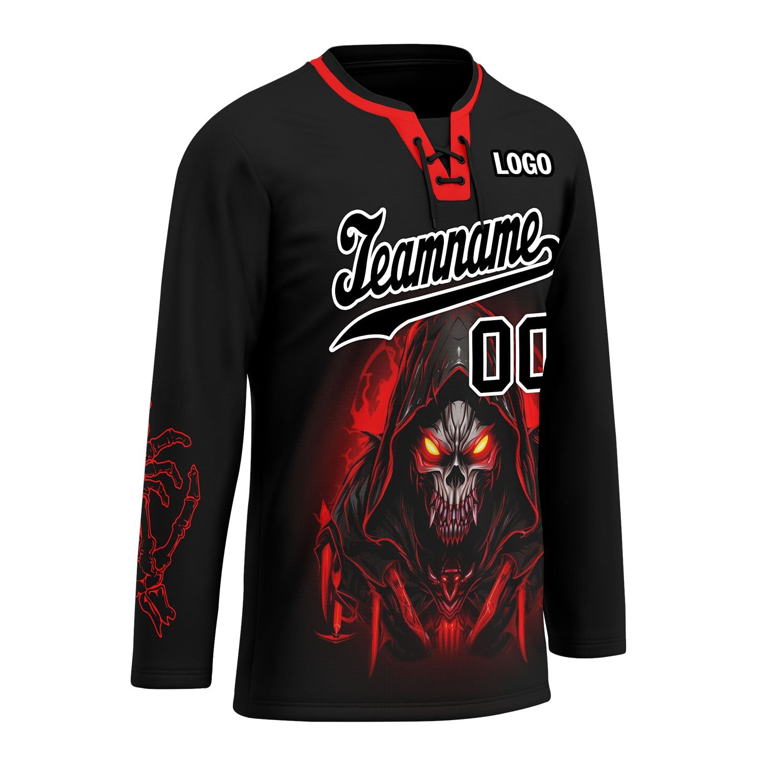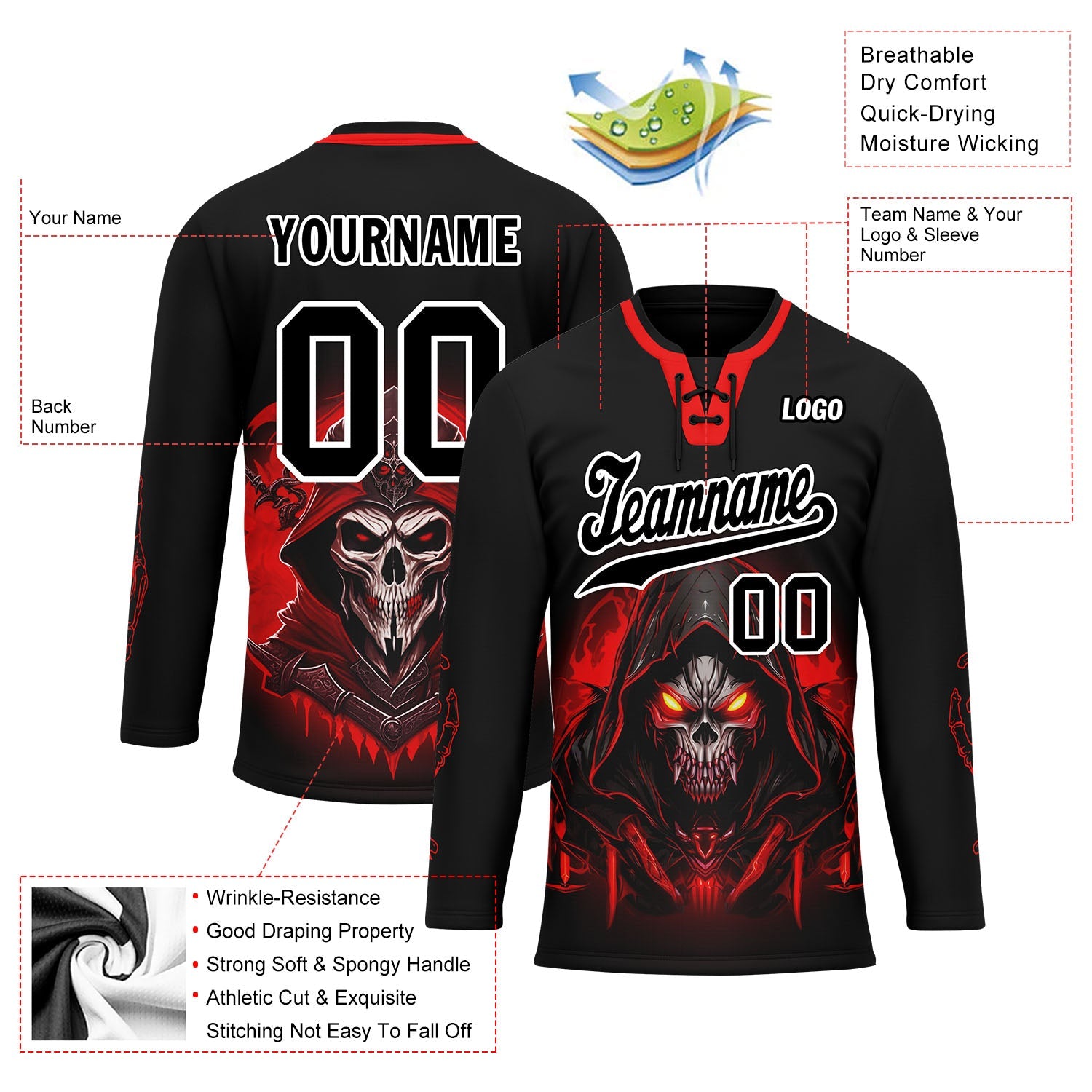 Custom Black Red Gothic Personalized Hockey Jersey HCKJ01-E0601-08