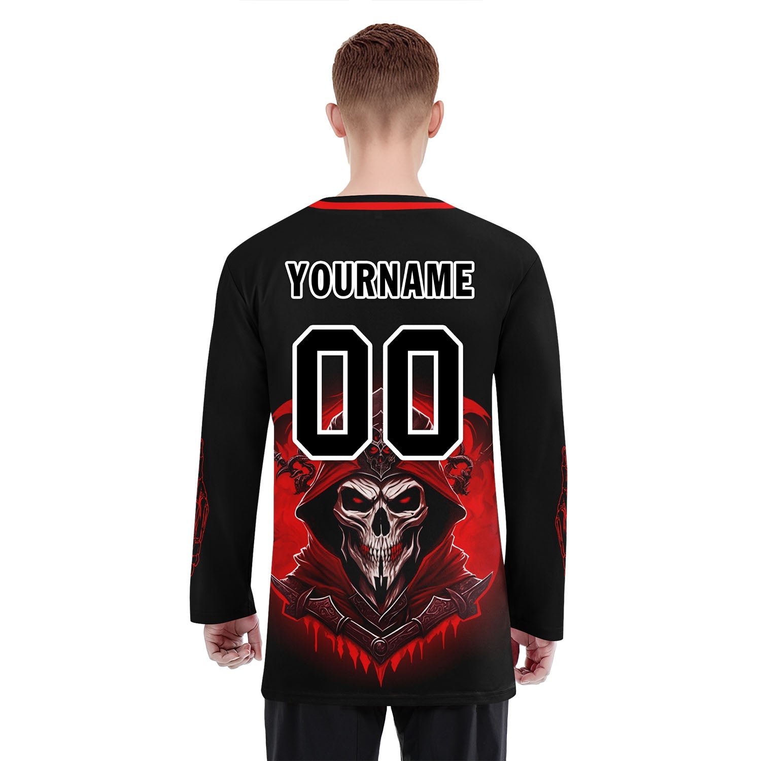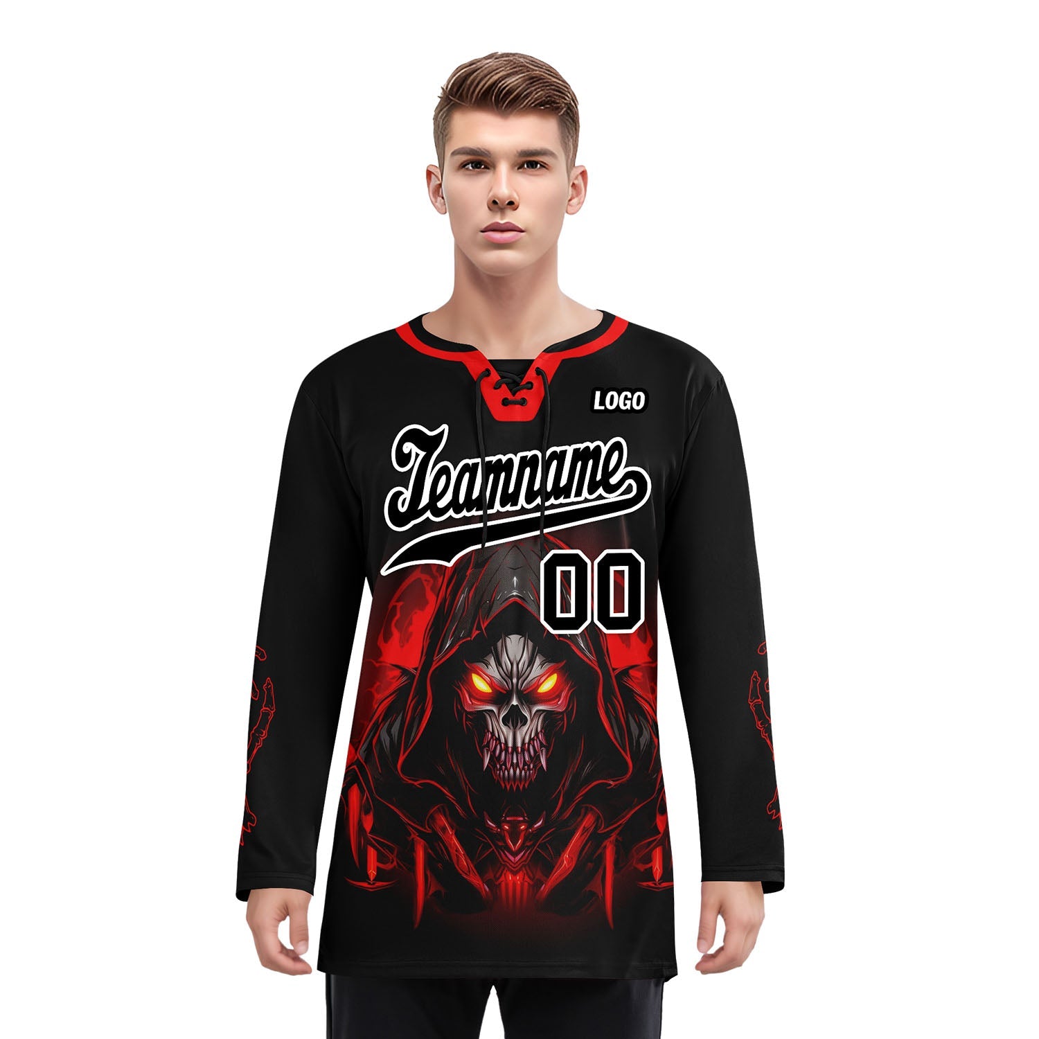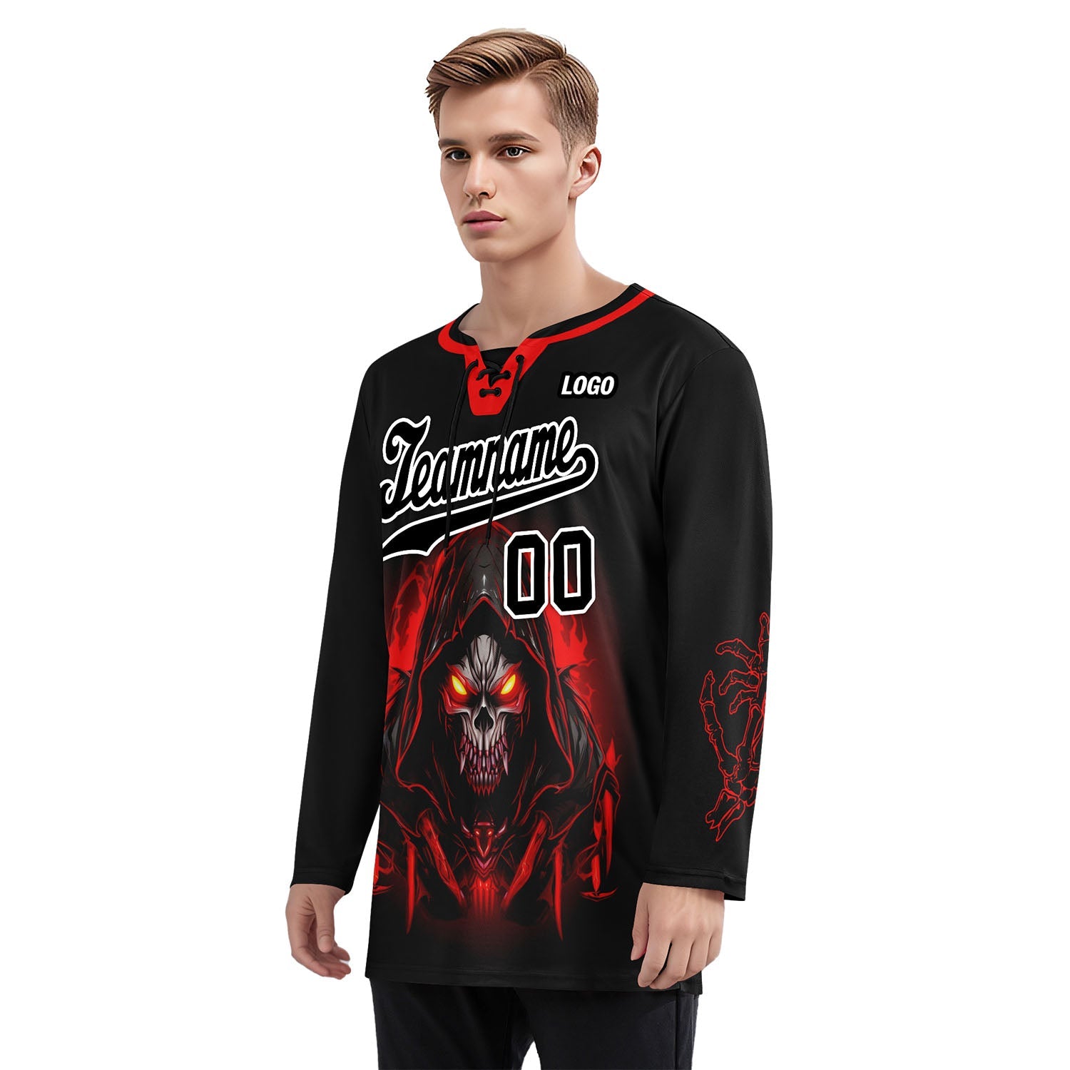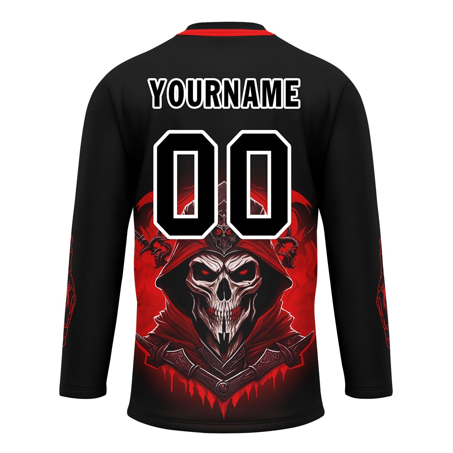 Custom Black Red Gothic Personalized Hockey Jersey HCKJ01-E0601-08