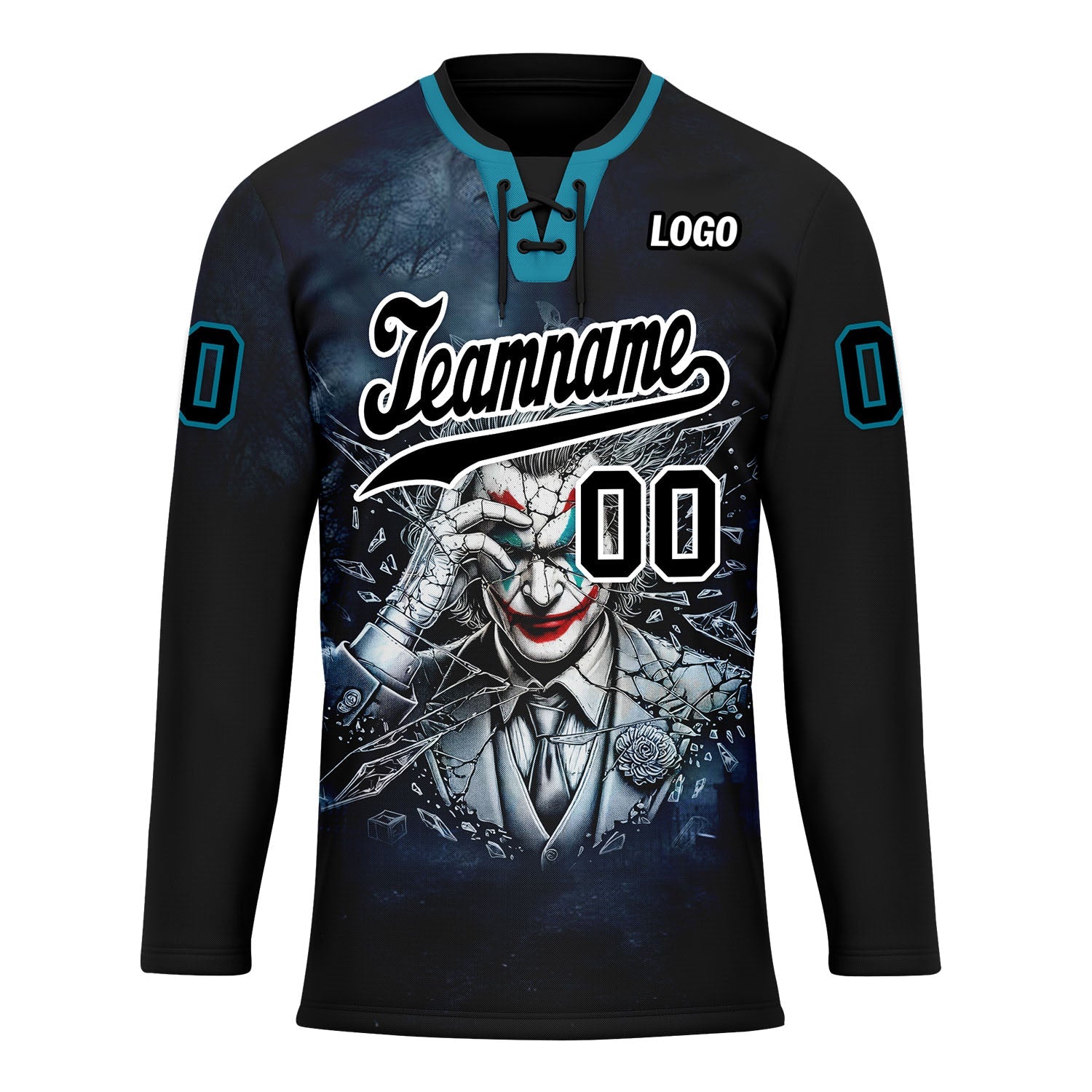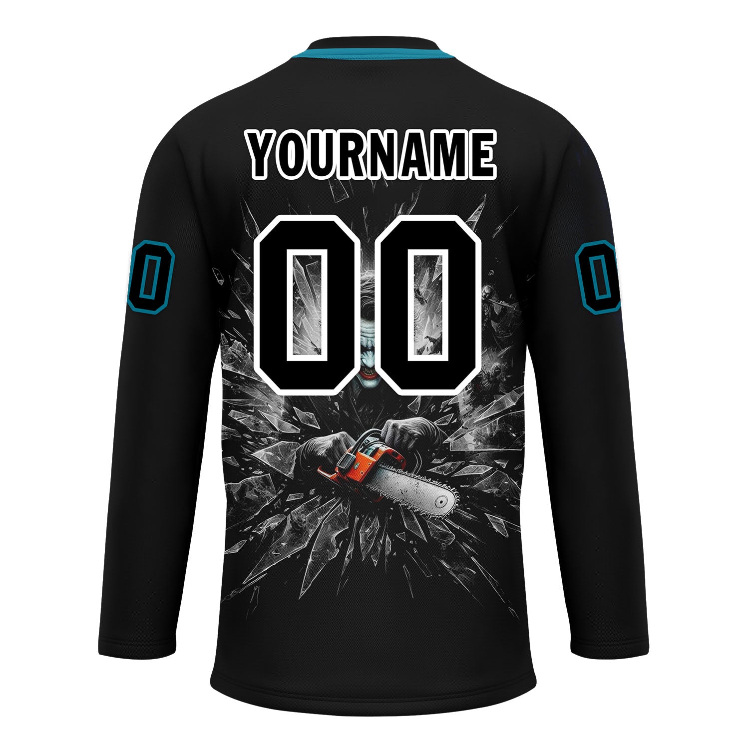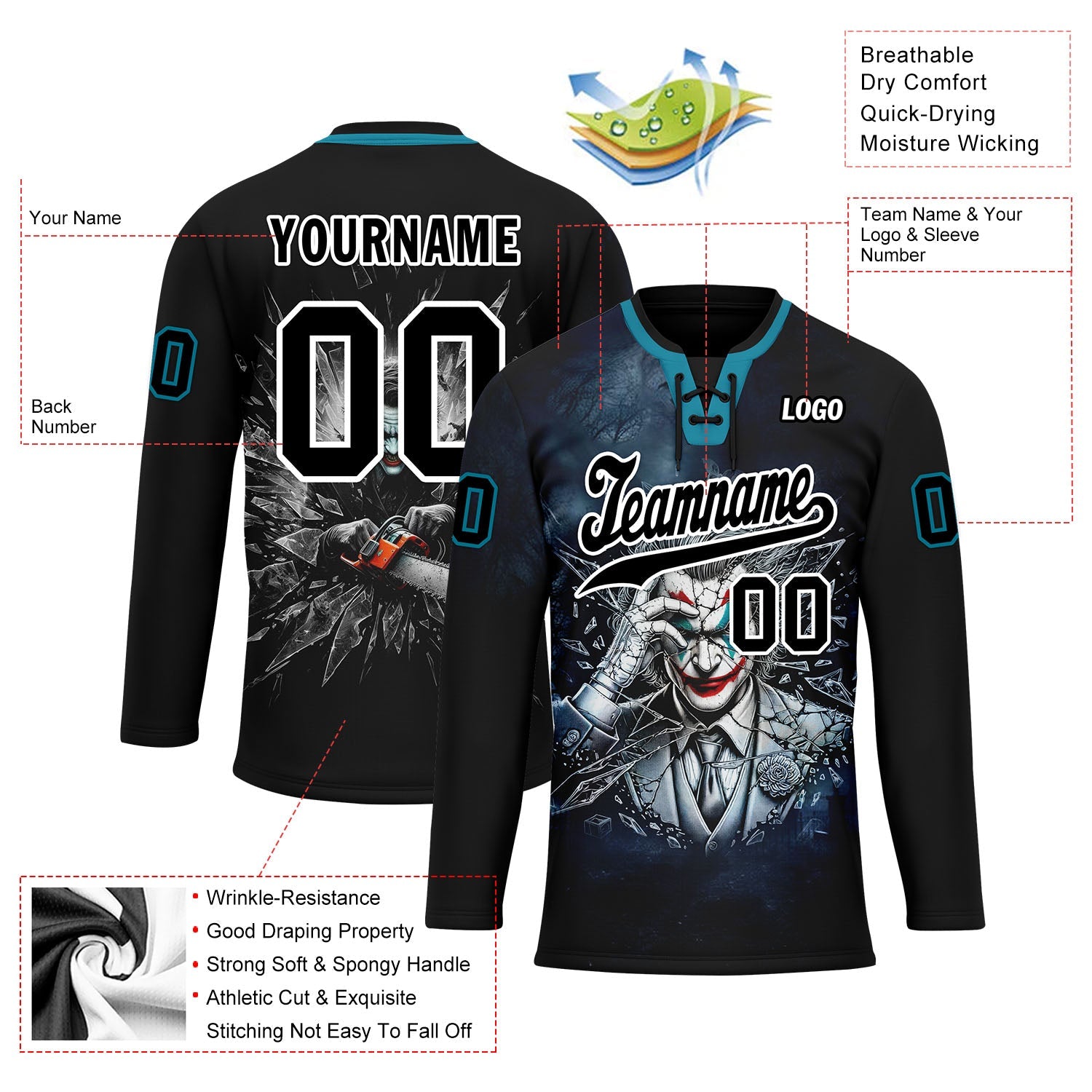 Custom Black White Teal Gothic Personalized Hockey Jersey HCKJ01-E0601-12