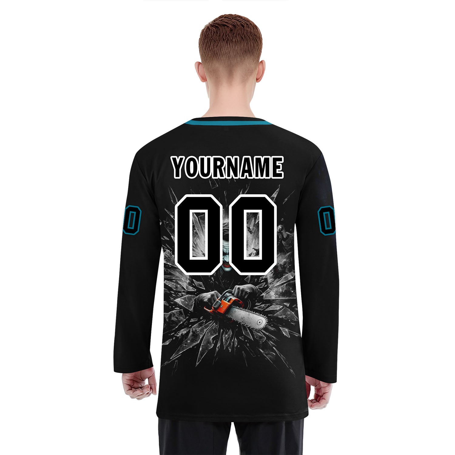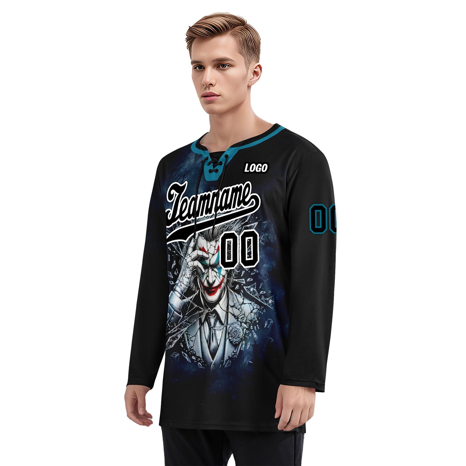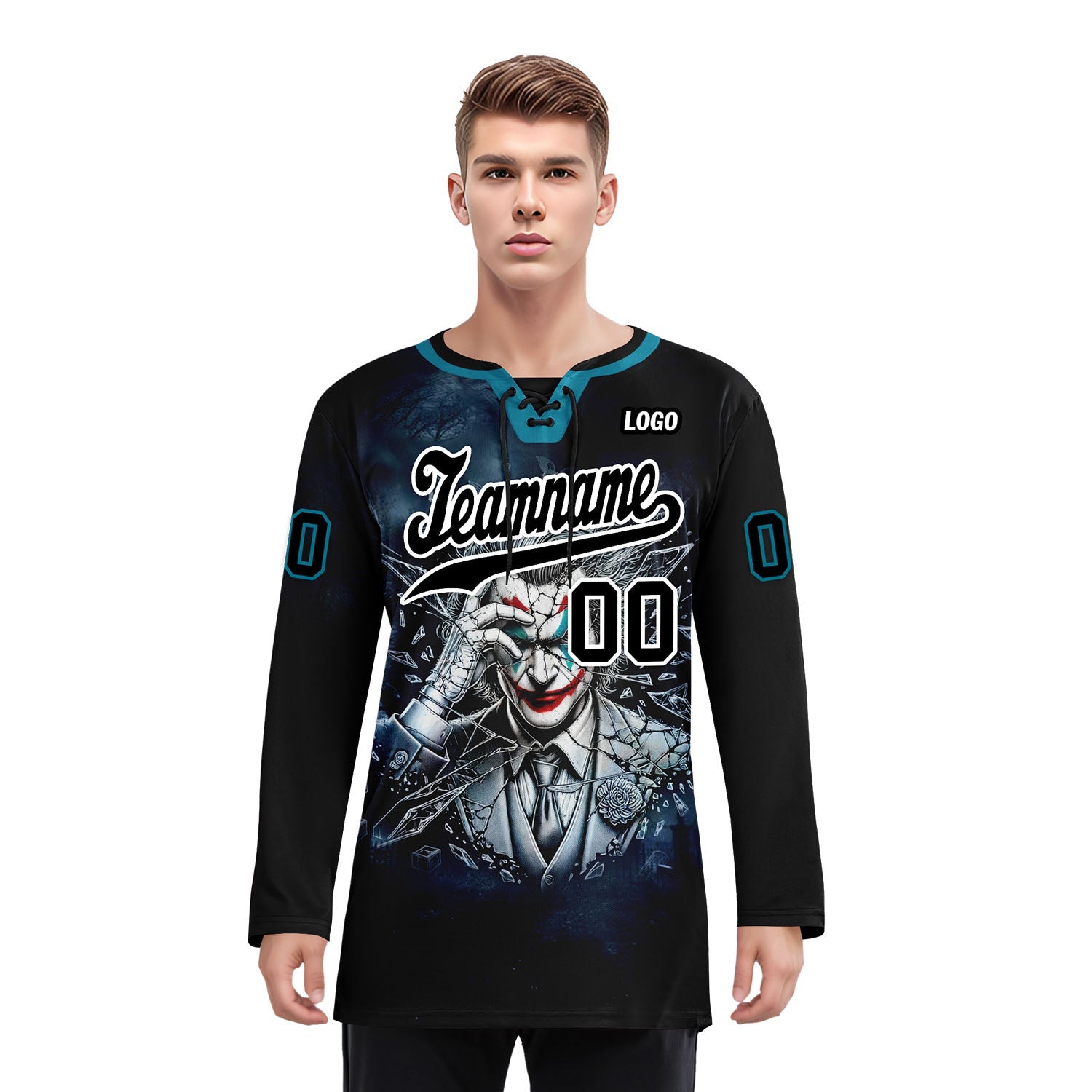Custom Black White Teal Gothic Personalized Hockey Jersey HCKJ01-E0601-12