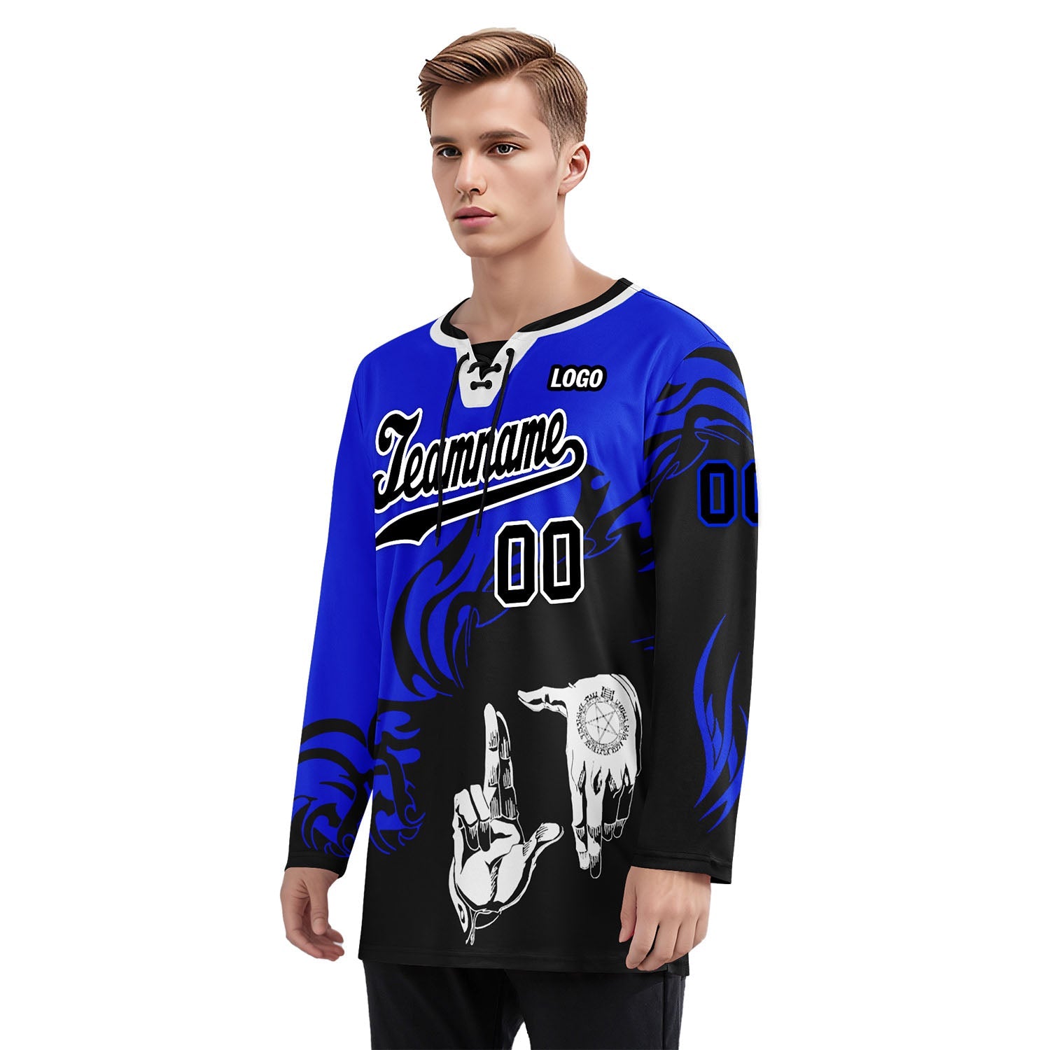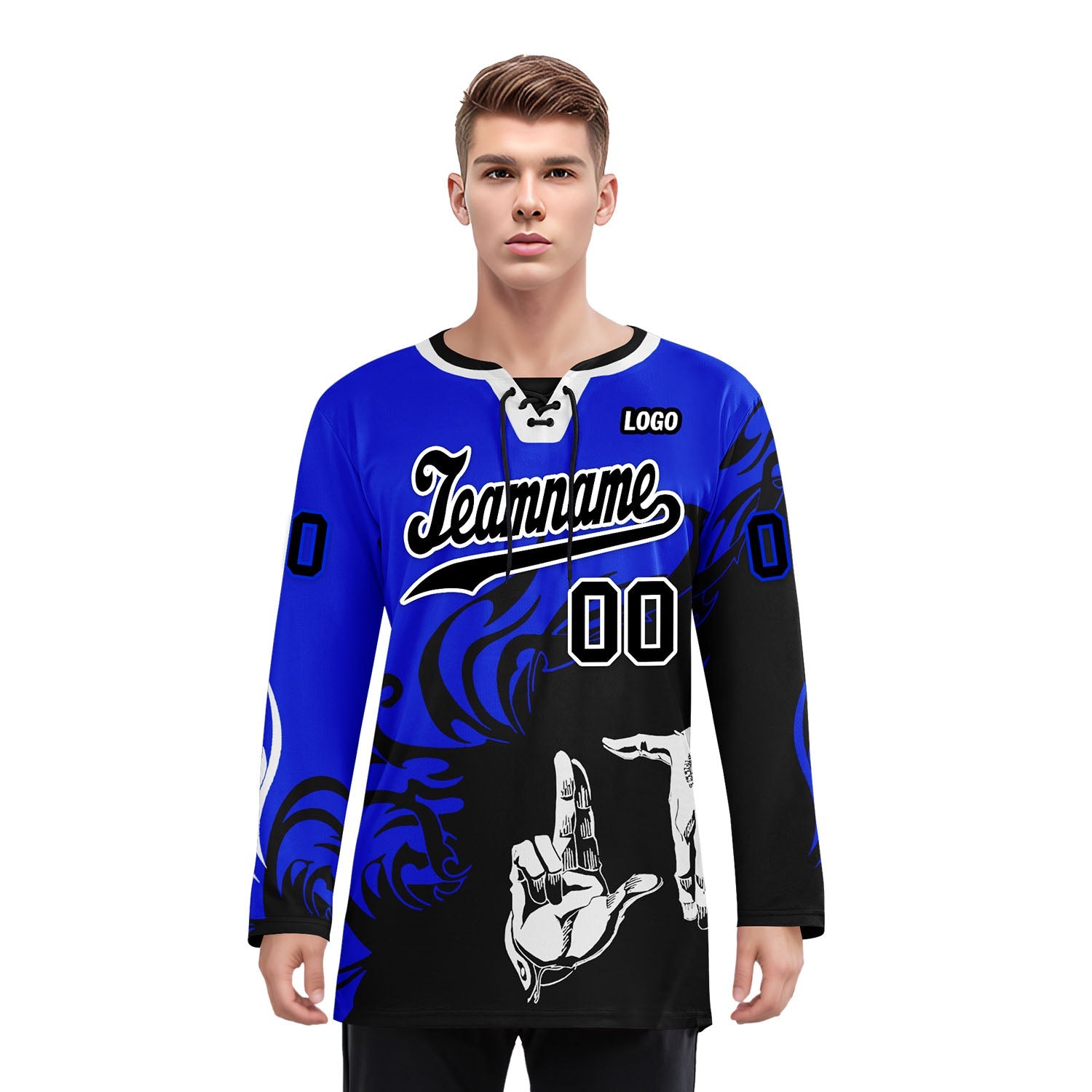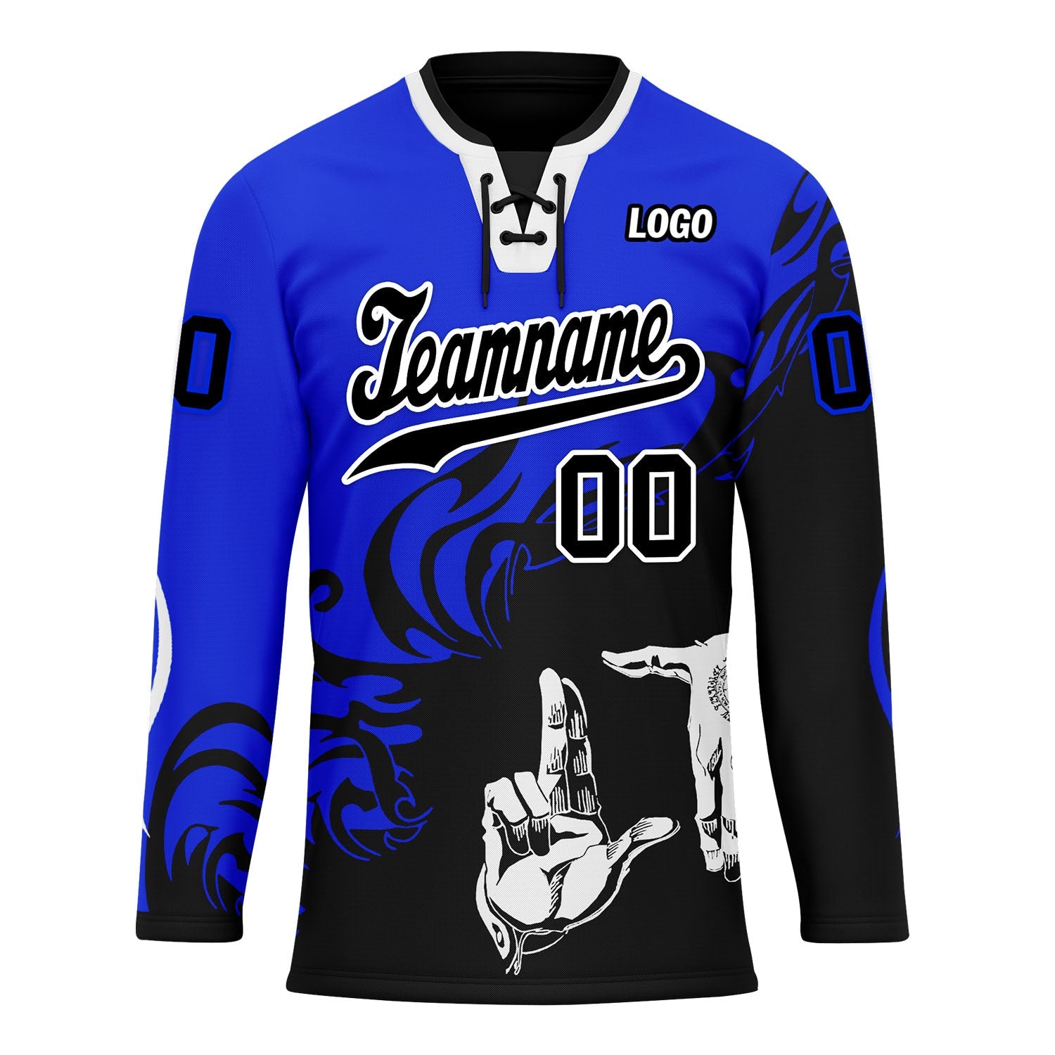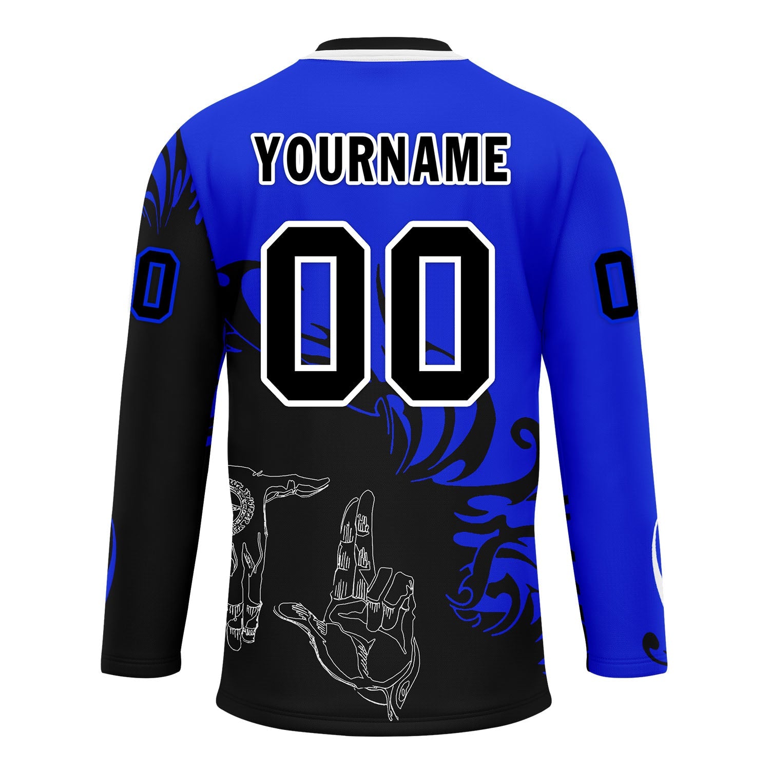Custom Blue Black White Gothic Personalized Hockey Jersey HCKJ01-E0601-11