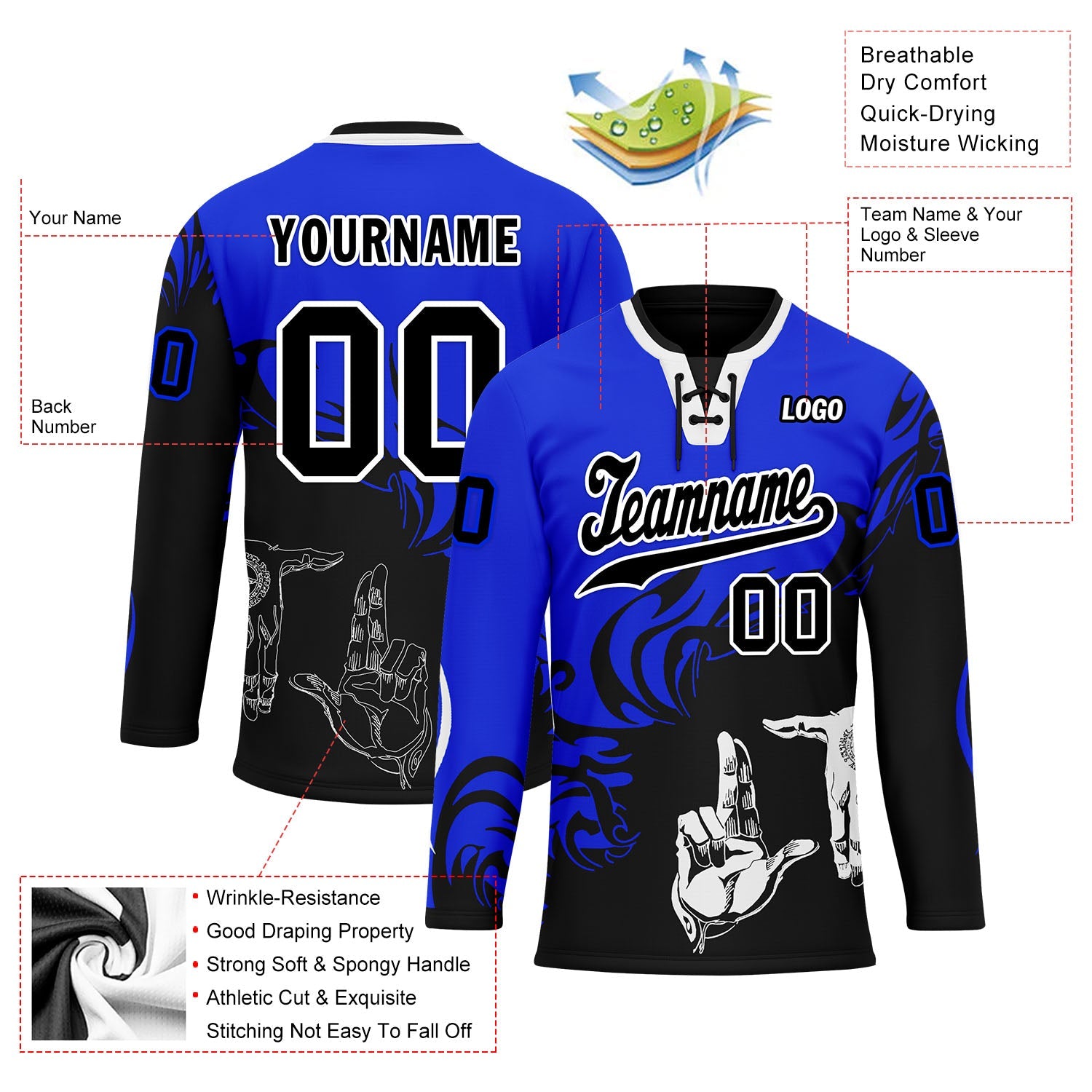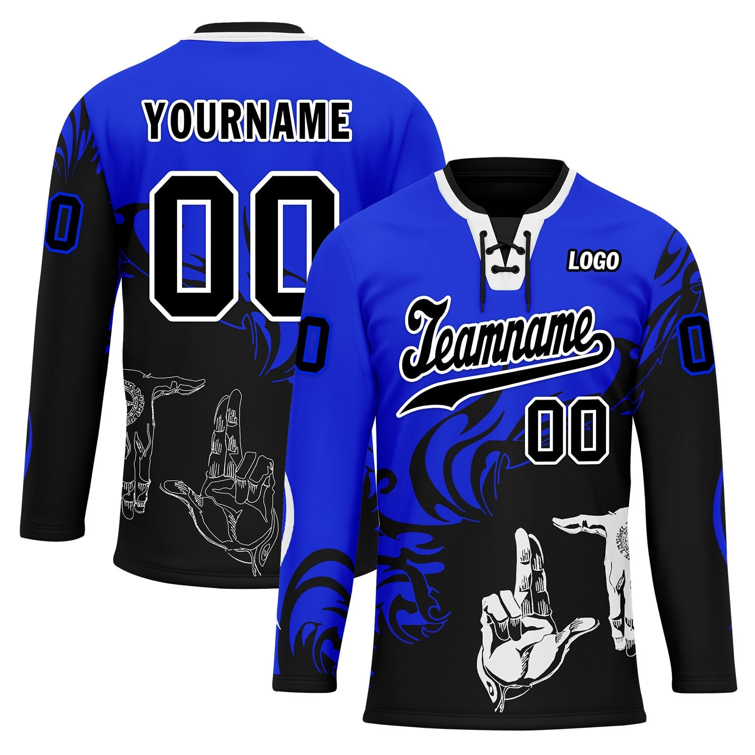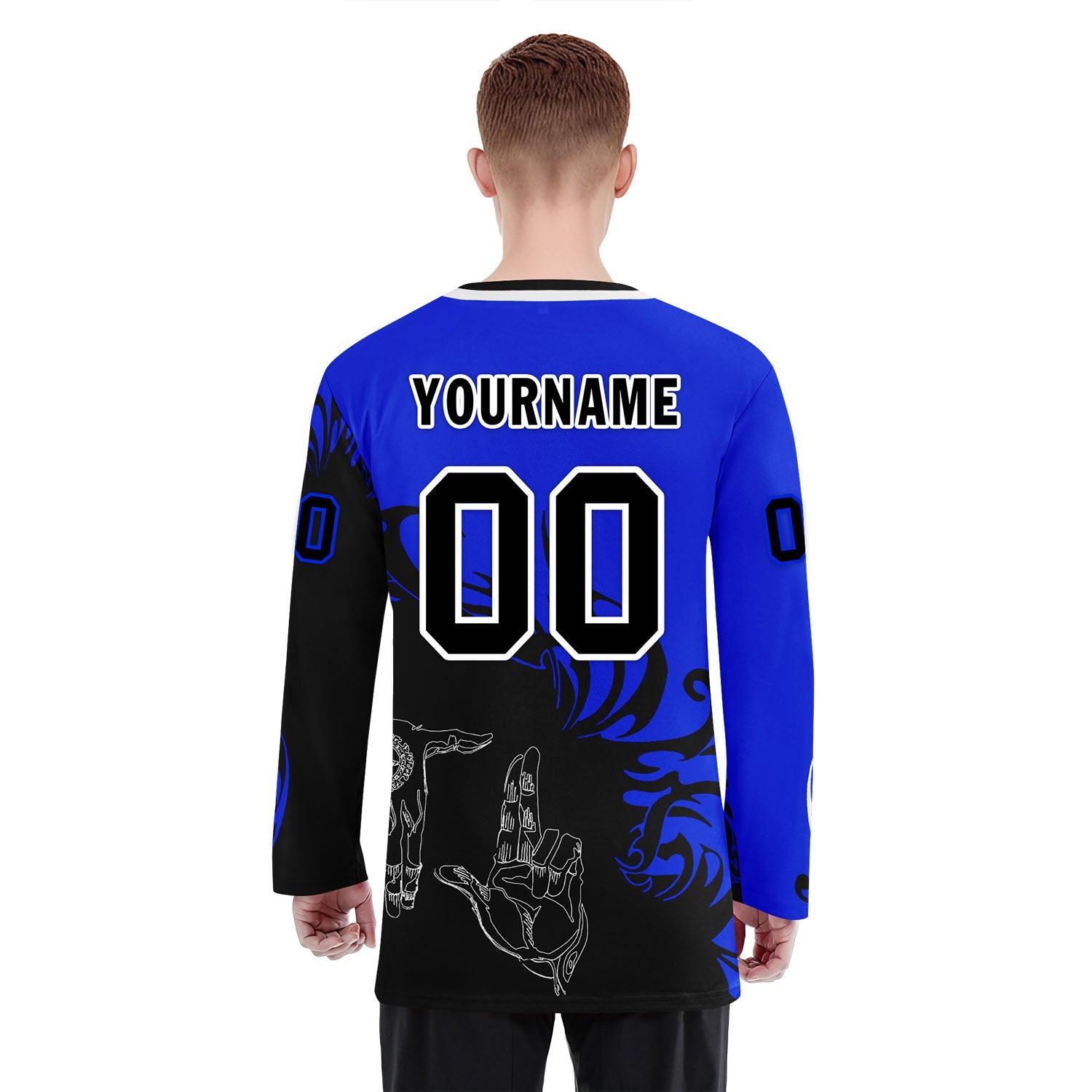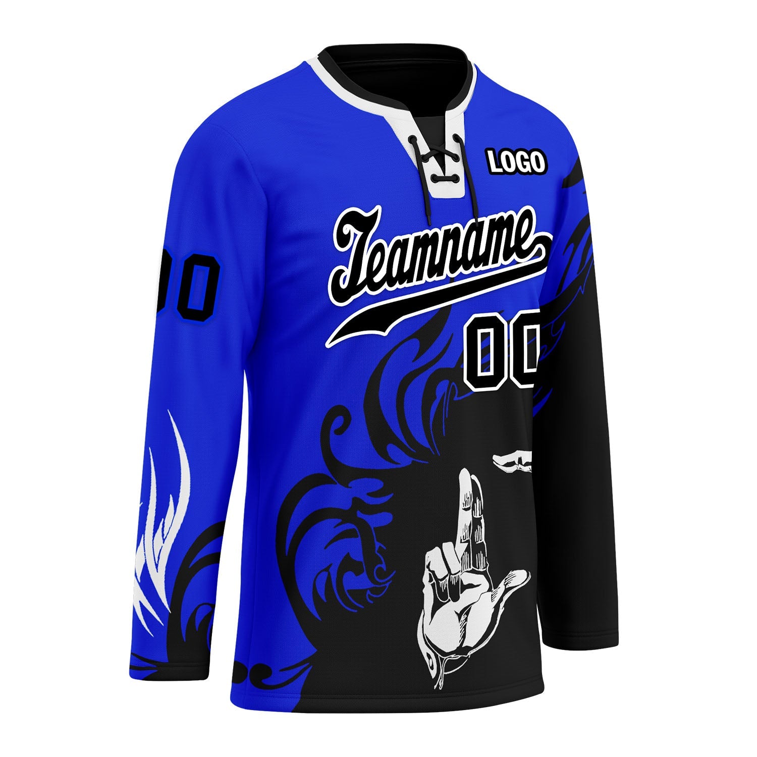 Custom Blue Black White Gothic Personalized Hockey Jersey HCKJ01-E0601-11
