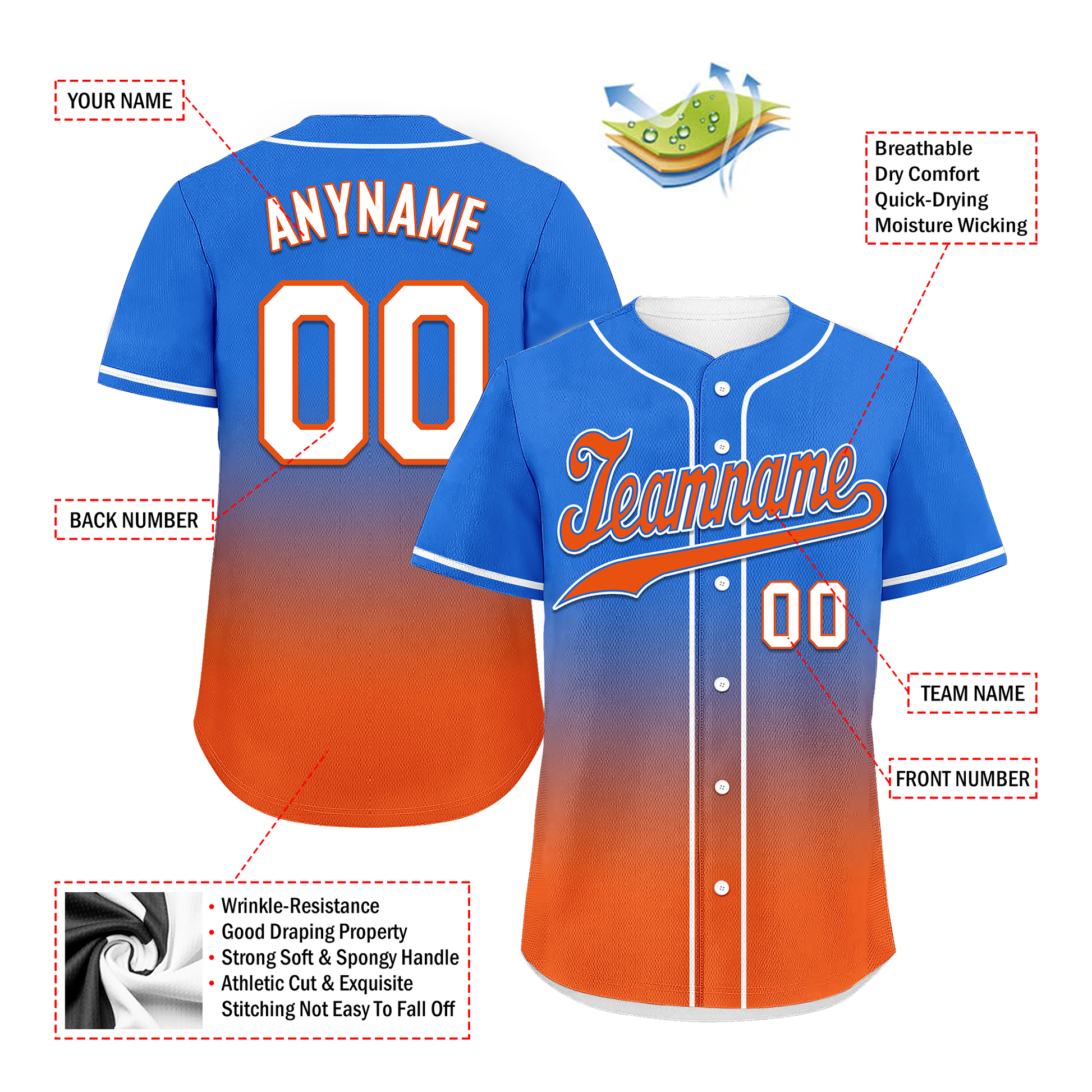 Corporate Gifts,Custom Blue Orange Fade Fashion Personalized Authentic Baseball Jersey BSBJ01-D0a70b7