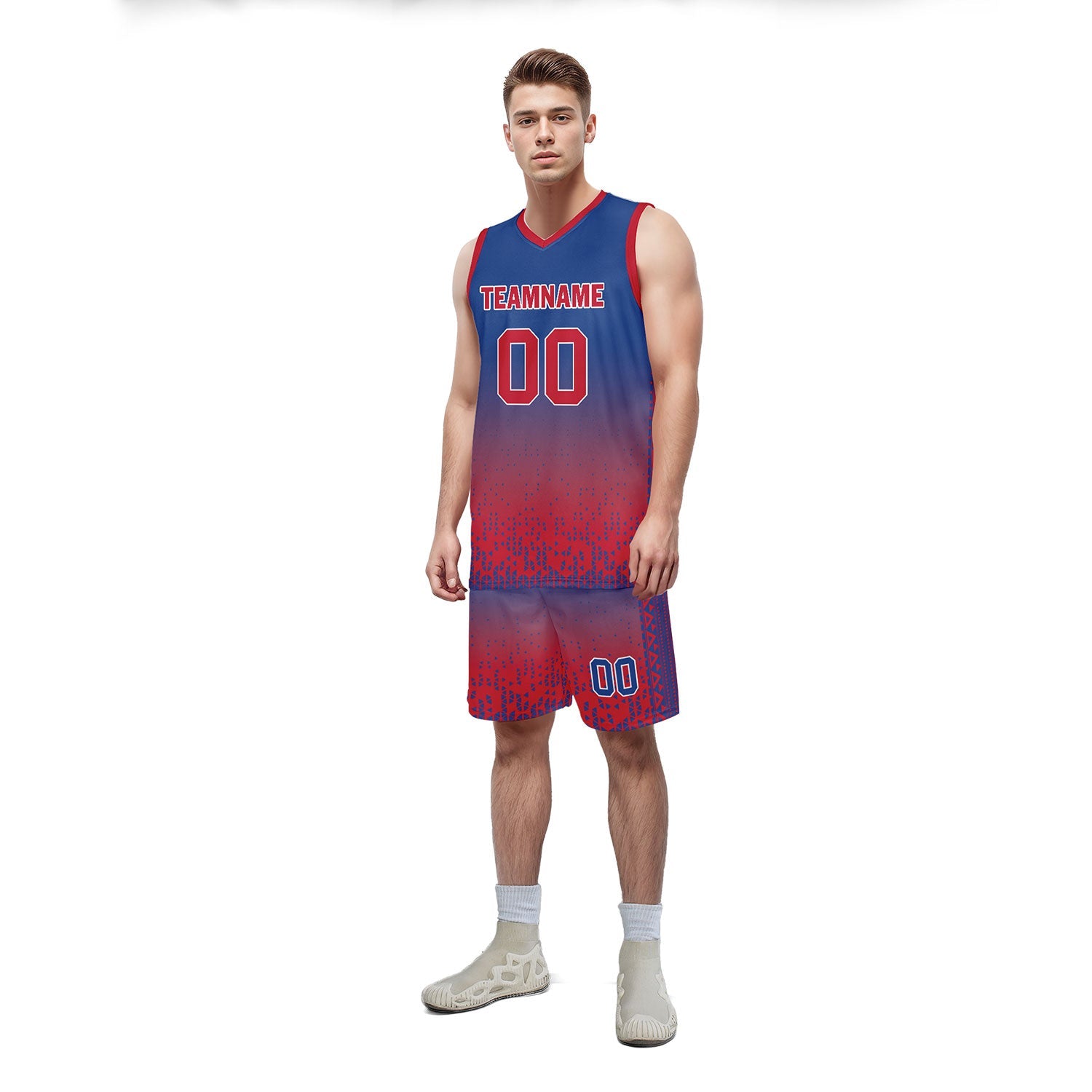 Client Gifts,Custom Blue Red Fade Fashion Sports Uniform Basketball Jersey BBJ01-D020102-1