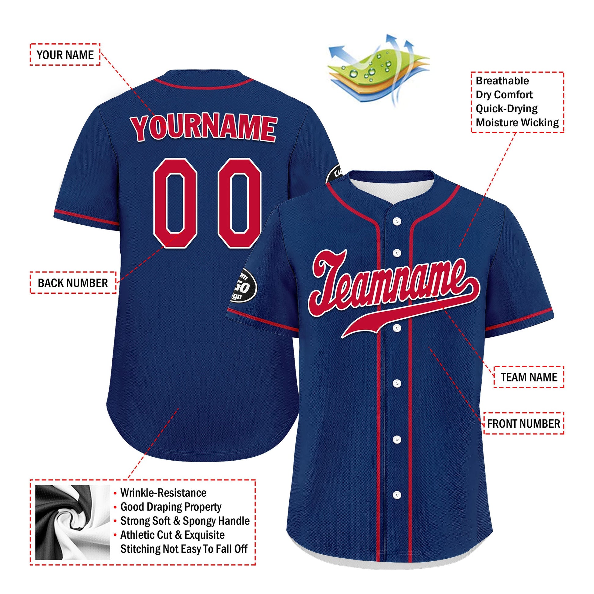 Each CCJ tailored baseball jersey is meticulously personalized with the following features: