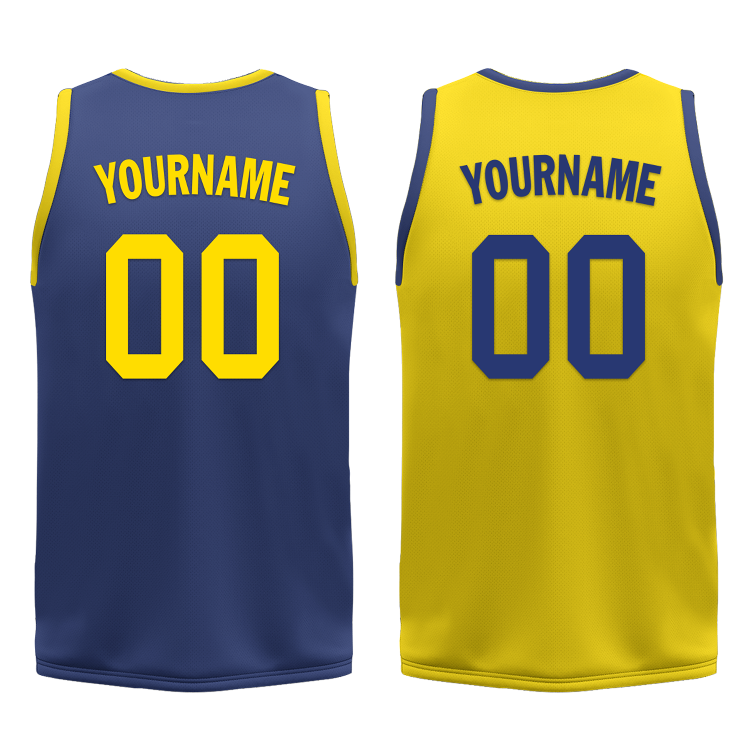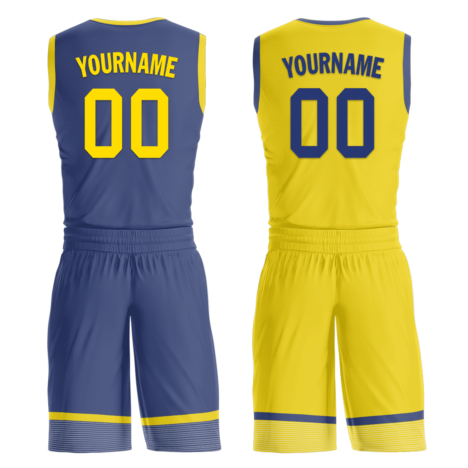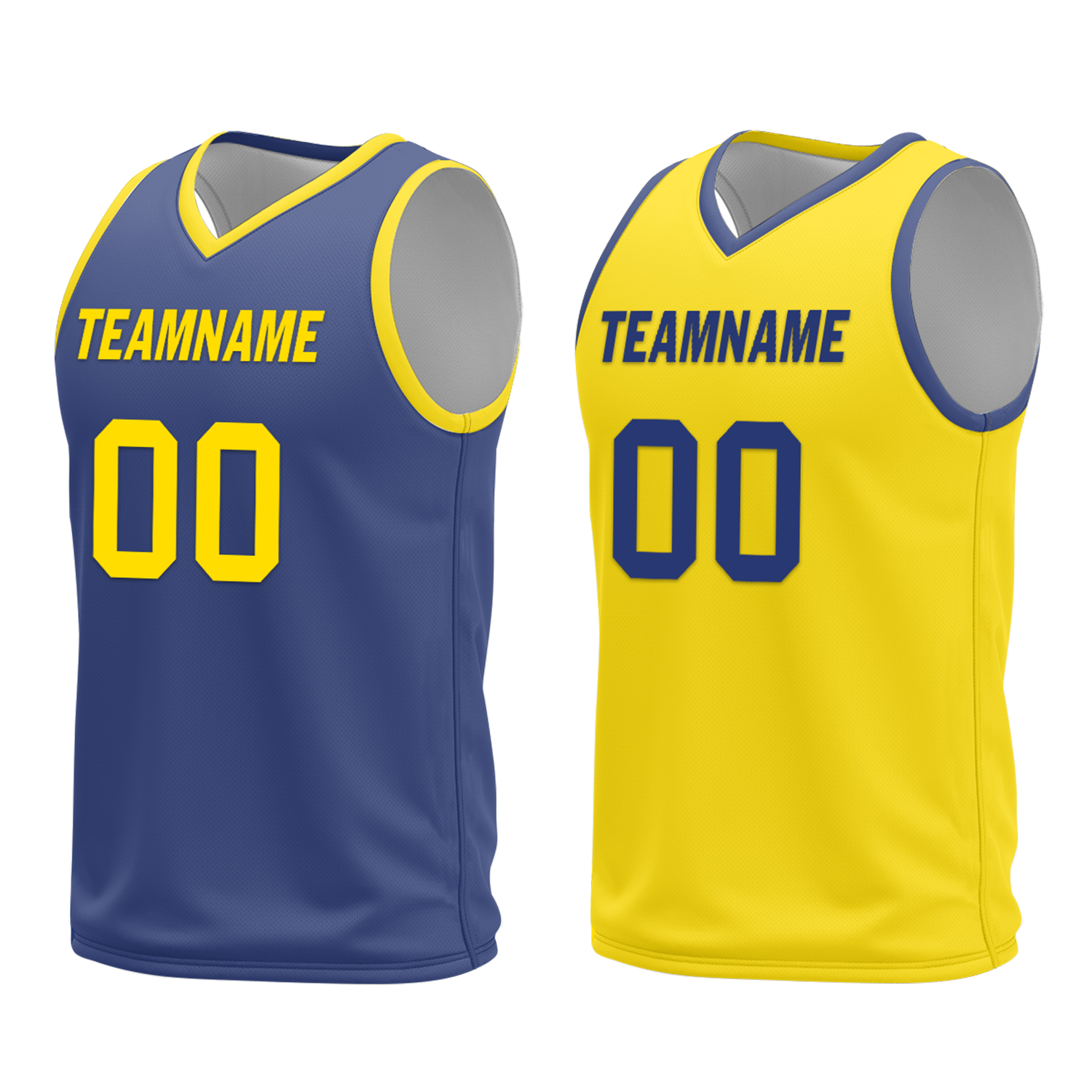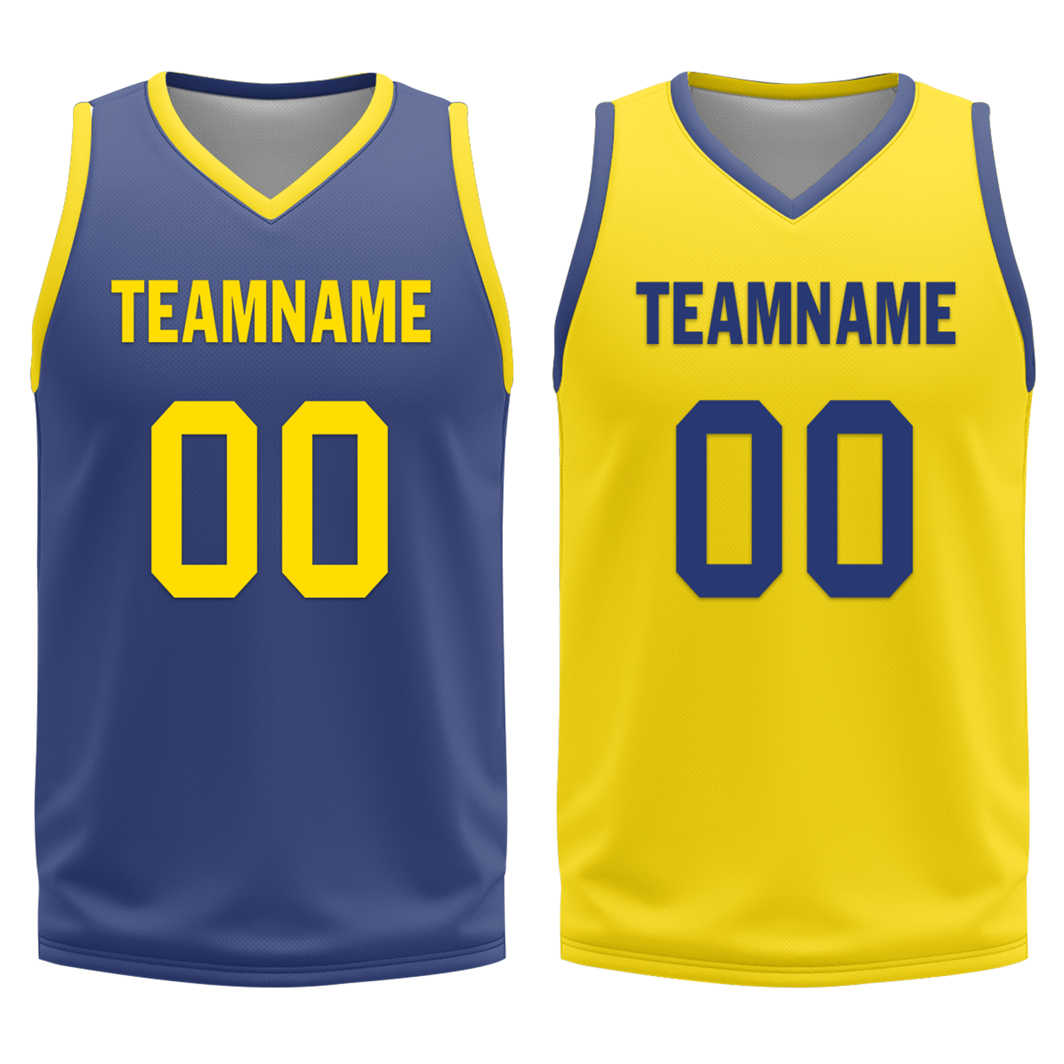 Gift Ideas,Custom Blue Yellow Classic Style Reversible Basketball Uniform Personalized BBJR-D017003