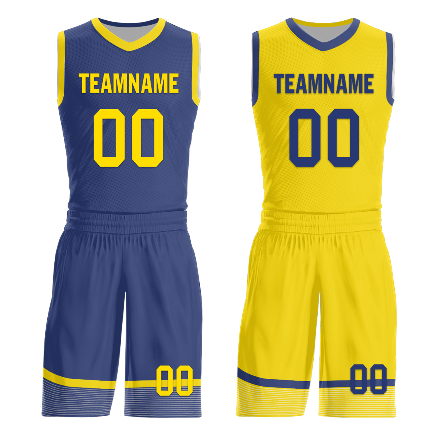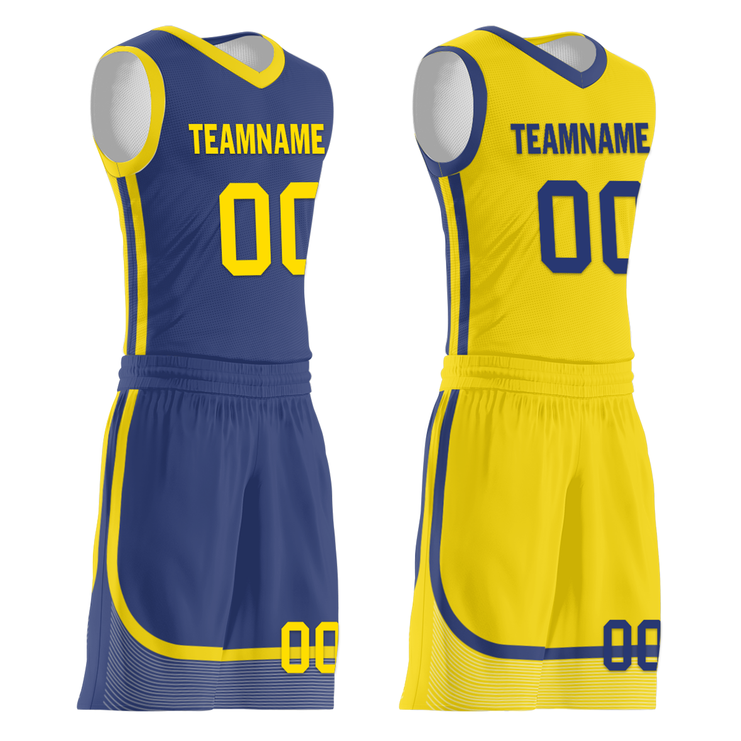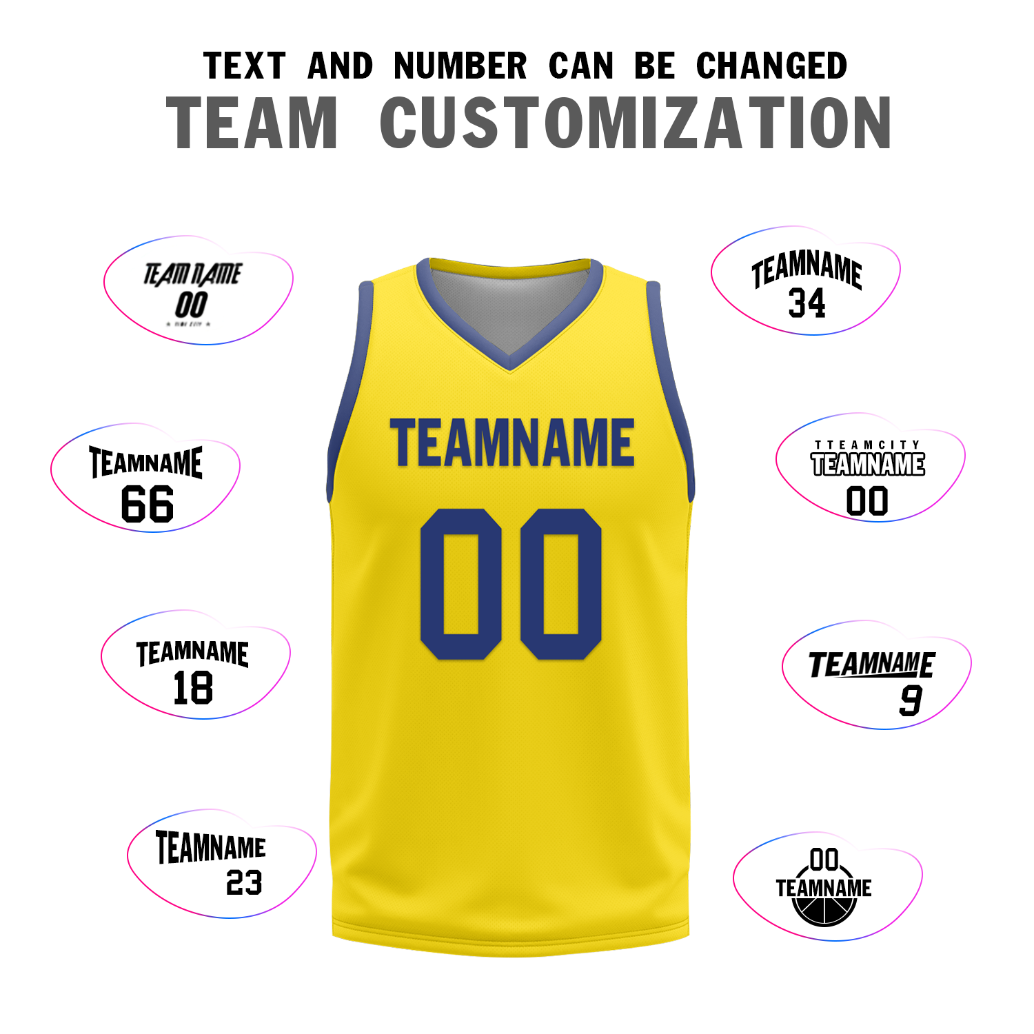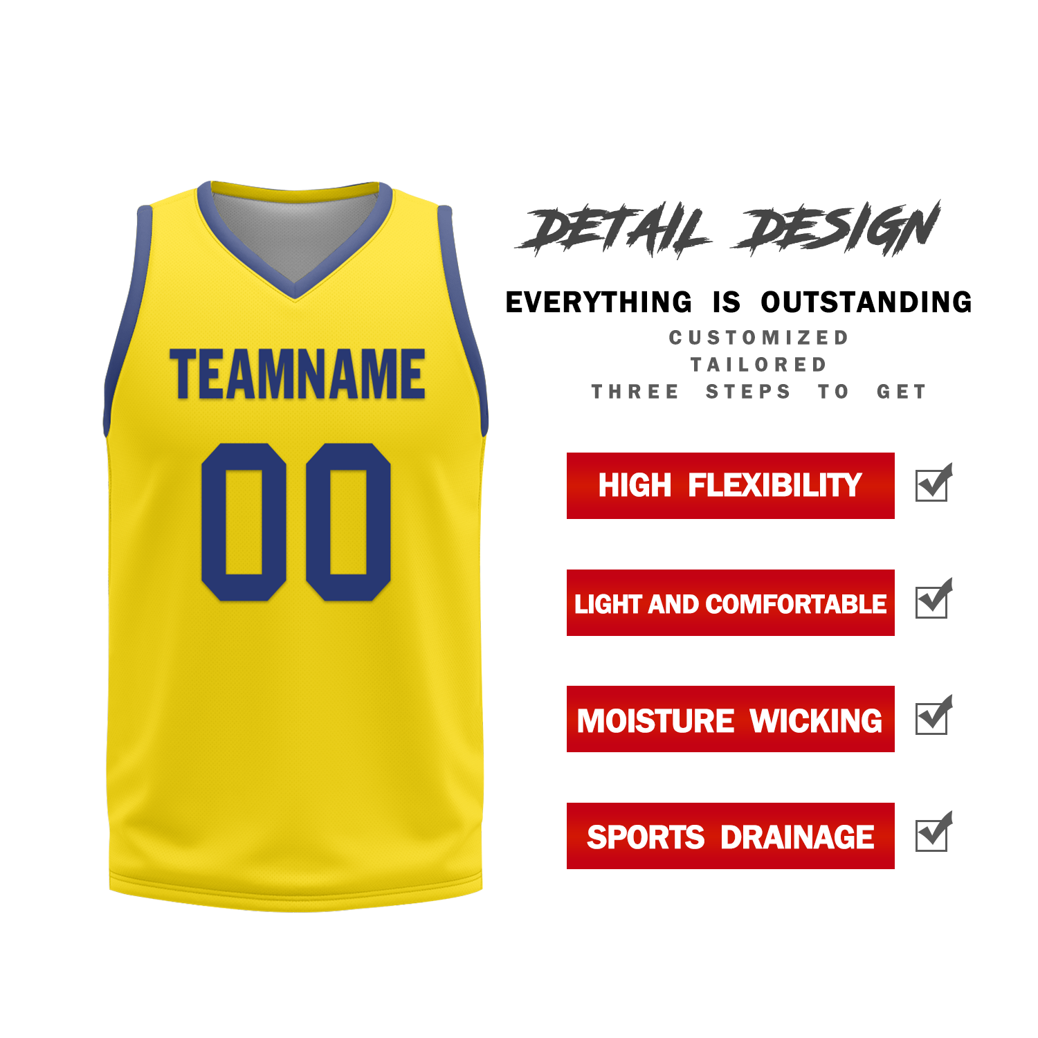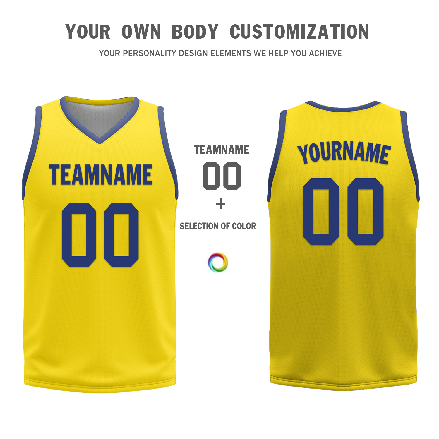 Gift Ideas,Custom Blue Yellow Classic Style Reversible Basketball Uniform Personalized BBJR-D017003