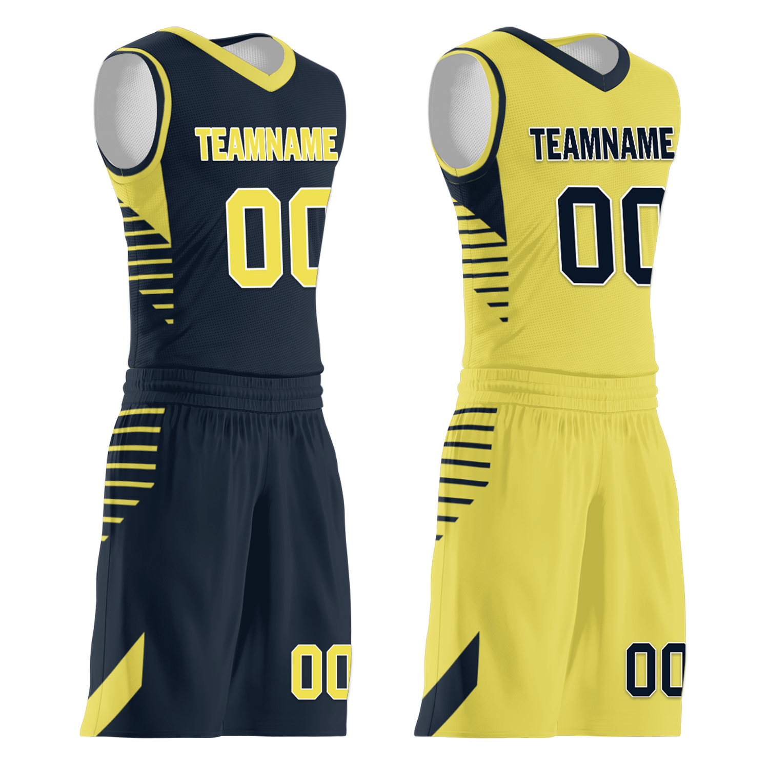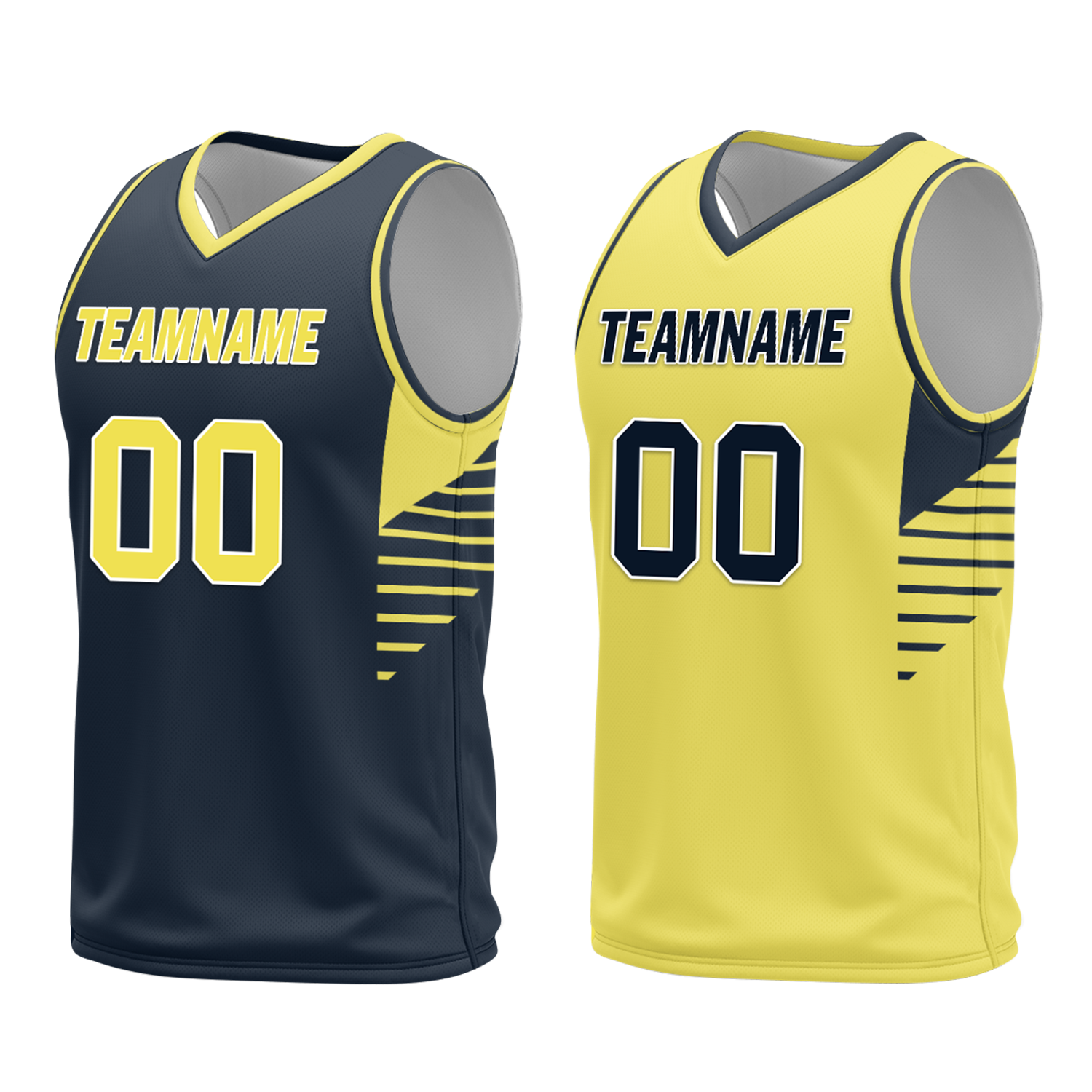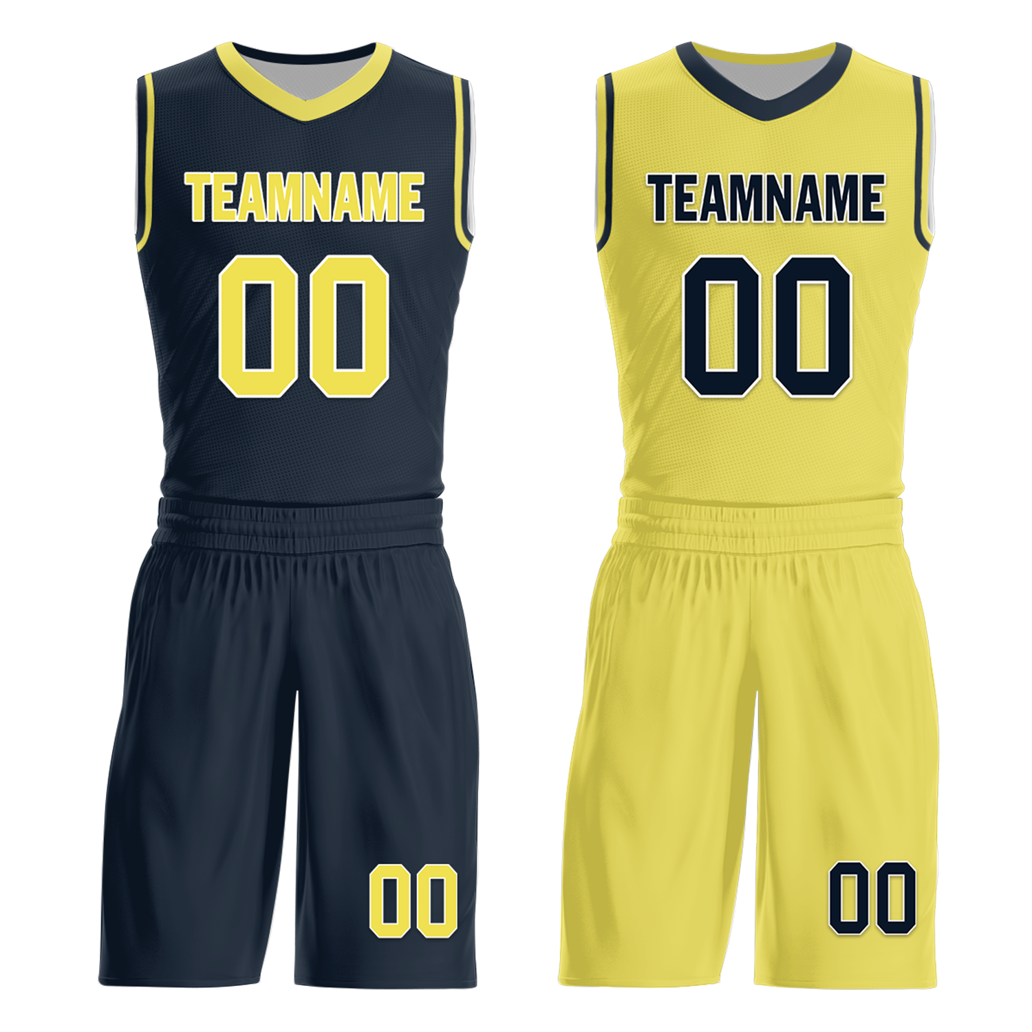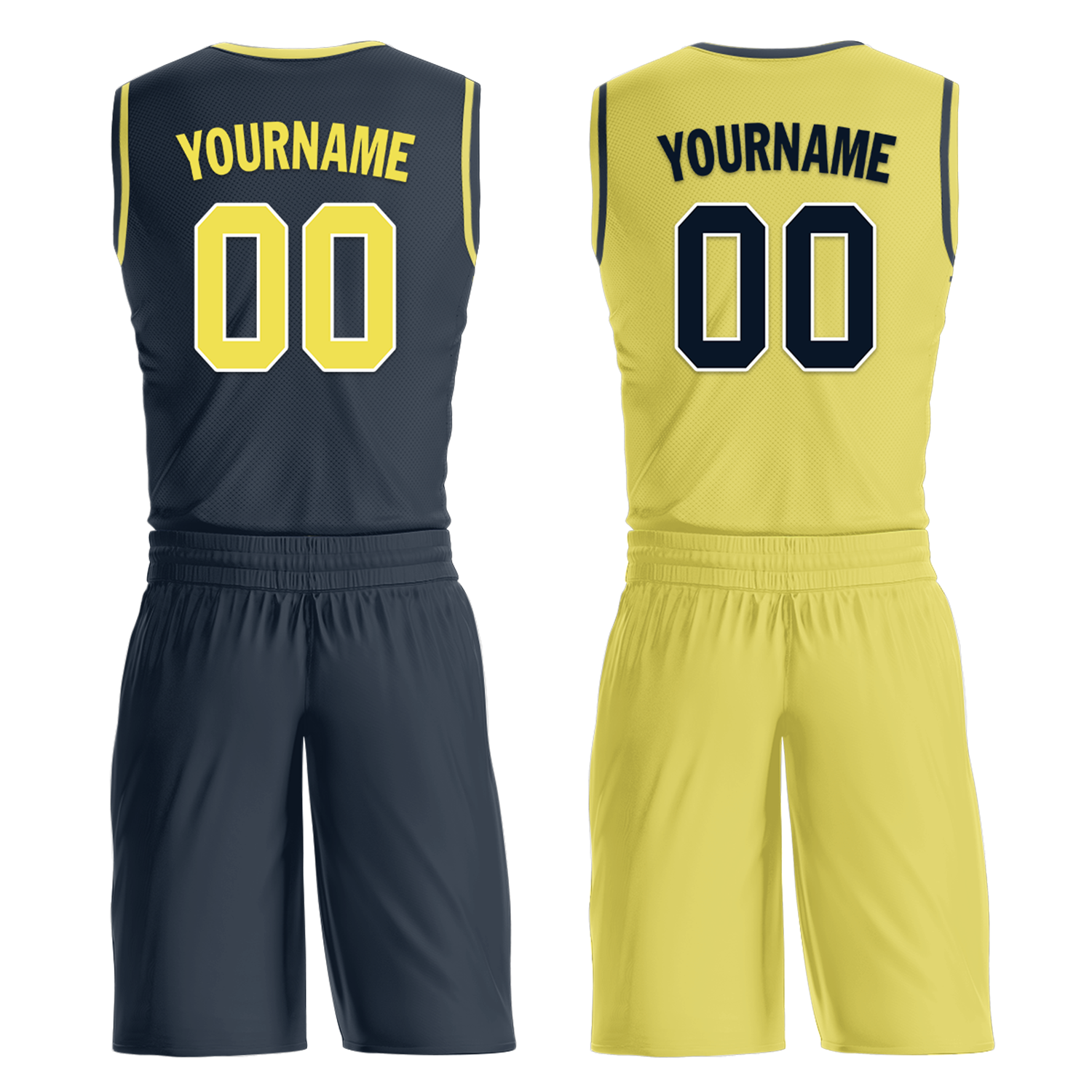 Corporate Gifts,Custom Blue Yellow Classic Style Reversible Basketball Uniform Personalized BBJR-D017059
