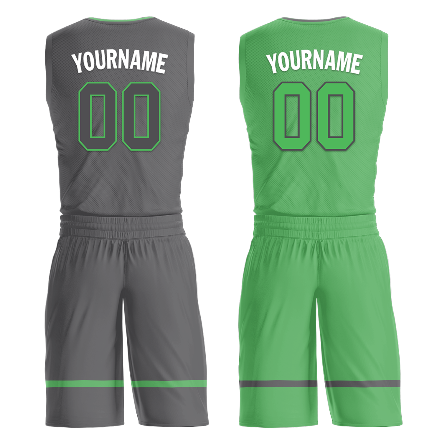 Corporate Gifts,Custom Gray Green Classic Style Reversible Basketball Uniform Personalized BBJR-D017046