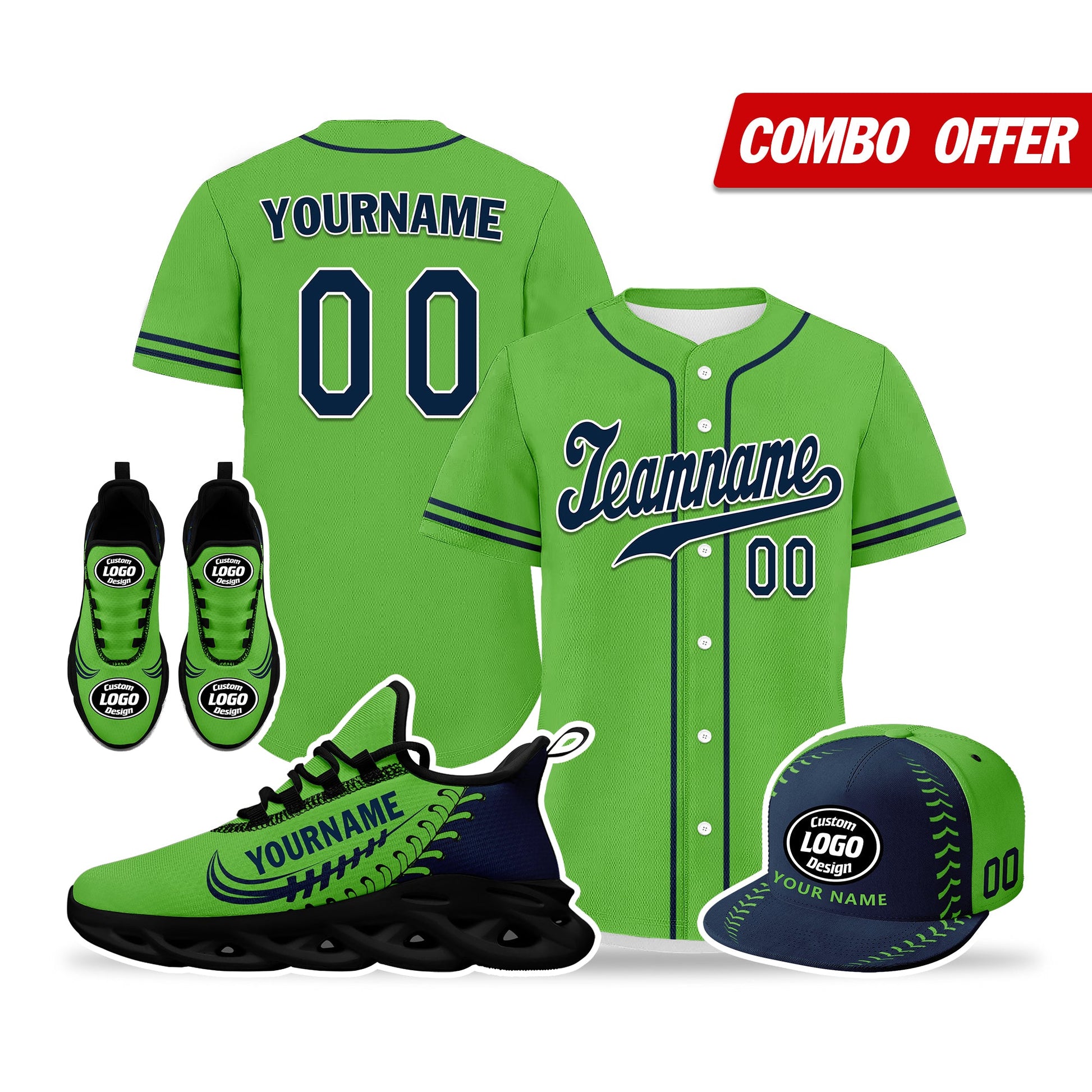 Elevate your fashion game with this exclusive combo deal featuring a custom hat, a pair of custom sneakers, and a custom jersey!