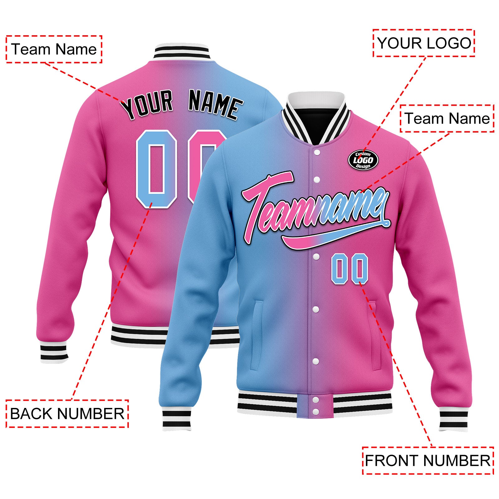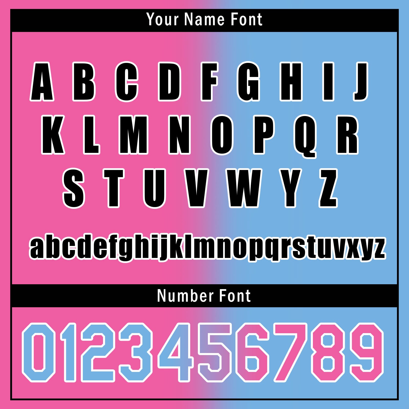 The jersey: Choose your favorite colors, fonts, and styles to create a truly one-of-a-kind jersey. Perfect for showing off your team spirit or creating a unique look for yourself.