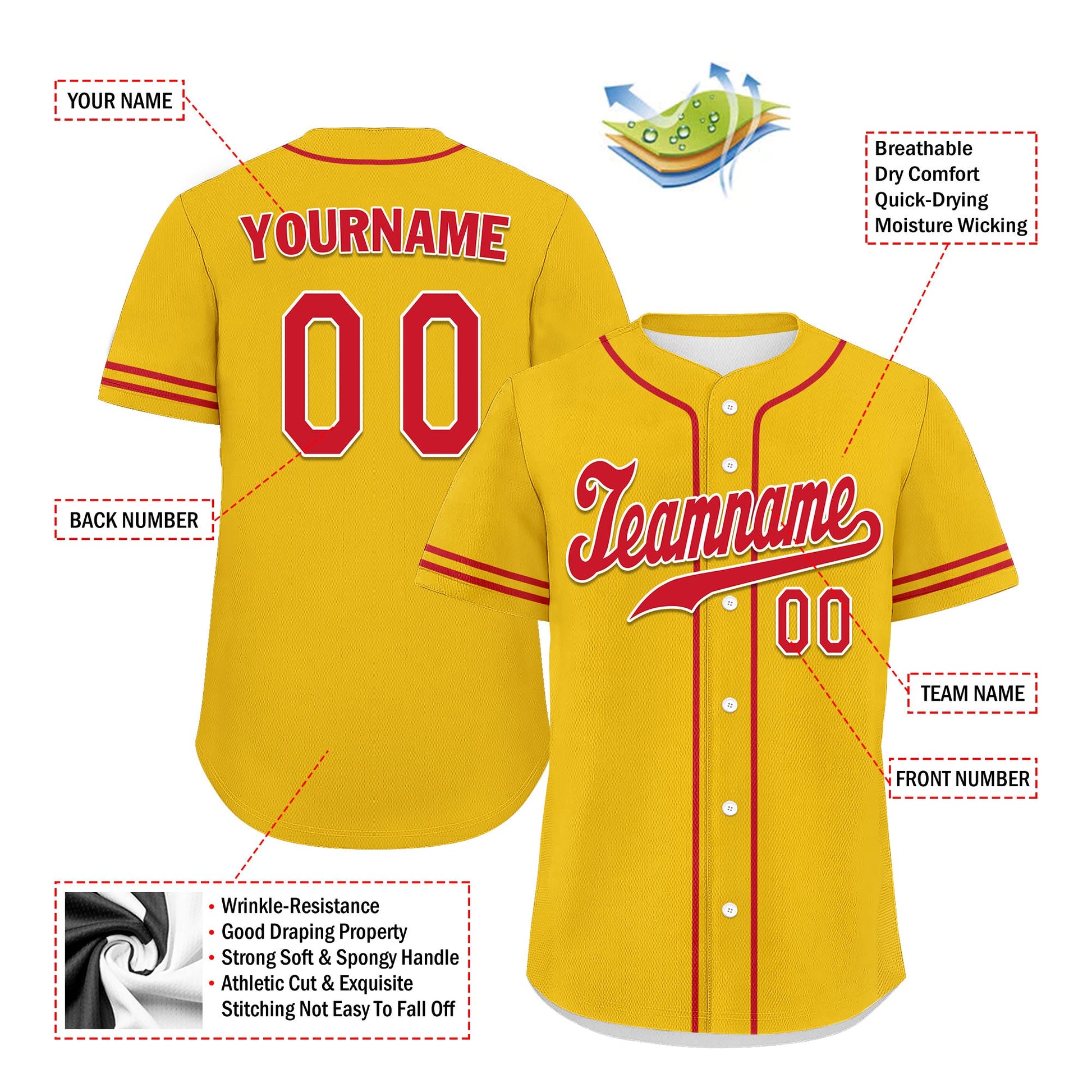 Each CCJ tailored baseball jersey is meticulously personalized with the following features: