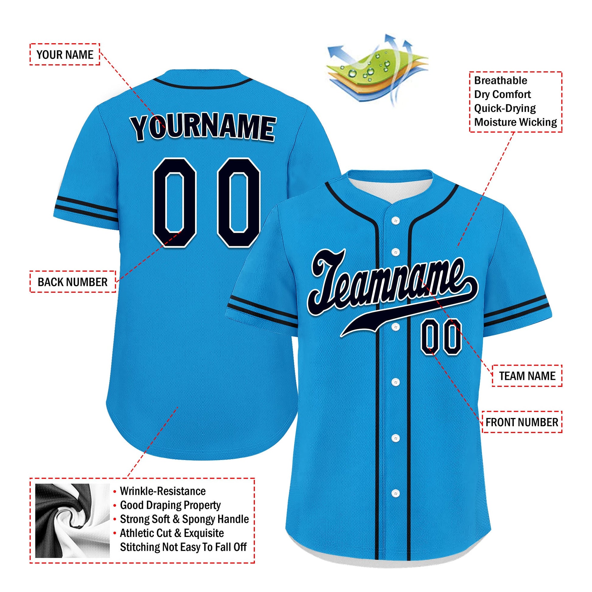 Each CCJ tailored baseball jersey is meticulously personalized with the following features: