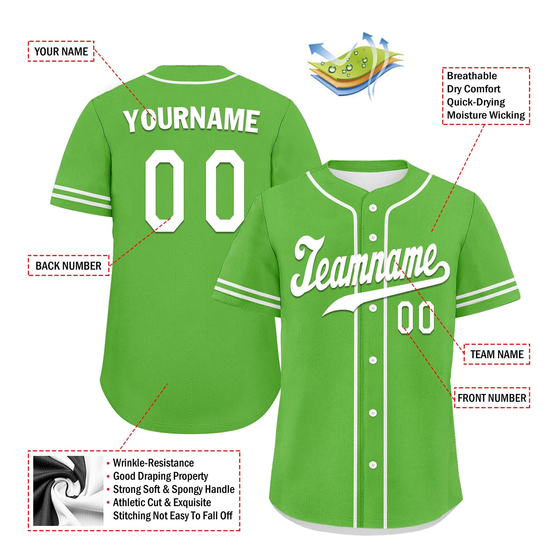 Each CCJ tailored baseball jersey is meticulously personalized with the following features: