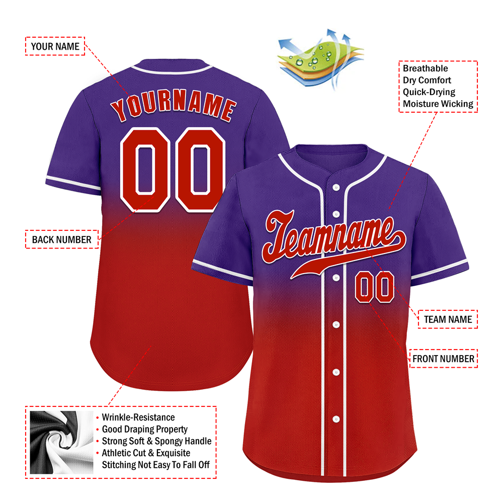 Corporate Gifts,Custom Purple Red Fade Fashion Red Authentic Baseball Jersey
