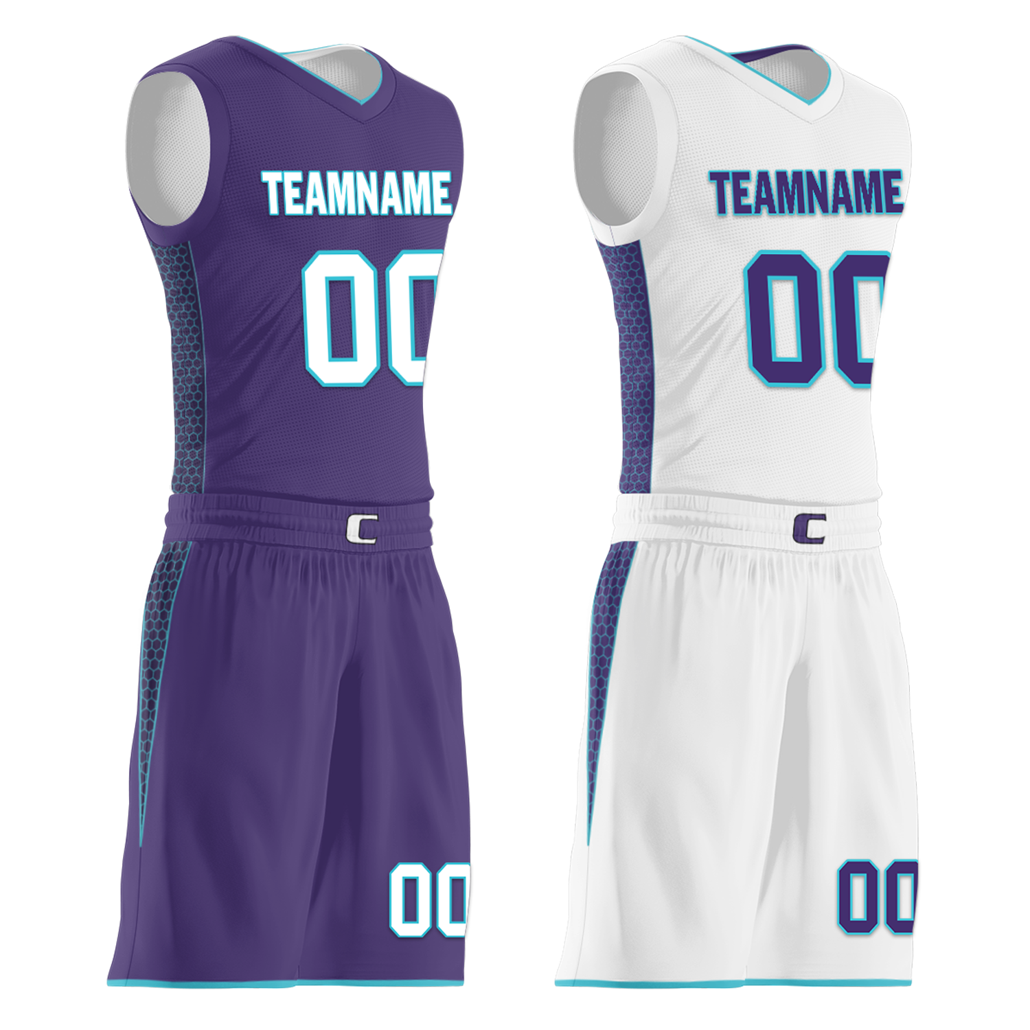 Gift Ideas,Custom Purple White Classic Style Reversible Basketball Uniform Personalized BBJR-D017014