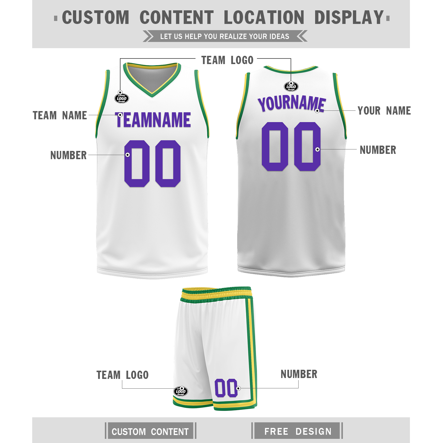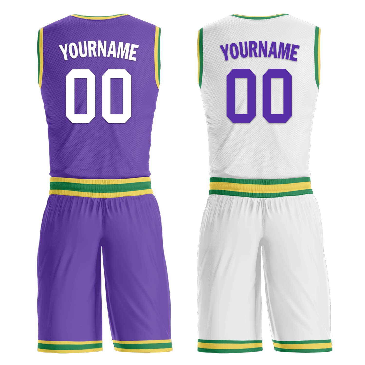 Corporate Gifts,Custom Purple White Classic Style Reversible Basketball Uniform Personalized BBJR-D017047
