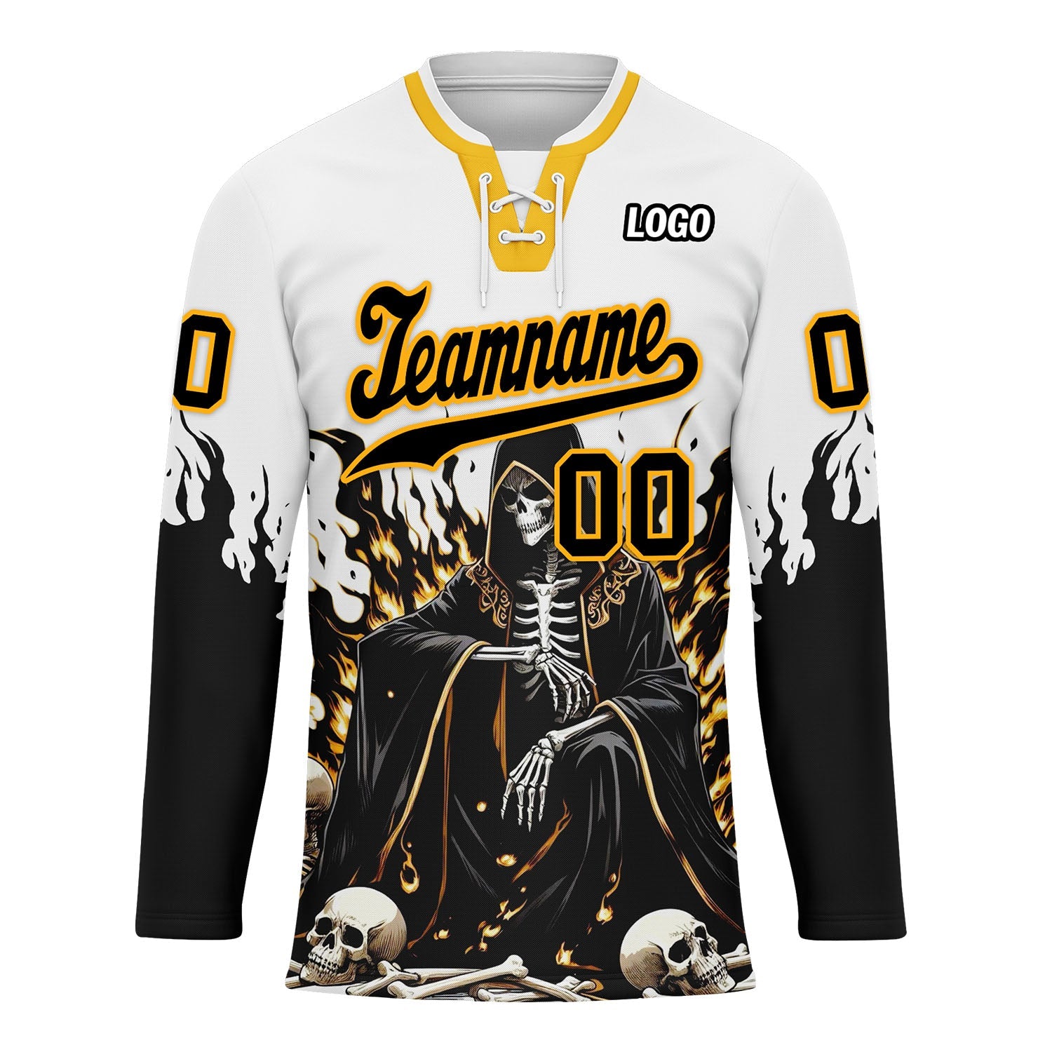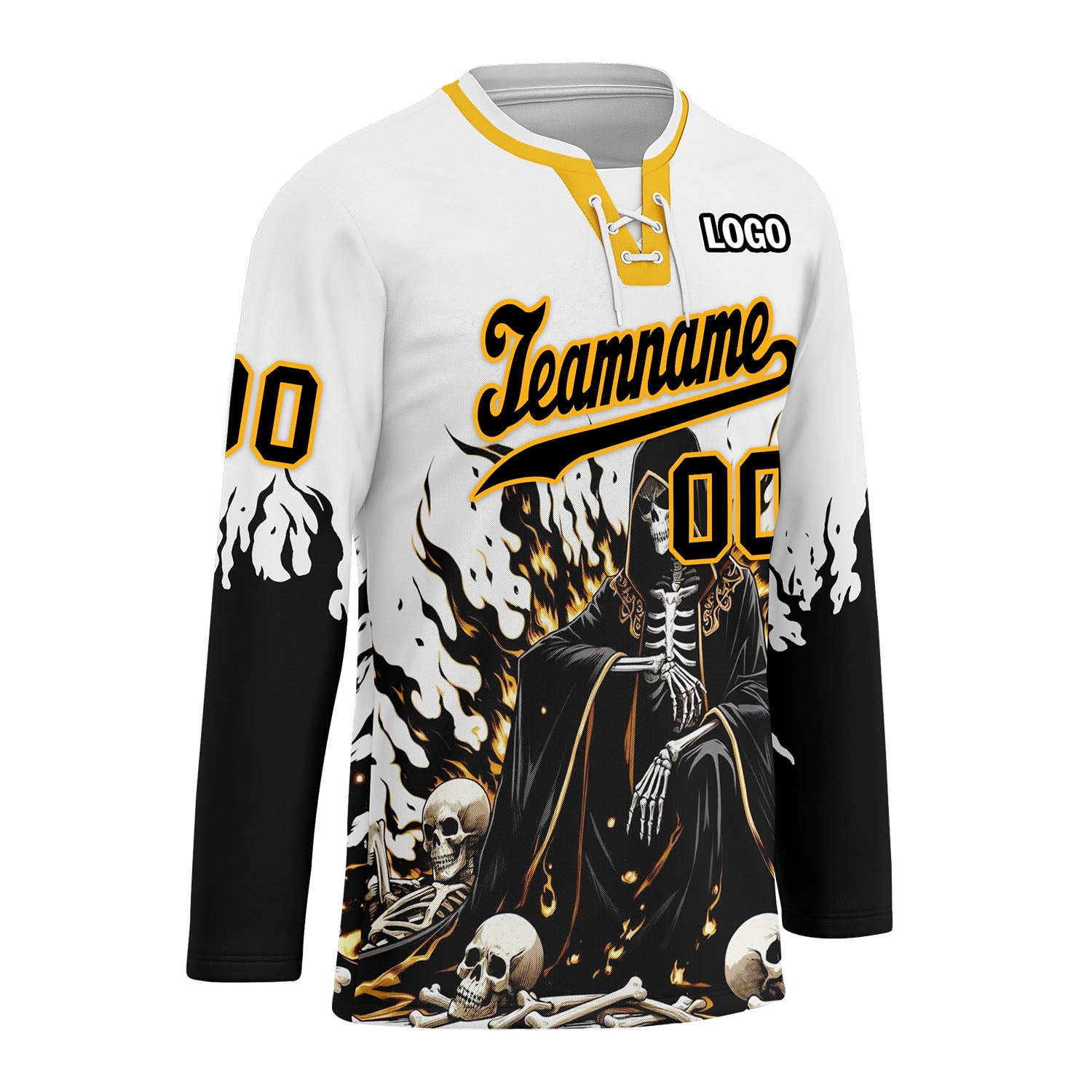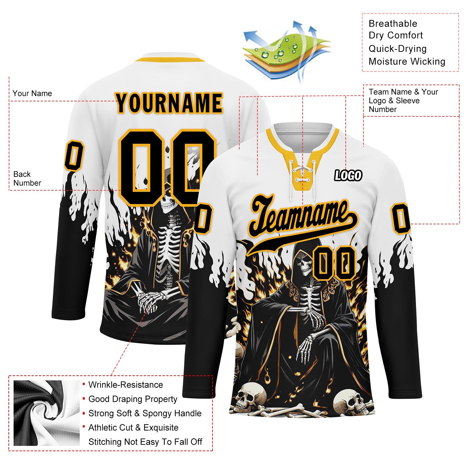 Custom White Black Gold Gothic Personalized Hockey Jersey HCKJ01-E0601-13