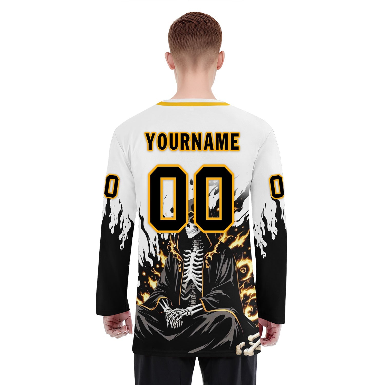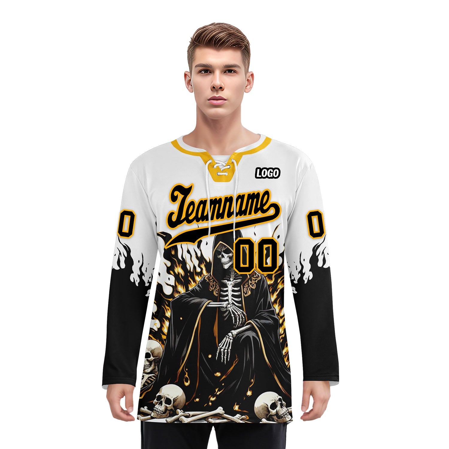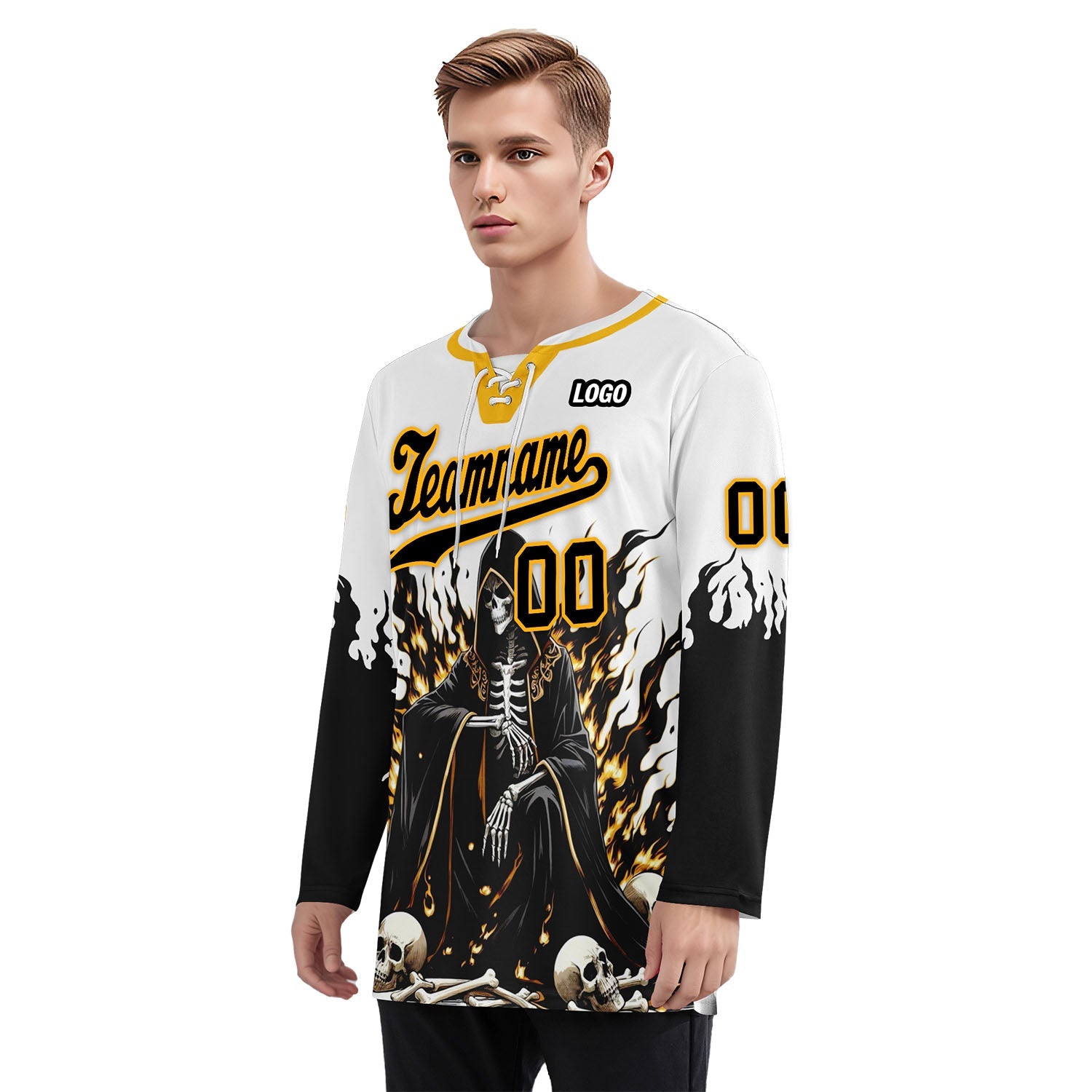 Custom White Black Gold Gothic Personalized Hockey Jersey HCKJ01-E0601-13