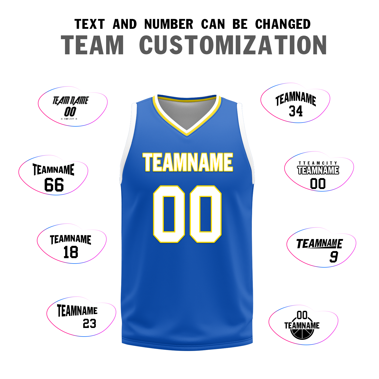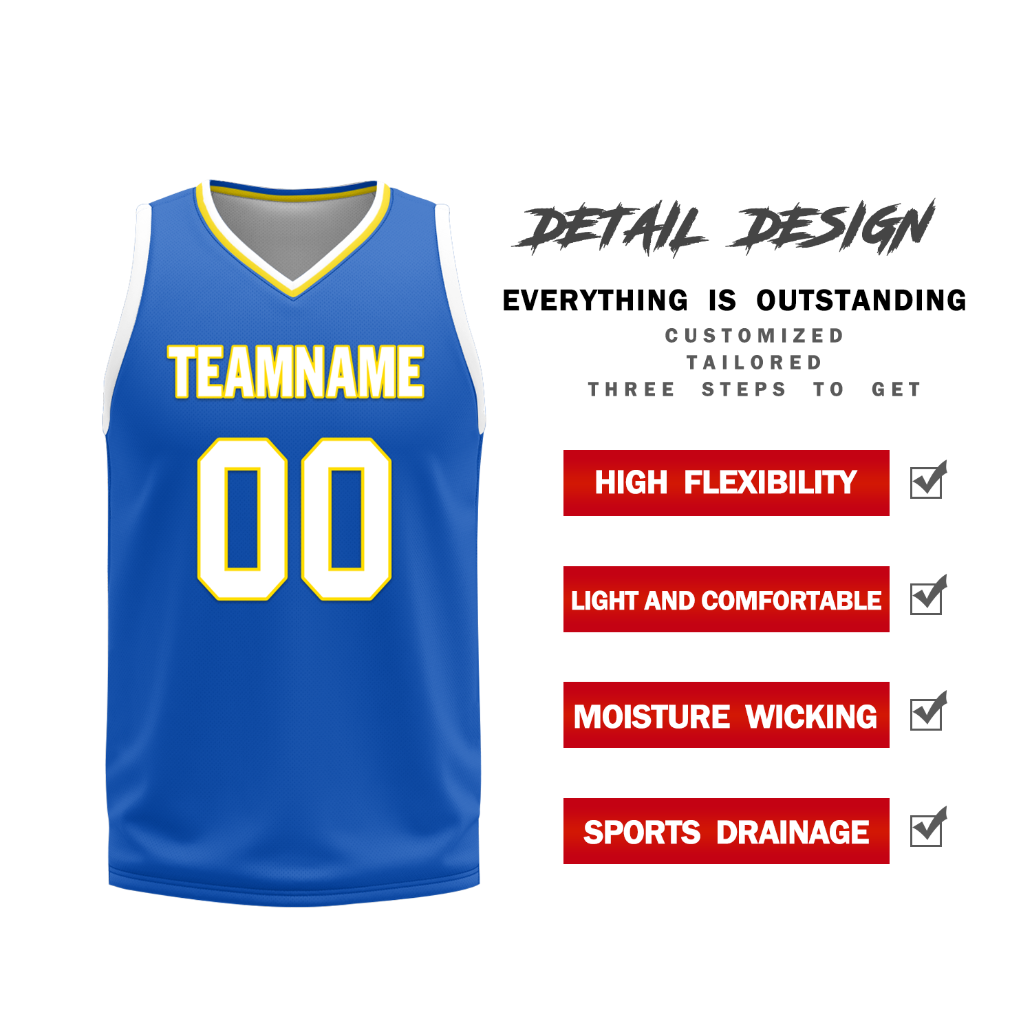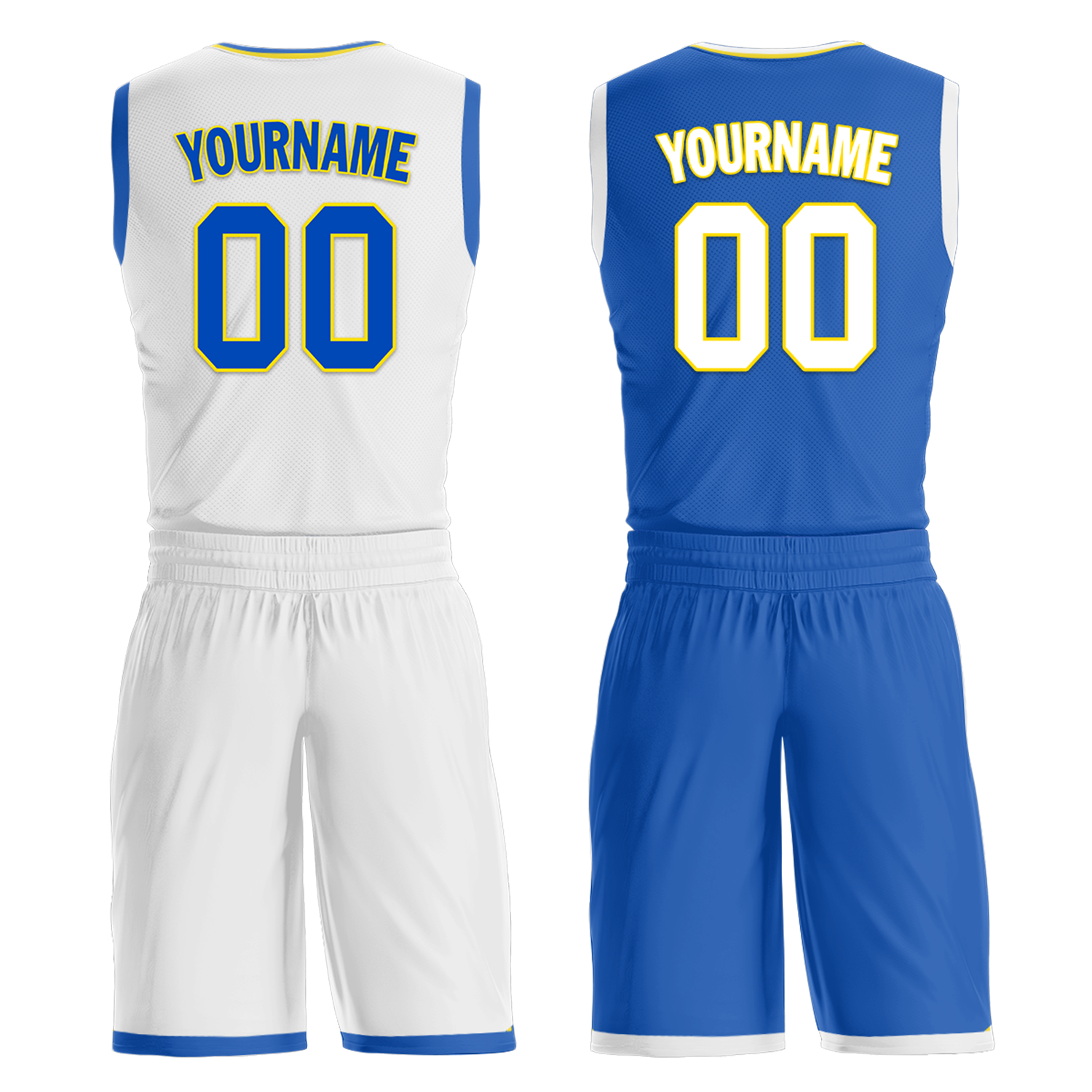 Gift Ideas,Custom White Blue Classic Style Reversible Basketball Uniform Personalized BBJR-D017004